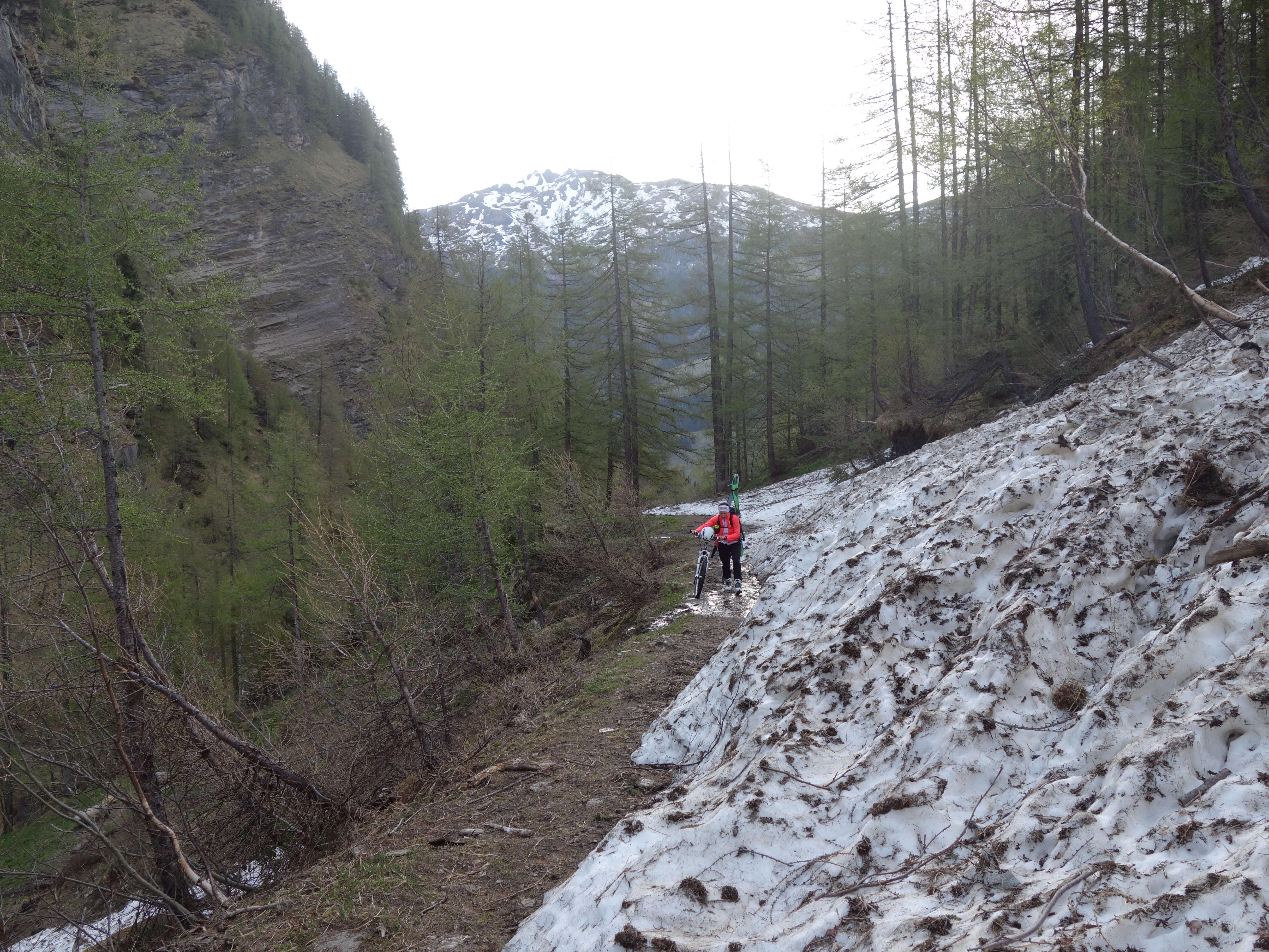 Gute Verhältnisse gabs auf der Hocharn Nordseite. Im oberen Drittel noch gut 5 cm Pulverschnee, dann ebenfalls kurz Spiegeleis und bis ins Tal super Firn. Der Schnee im Krumltal wird langsam knapp. Ab der Wasserfallalm bereits zwei längere Tragepassagen. Störend waren die unzähligen teils meterdicken Lawinenkegel auf der Straße. Das MTB war heute irgendwie fehl am Platz.