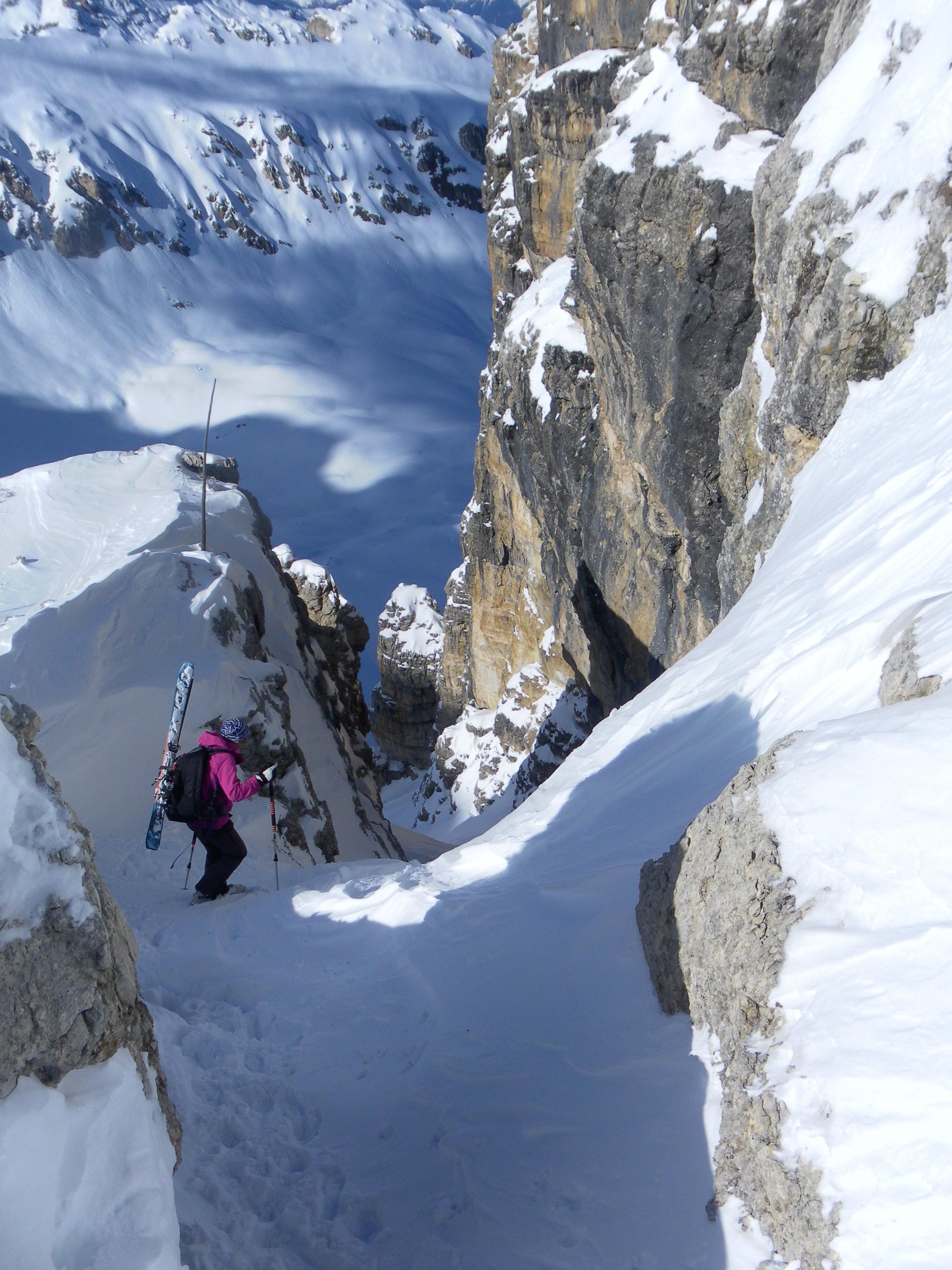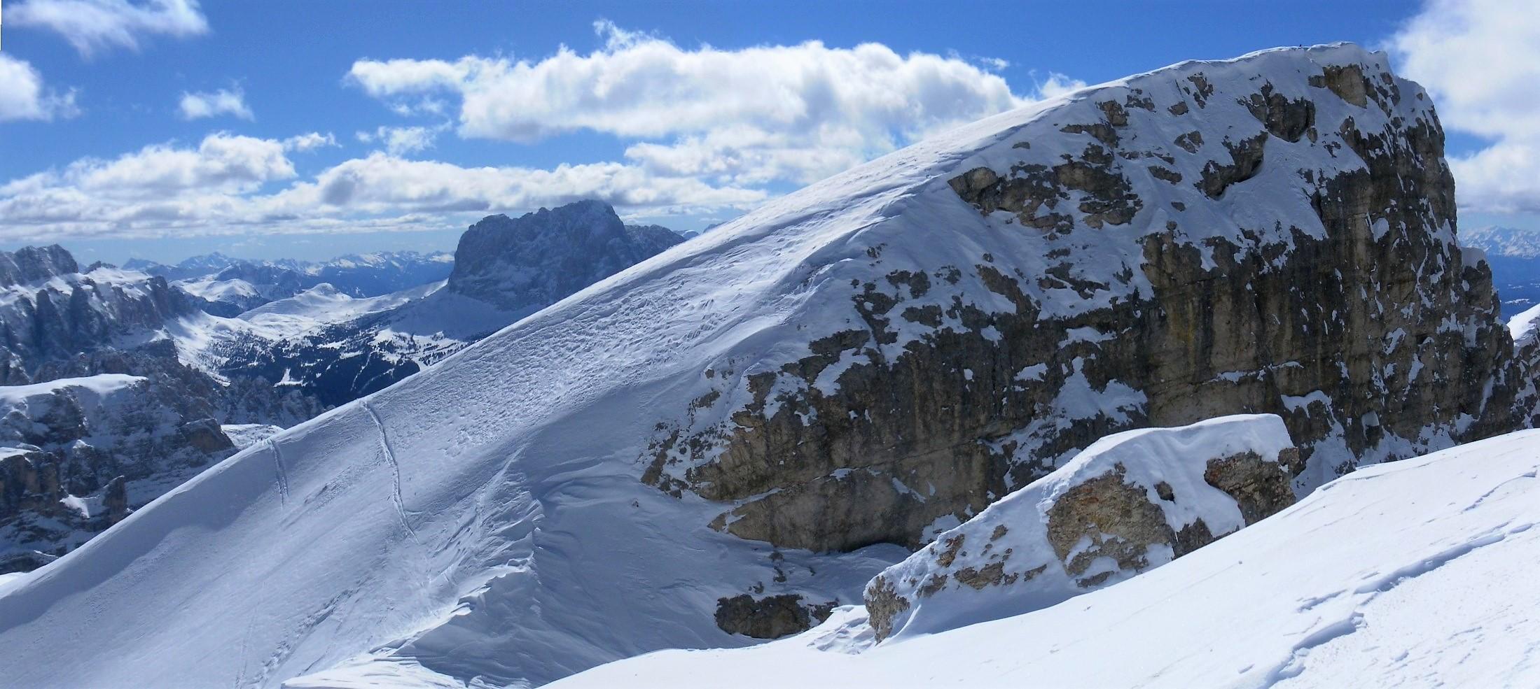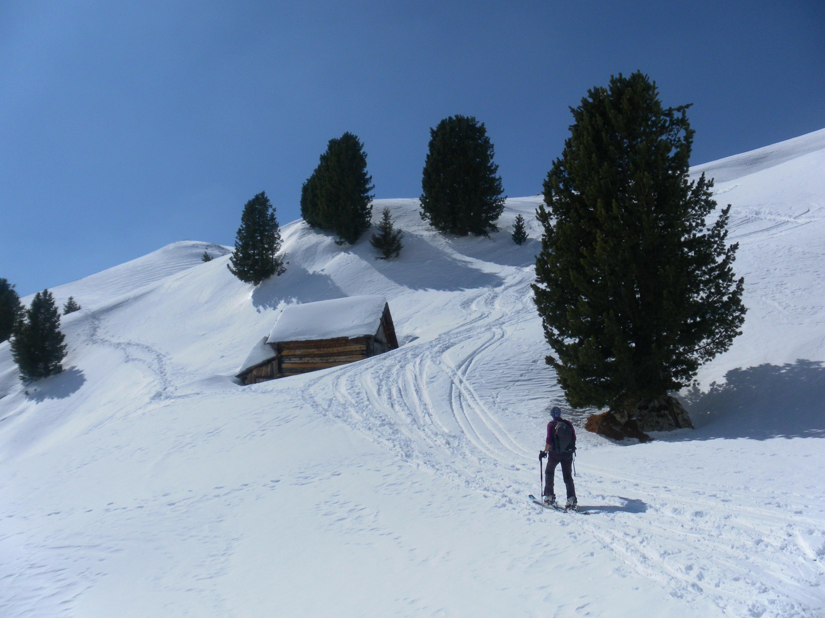 Die Pension Odles oberhalb von Campill im Gadertal ist ein hervorragender Stützpunkt für einen mehrtägigen Winteraufenthalt. Wunderschöne Skitouren aller Schwierigkeitsgrade lassen sich im fantastisch schroffen Dolomitenambiente unternehmen. Der Lawinenlagebericht gab die Stufe 3 heraus, erst zum Abschluss unserer Tourentage entspannte sich die Lage. Wir sahen nur ein riesiges Schneebrett aus den steilen Nordreisen, es soll neben dem gut erkennbaren Triebschnee wie letztes Jahr bei uns ein großes Altschneeproblem geben. Begangen wurden diese Tage viele Steilrinnen und -hänge aller Expositionen.