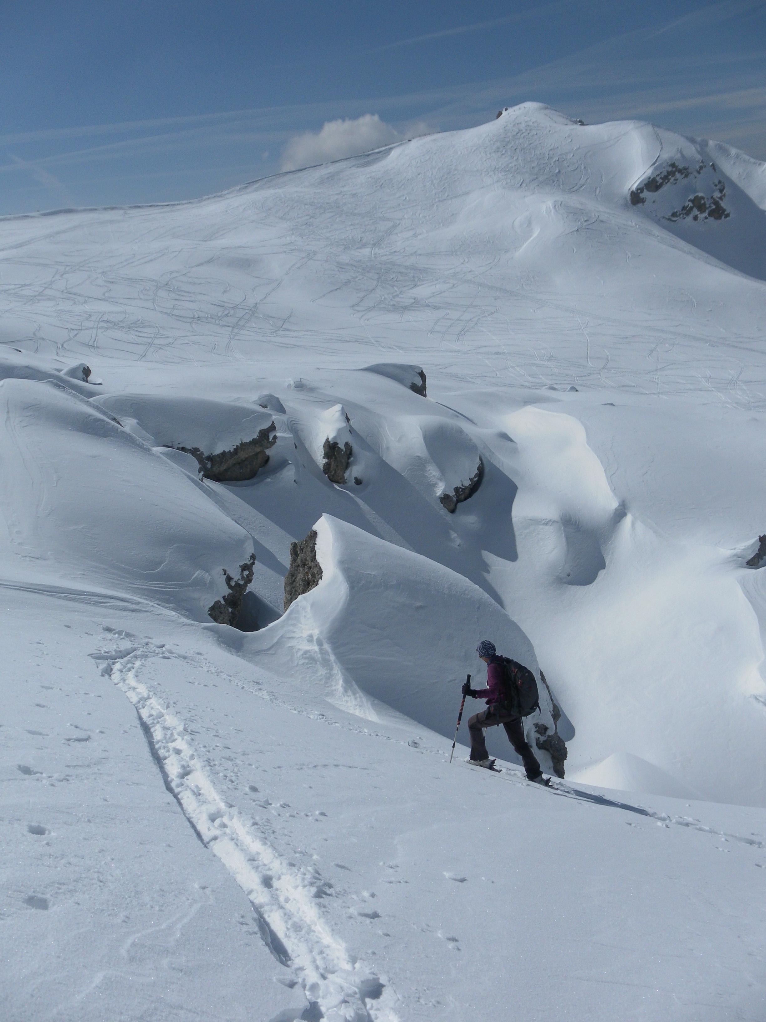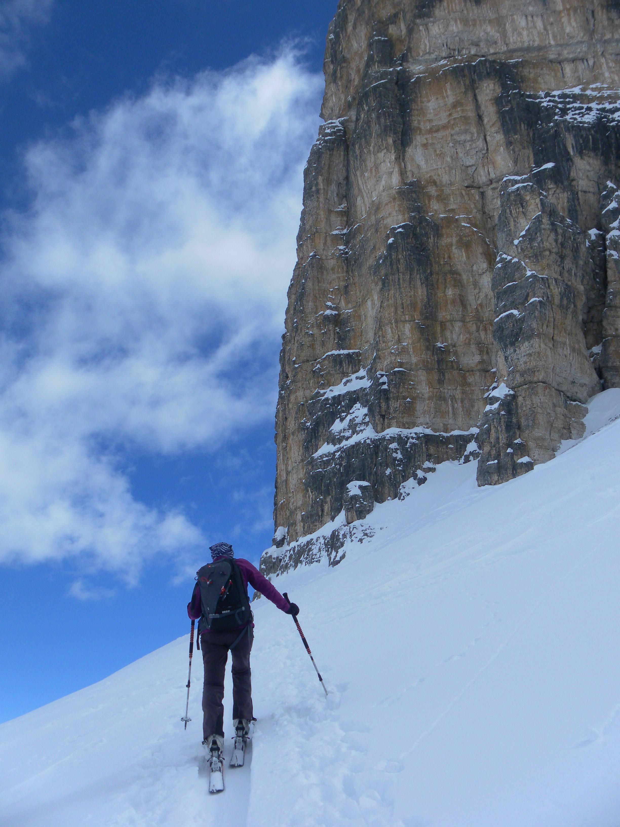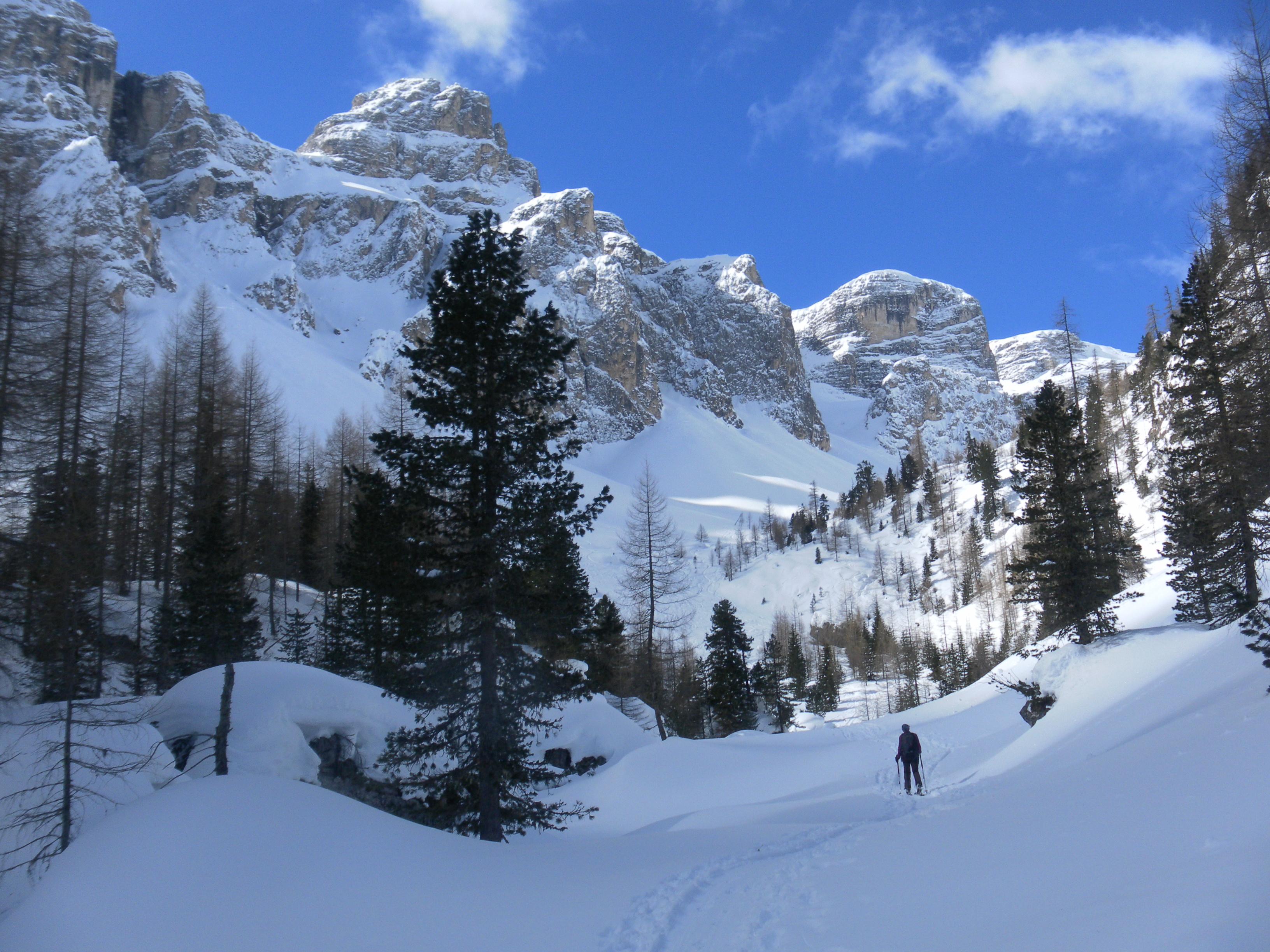 Die Pension Odles oberhalb von Campill im Gadertal ist ein hervorragender Stützpunkt für einen mehrtägigen Winteraufenthalt. Wunderschöne Skitouren aller Schwierigkeitsgrade lassen sich im fantastisch schroffen Dolomitenambiente unternehmen. Der Lawinenlagebericht gab die Stufe 3 heraus, erst zum Abschluss unserer Tourentage entspannte sich die Lage. Wir sahen nur ein riesiges Schneebrett aus den steilen Nordreisen, es soll neben dem gut erkennbaren Triebschnee wie letztes Jahr bei uns ein großes Altschneeproblem geben. Begangen wurden diese Tage viele Steilrinnen und -hänge aller Expositionen.