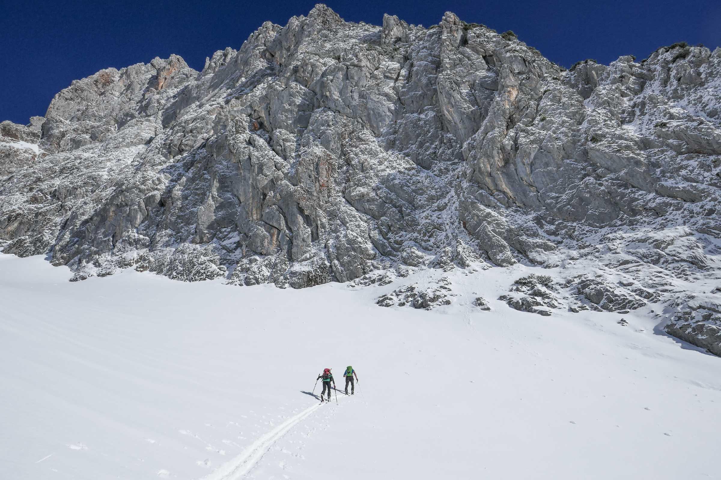 Aufstieg vom Dietlgut über die Rennluckn und den Meisenbergsattel auf den Meisenberg (im Unteren Teil des Aufstieges extrem wenig Schnee. Nicht mehr lange lohnend, besser via Dietlhölle aufsteigen, das geht noch länger). Abfahrt via Meisenbergrinne und Diethölle.
