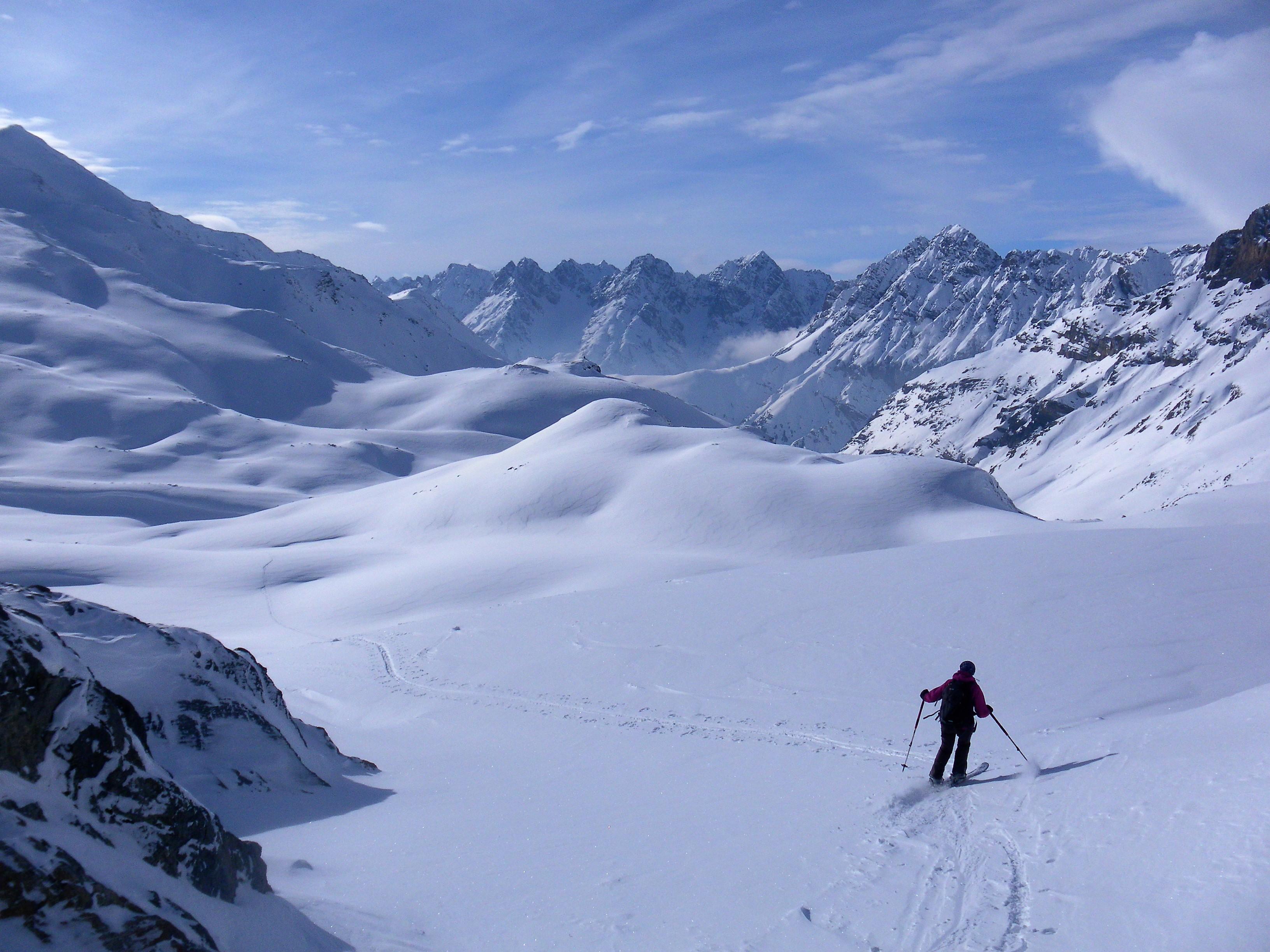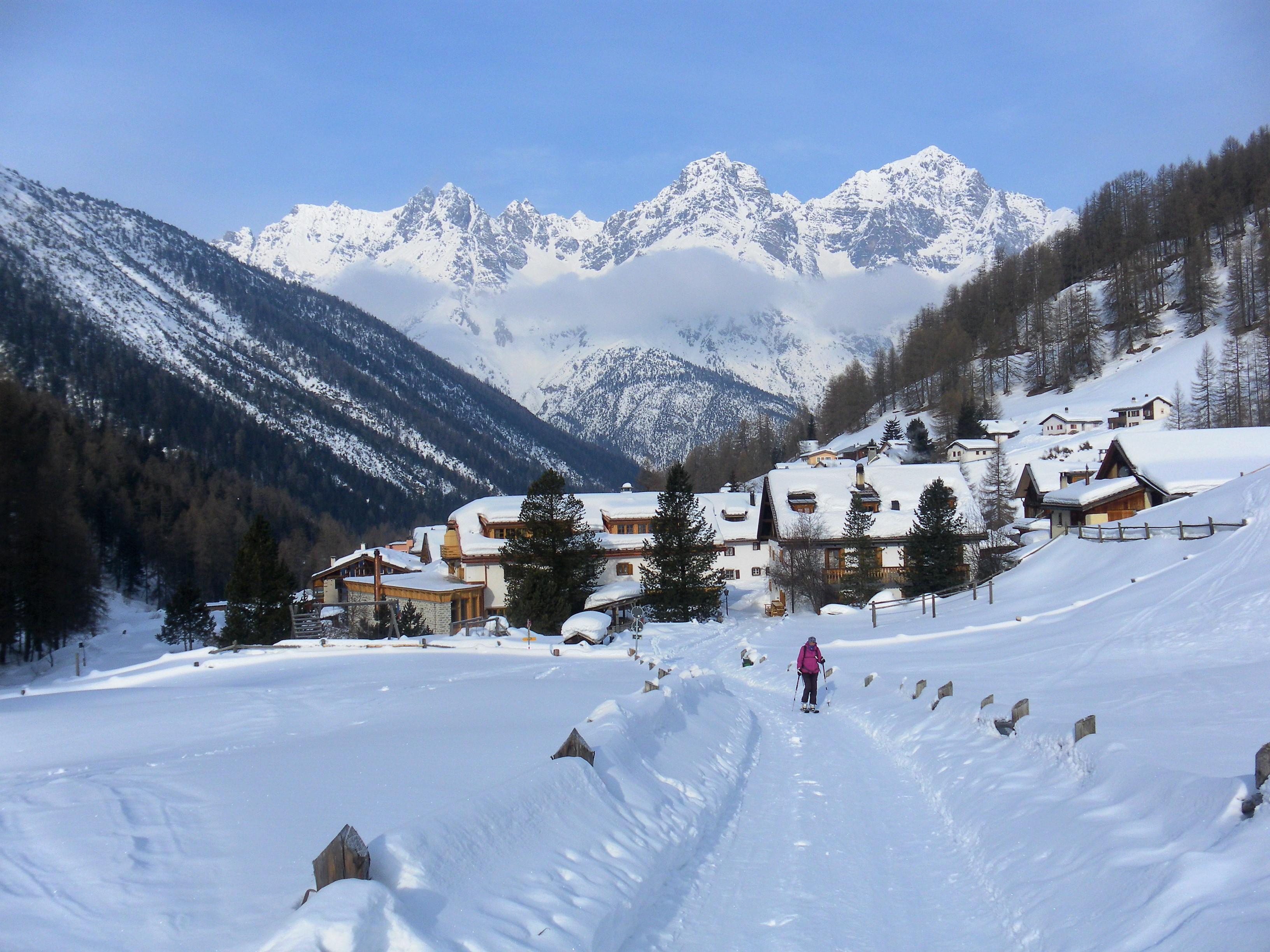Das Val S-charl ist bei uns ein eher unbekanntes Skitourengebiet zwischen Unterengadin und Val Müstair ("Engadiner Dolomiten"). Das Bergdörfchen S-charl ist im Winter zu Fuß oder von San Jon/Scuol mit dem Pferdeschlitten erreichbar. Wir wohnen fünf Tage im sehr empfehlenswerten Gasthaus Mayor (http://www.gasthaus-mayor.ch) auf 1800m. Skitouren aller Schwierigkeitsgrade werden bei zur Zeit guten Bedingungen geboten. Je nach Exposition darf man mit allen Schneearten (gut bis bös) rechnen. Das Schweizerische Lawinenbulletin gibt für diese Tage stabile Verhältnisse der Stufe II heraus.