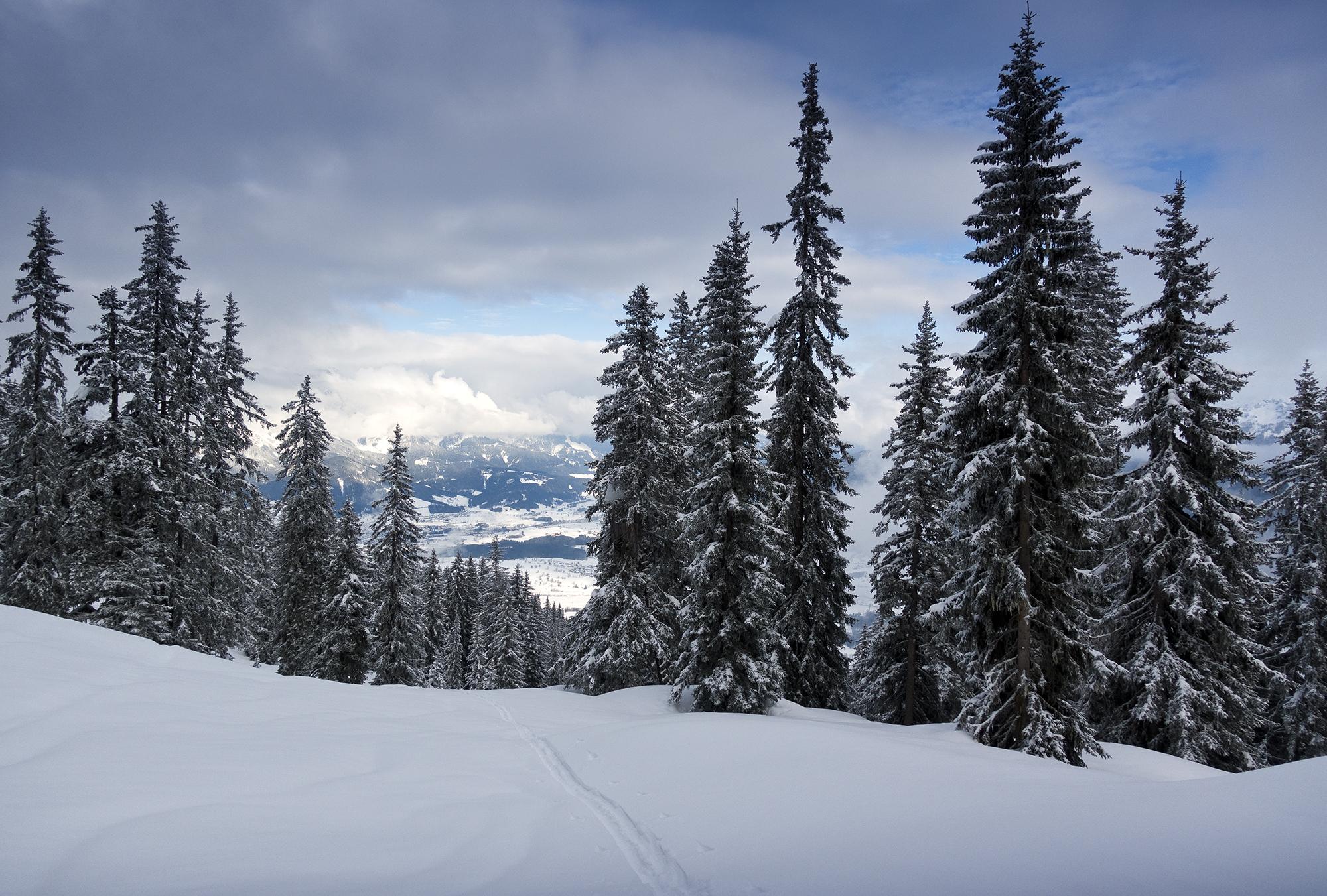 Vom Lahntal über Almweg und Waldschneisen. Die ersten 600 Höhenmeter Bruchharsch, die oberen 500 Höhenmeter haben bis zu 15cm lockeren Neuschnee auf tragender Harschschicht. Super zu fahren!