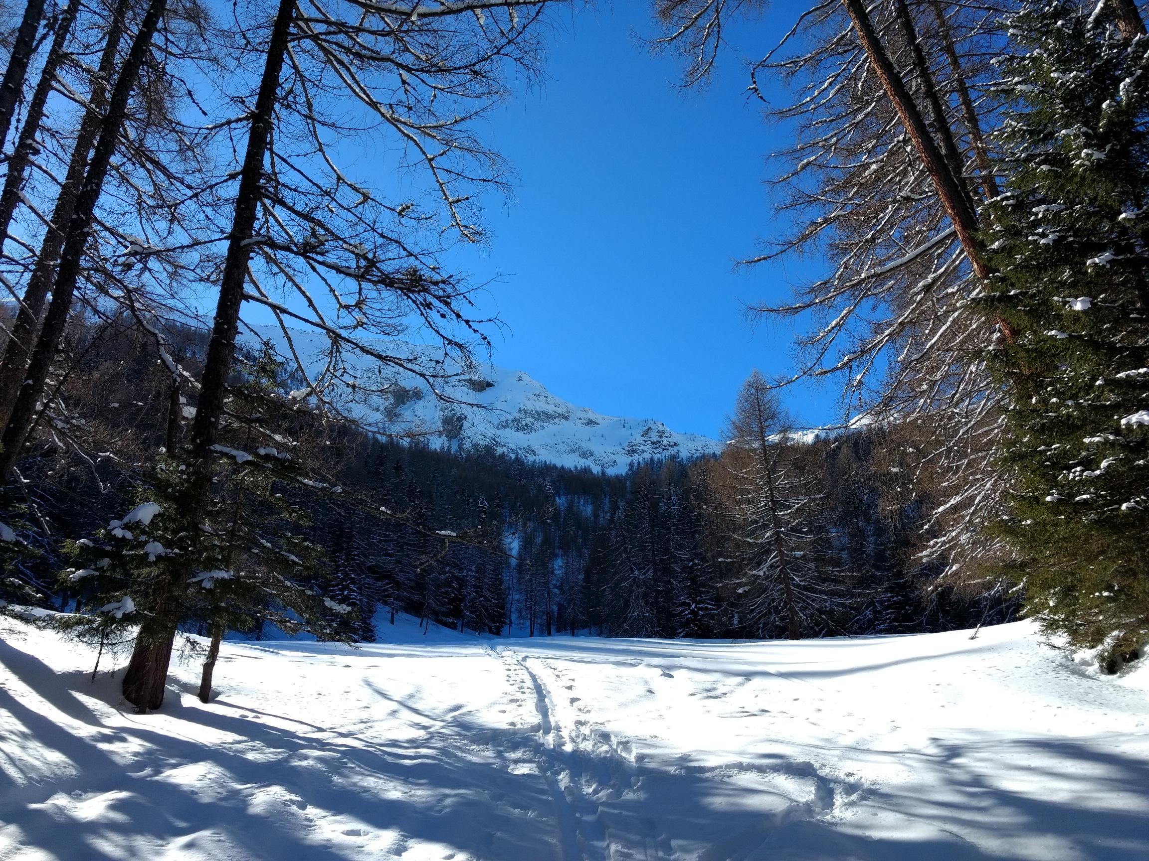 Irgendwann muss man dann aber tatsächlich in einen Hochwald abbiegen, da gehts auch schon etwas steiler rauf, aber nicht allzu lang. Bis man die Scharalm erreicht. Erst dann öffnen sich schön langsam ein paar befahrbare Hänge.