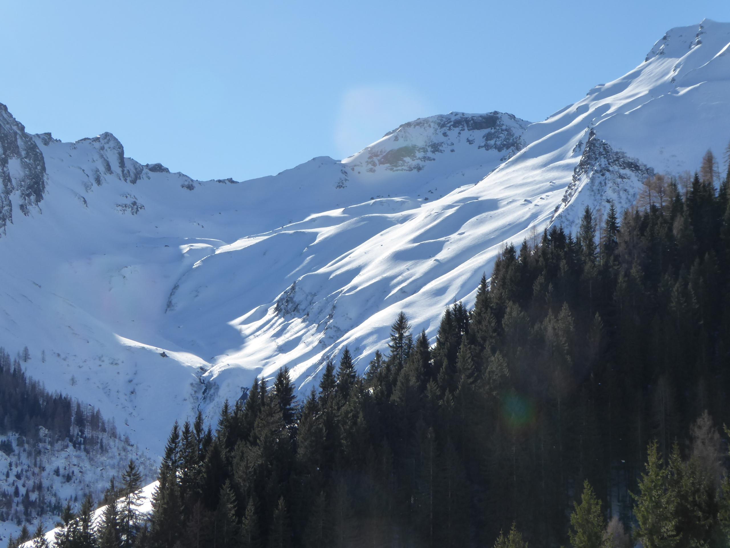 Lawinen: Auf der Trasse selbst schon recht entspannt. Unterm Windharsch ca. 20cm Pulver, der den Abbau schon hinter sich hat und bereits aufbaut, darunter sehr kompakter, windverdichteter Pulver. Sind aber nur Skistock-Diagnosen, reingegraben hab ich nicht. Die sonnseitigen Steilhänge vor der Hoferalm sind weitgehend entladen, hat nur ein mal gekracht, außerdem quert die Spur schon bei der ersten Gelegenheit aus dem Graben raus.