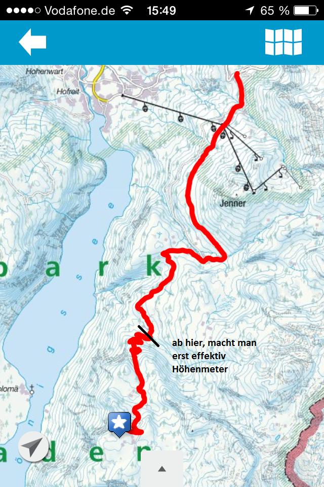 GPS Track, ab der Markierung macht man erst effektiv Höhenmeter