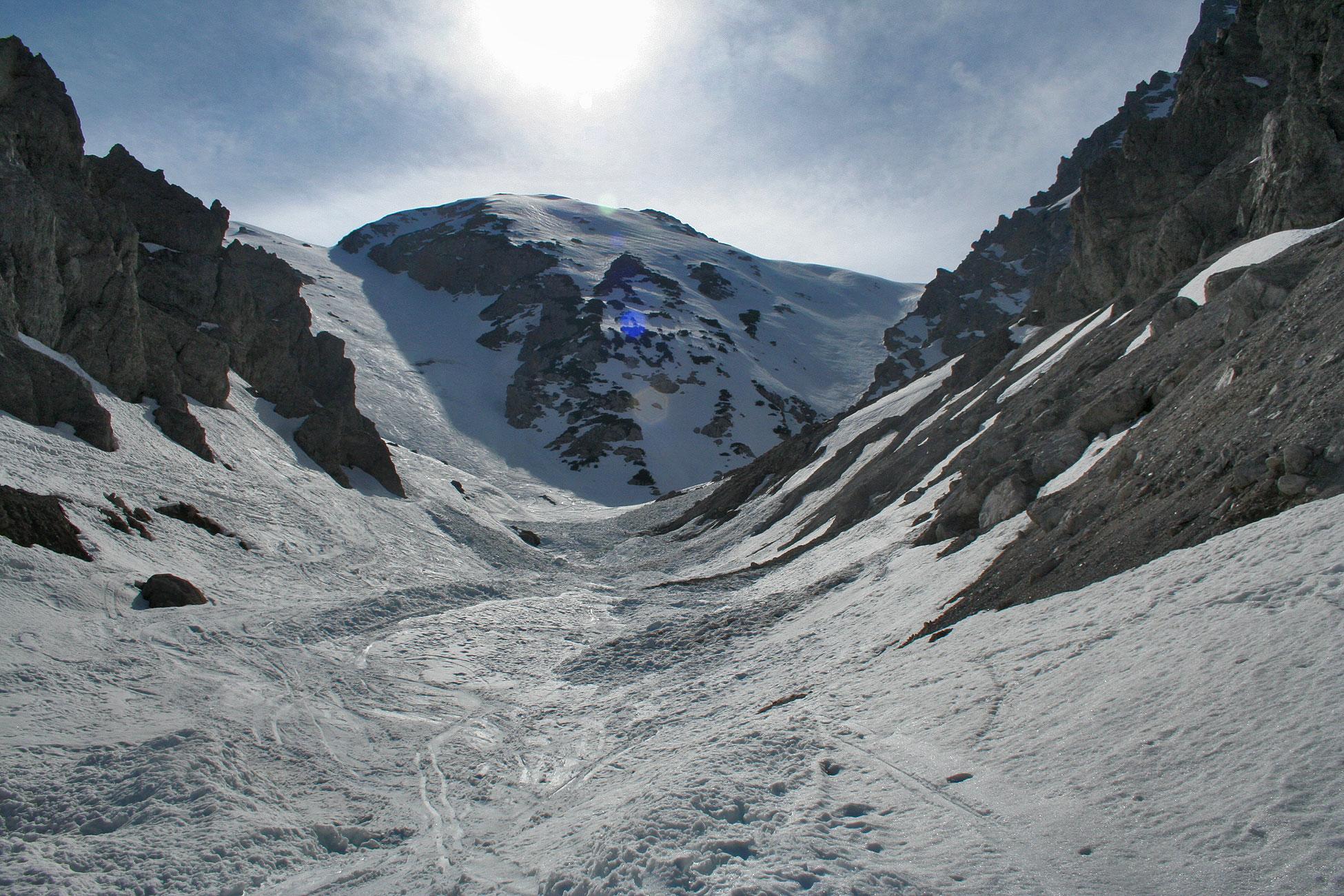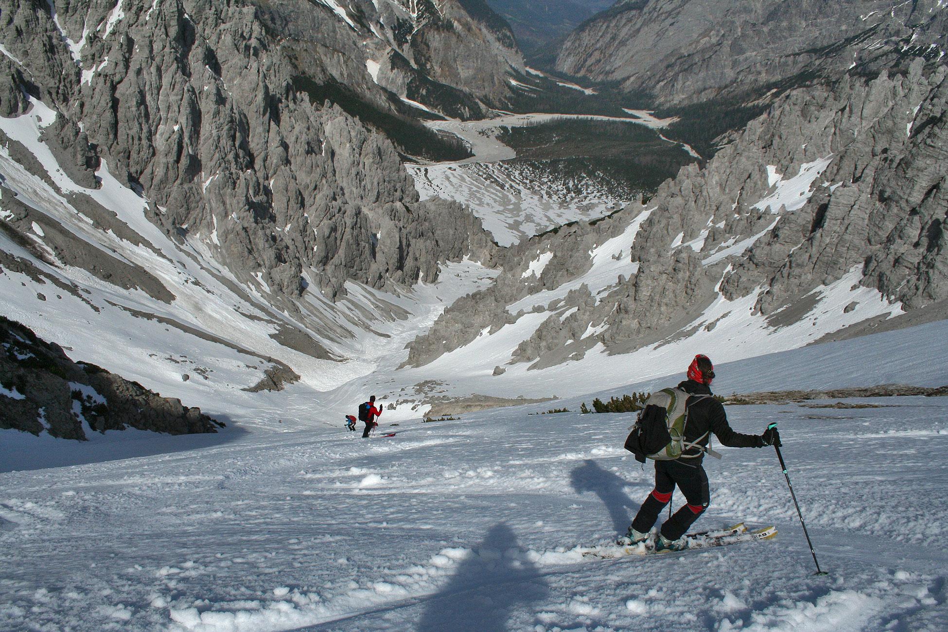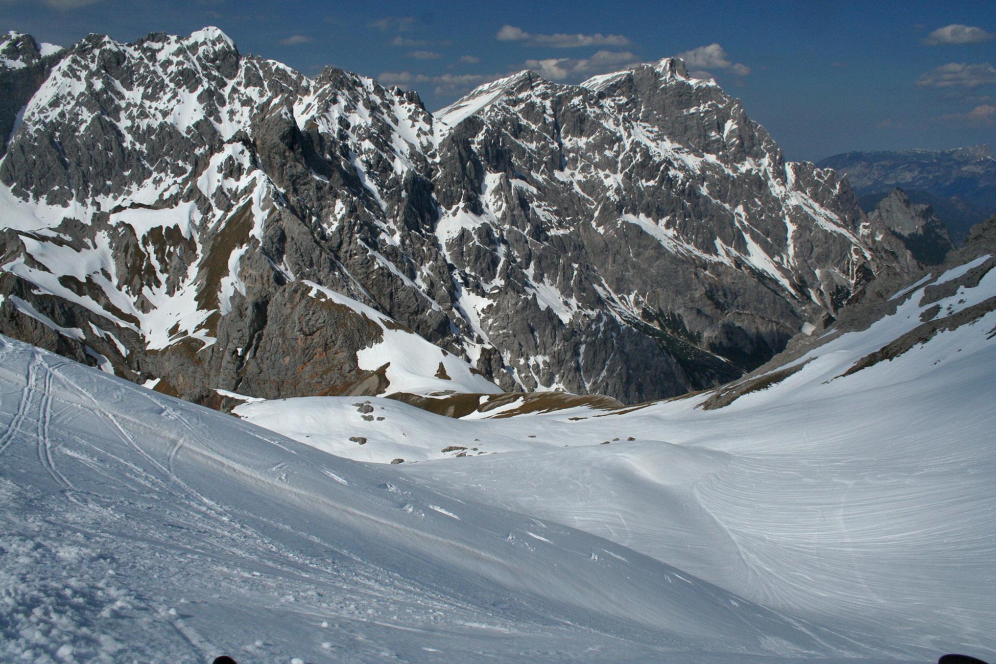- Die erste Einfahrt vorm Lofer Seilergraben war ausgezeichneter Firn, und auch im Graben selbst bis auf den unteren Teil, waren trotz der Hitze erstaunlich gute firnige Verhältnisse.