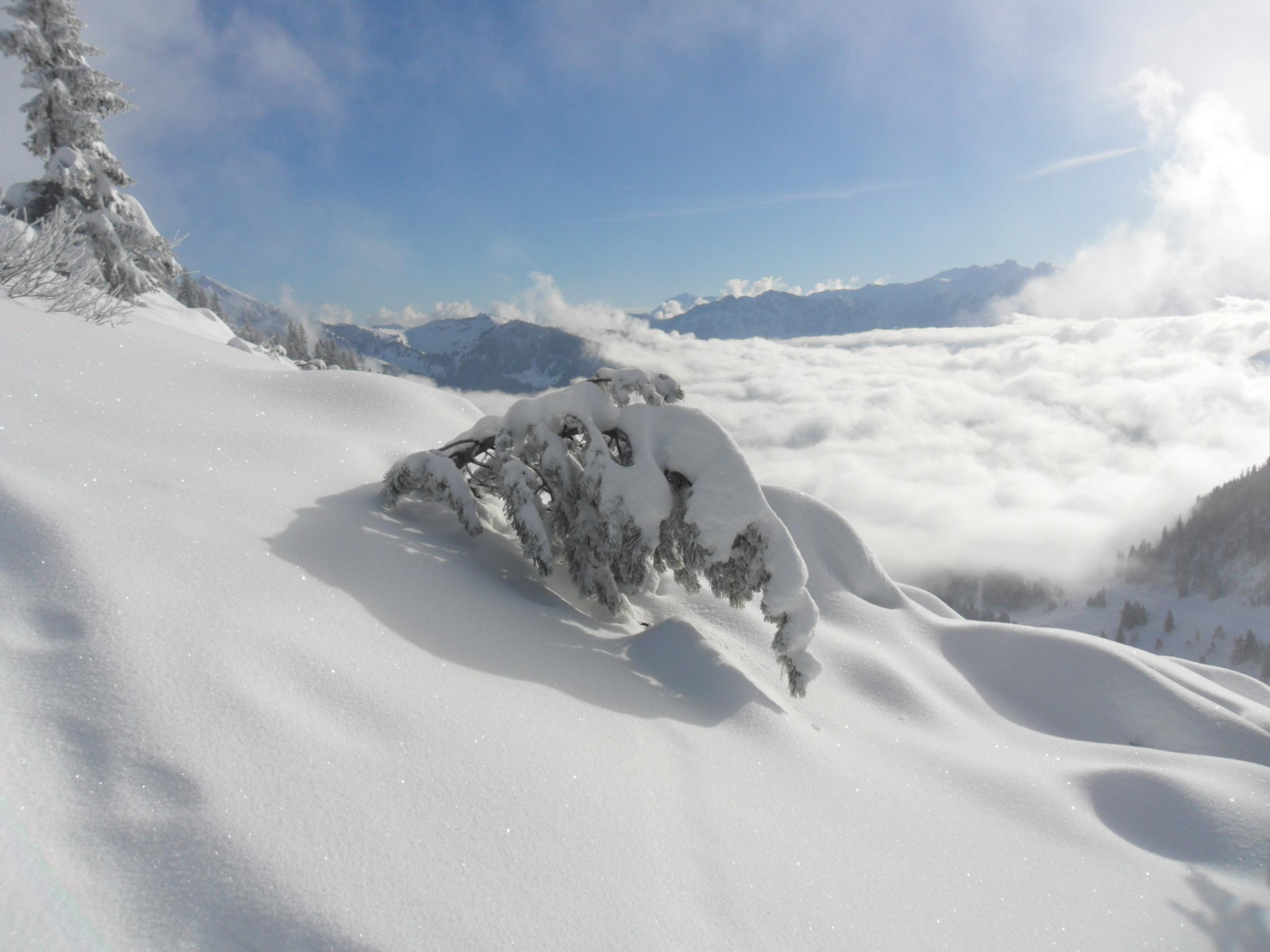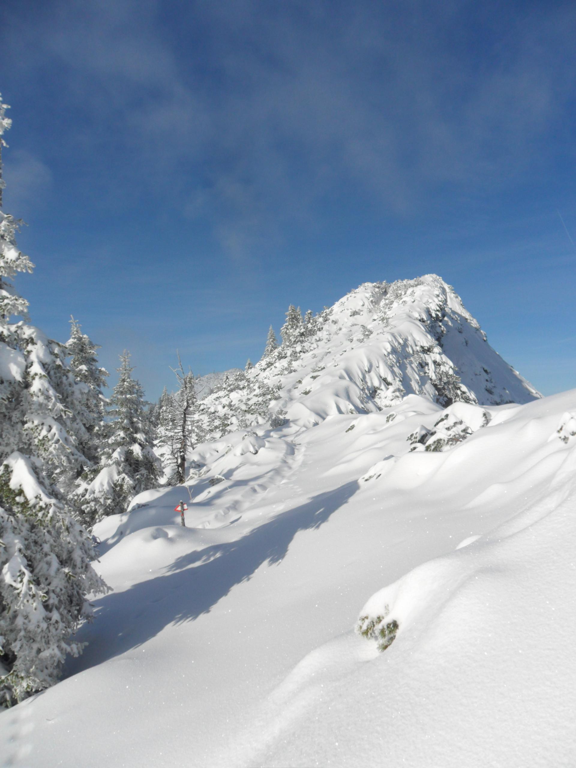 Alternativ könnte man das Peitingköpfel/Sonntagshorn über die Forststrasse gehen. Zumindest habe ich beim Runterfahren dorthinauf Spuren gesehen.