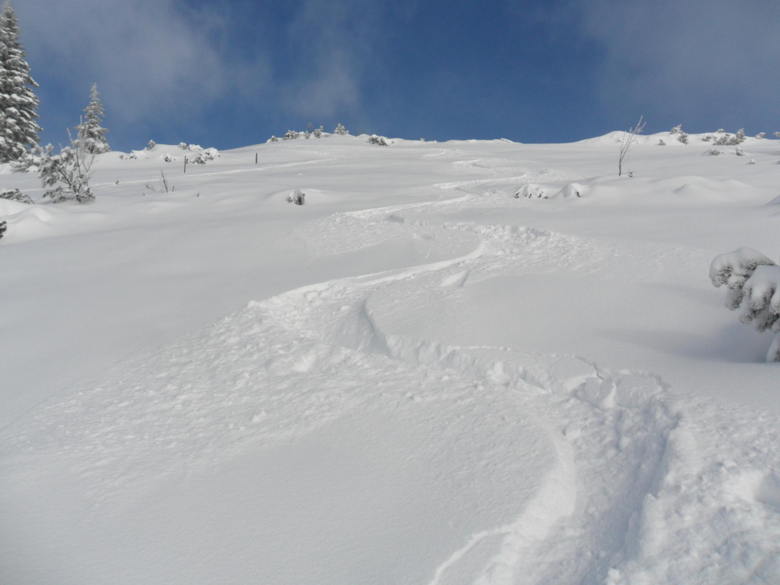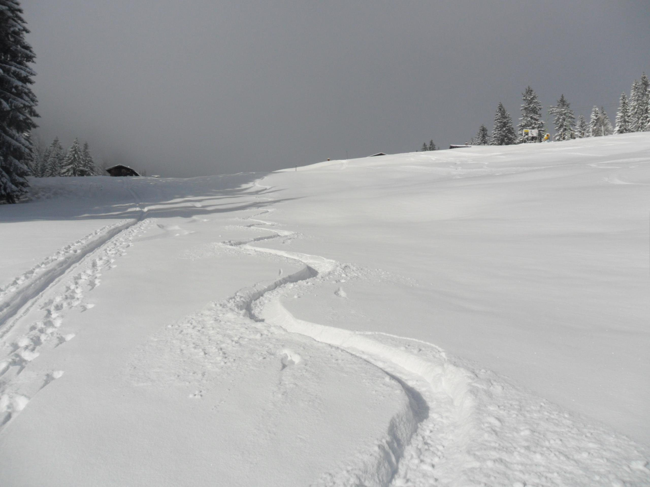 Der Schnee war locker und pulvrig. Abfahrt bei Kaiserwetter und die erste Spur in den Schnee gezogen. Keine Feindkontakte. Ich würde mal sagen; ein gelungener Saisonauftakt :).