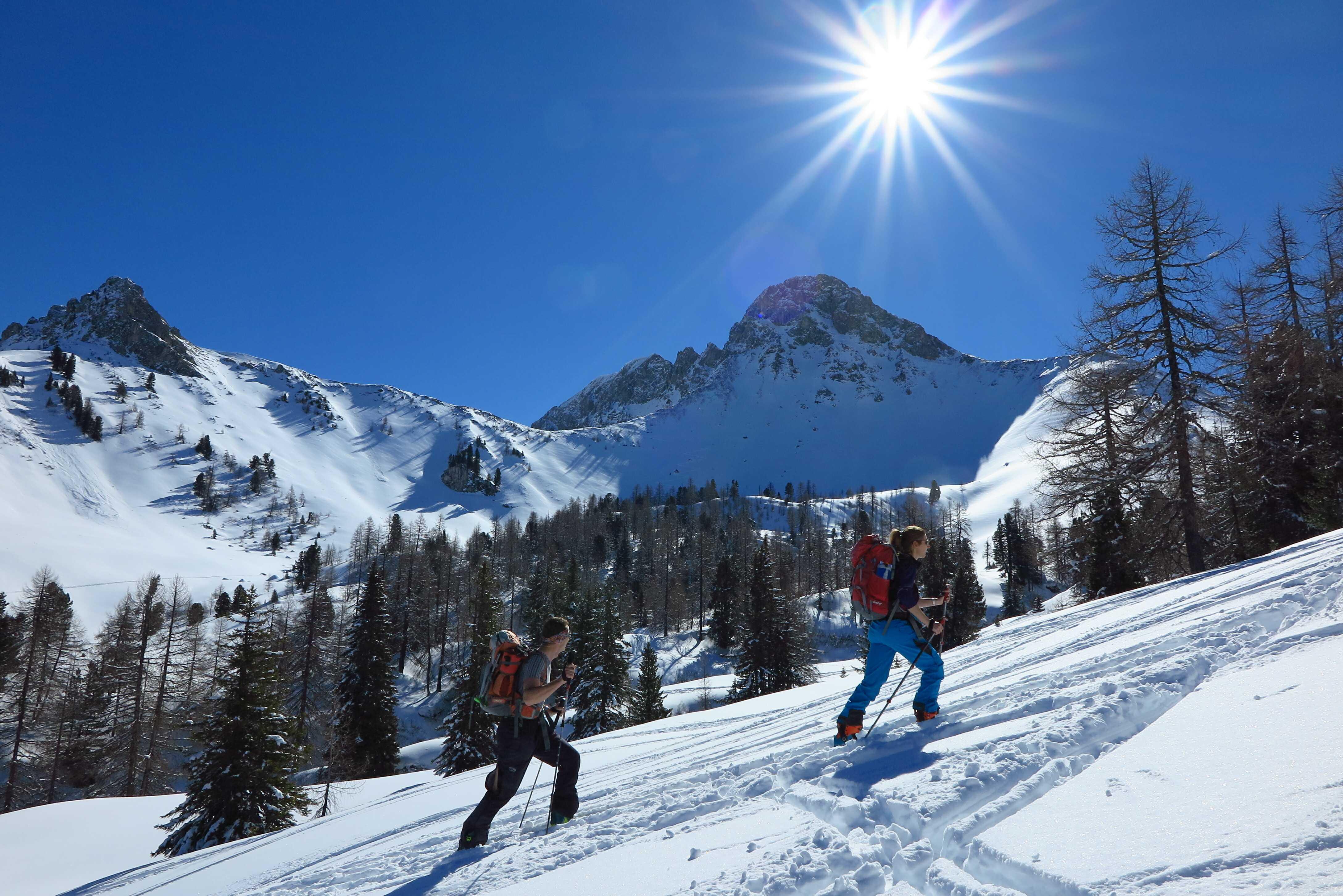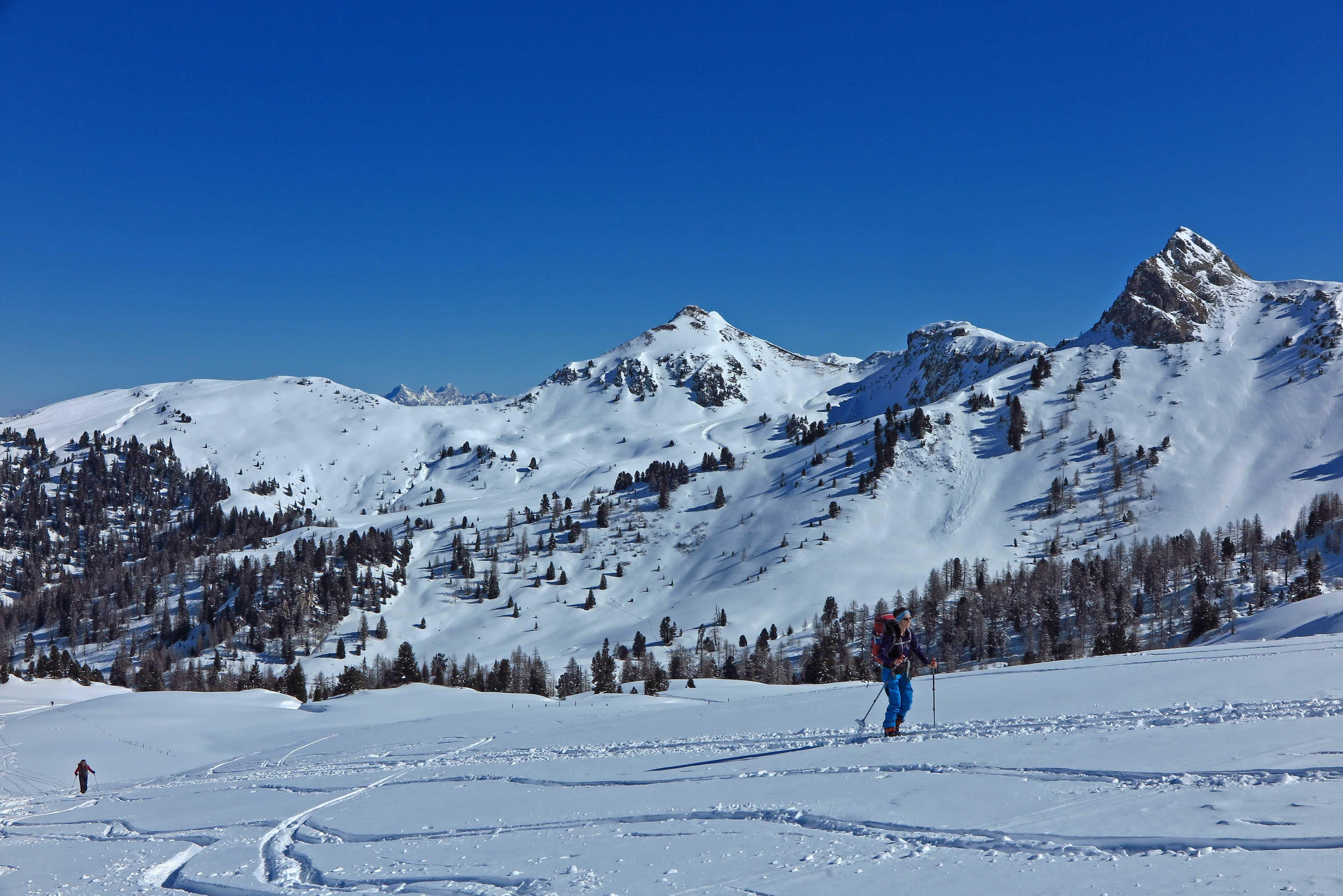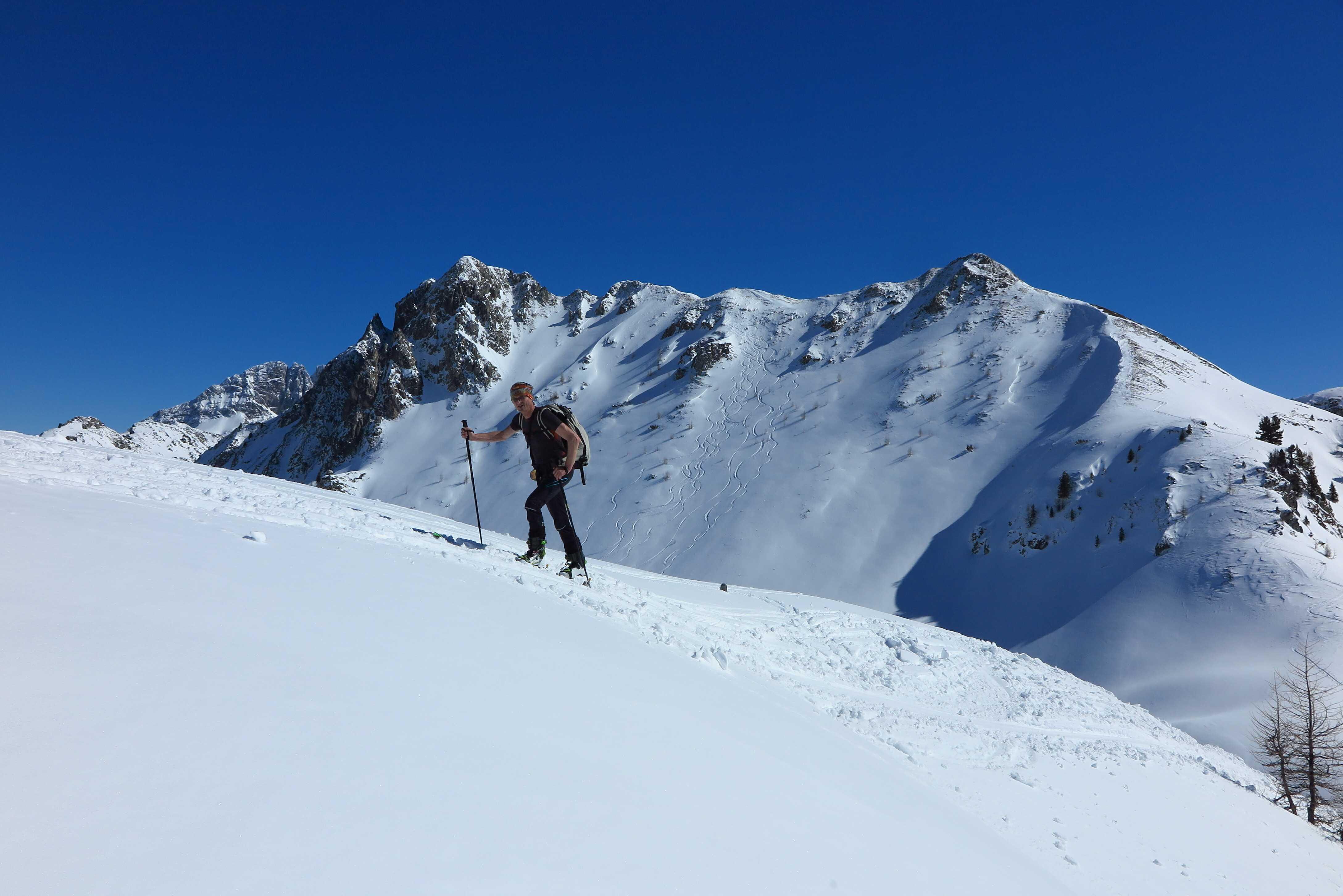 Von Grund im Ellmautal (ca. 1330) über die Loosbichlalm (1710) zum Filzmooshörndl (2189). Abfahrt über NO-Hang zur Loosbichlalm zurück und Wiederanstieg zum Loosbichl (2048). Abfahrt über die NW-Hänge zum PP.