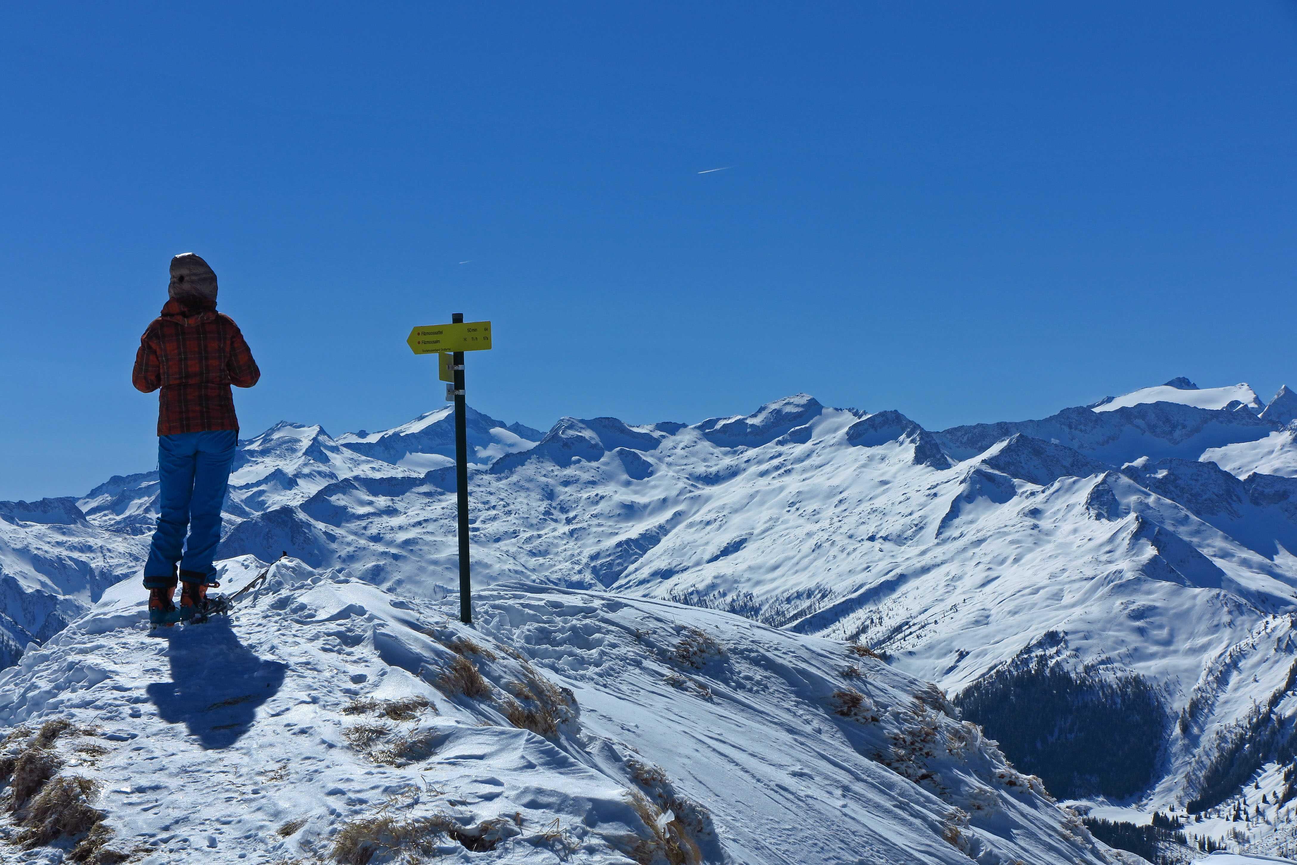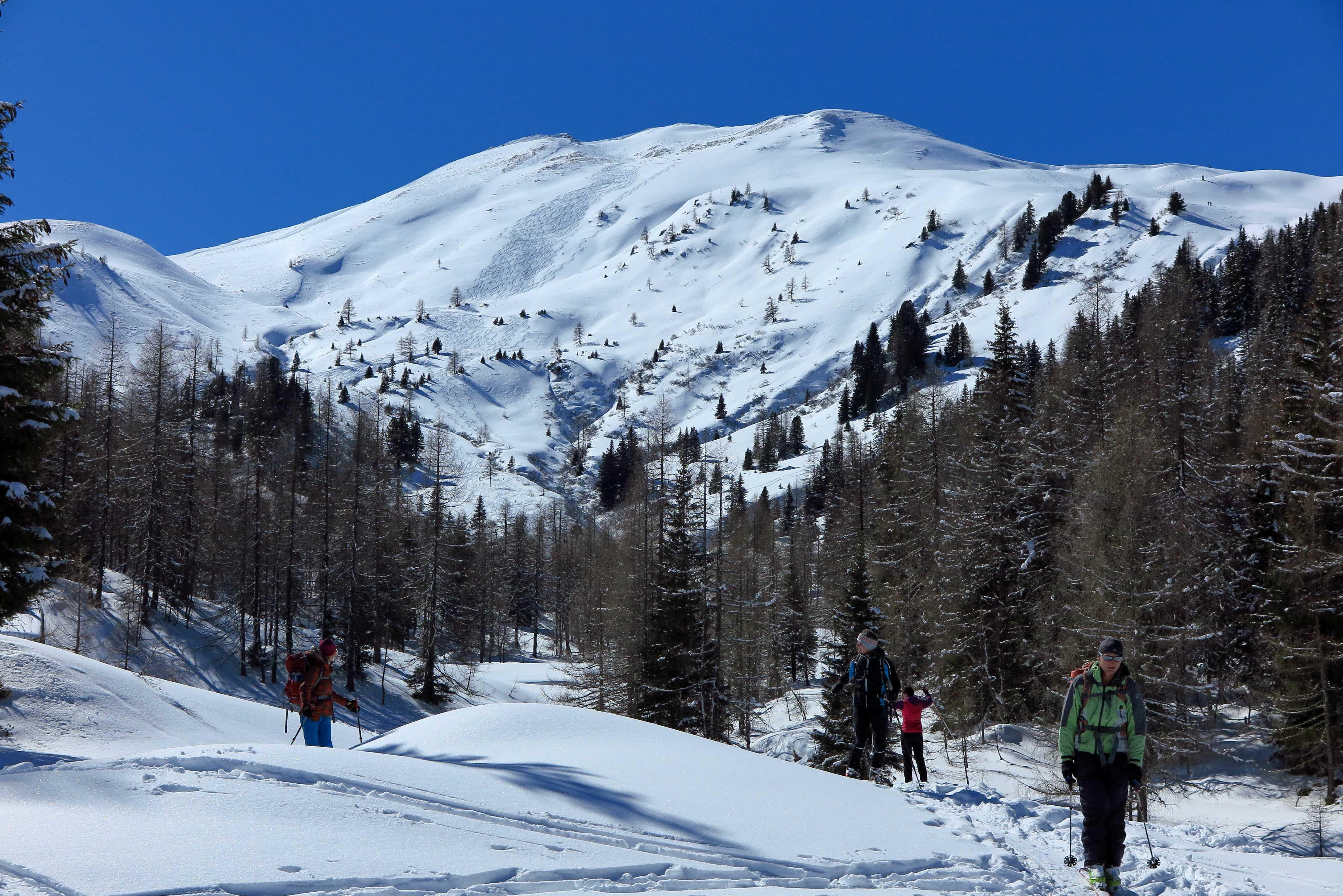 Schneelage: Am PP ca. 5cm Pulverauflage auf harschiger Unterlage. Oberhalb Filzmoosalm Zunahme auf ca. 30-40cm, in der Sonne schon angewärmt, im Schatten noch schön pulvrig. Abfahrt vom Loosbichl schon ziemlich verspurt.Im unteren Teil nachmittags firniger Schnee.