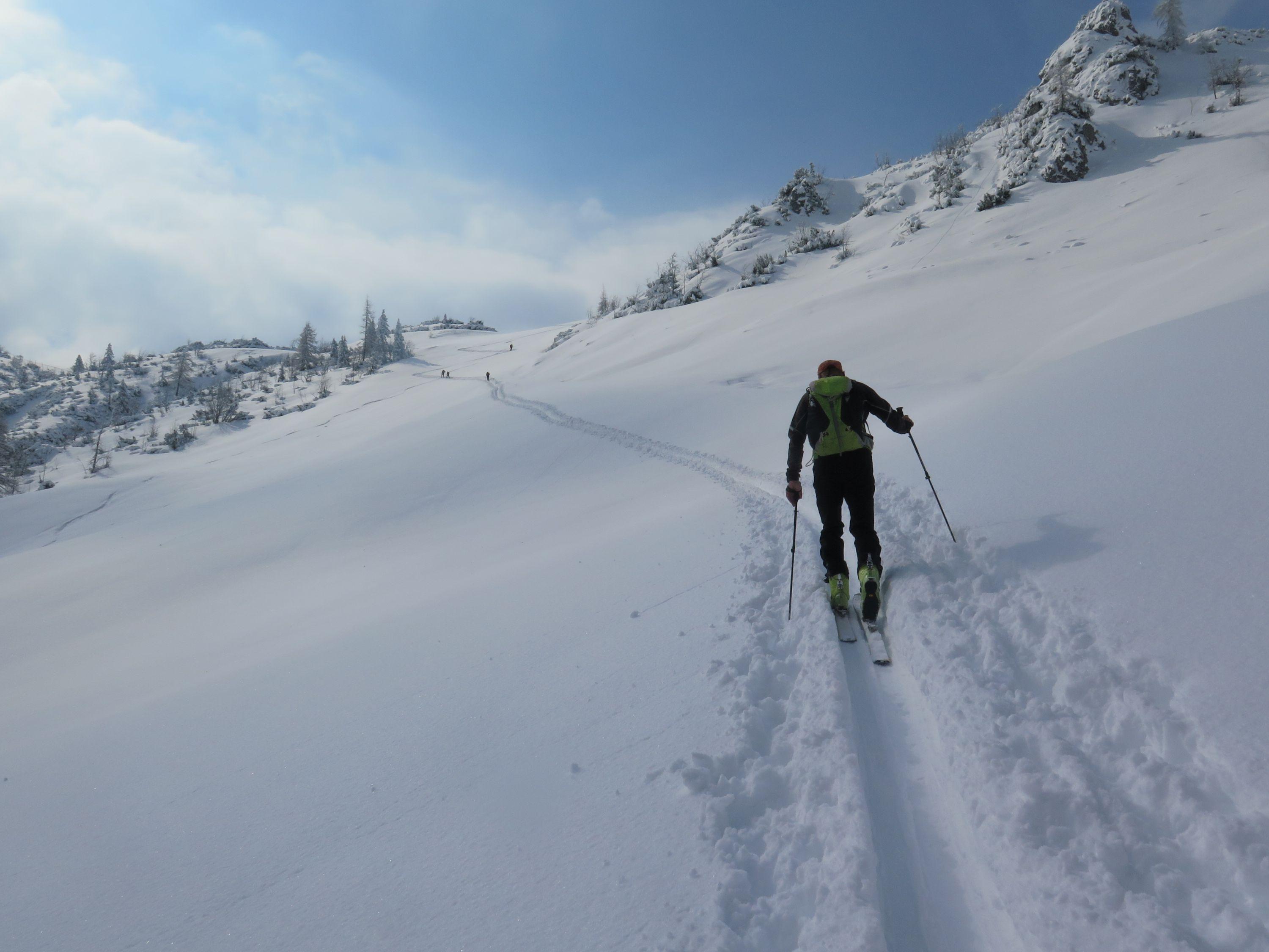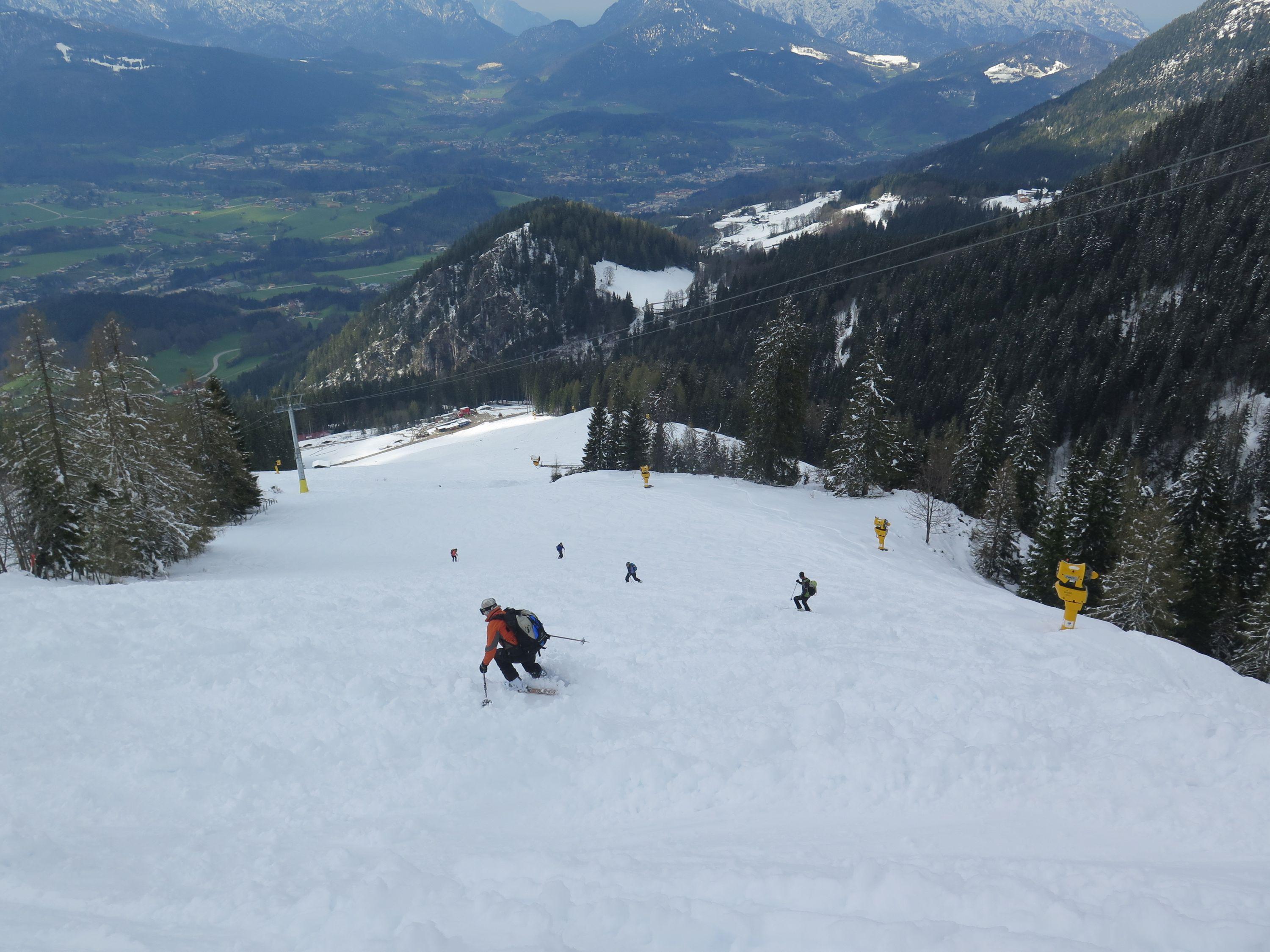 Start vom Parkplatz Hinterbrand war heute mit Schi möglich. Schneibstein hat eine gute Schneelage teilweise ca 40-50cm ,aber Vorsicht der eine oder andere Feindkontakt läßt sich nicht vermeiden( die berühmten spitzen Steine vom Schneiber) . Abfahrt Rugg noch schöner Pulver und kein Feinkontakt , beim Wiederaufstieg zum Stahlhaus Schneedecke durch Sonneneinstrahlung schon angefeuchtet. Abfahrt auf der Jennerpiste schon stark verspurt und schwerer Schnee. Durch die Tageserwärmung ist die Straße zum Parkplatz Hinterbrand schon wieder fast aper.