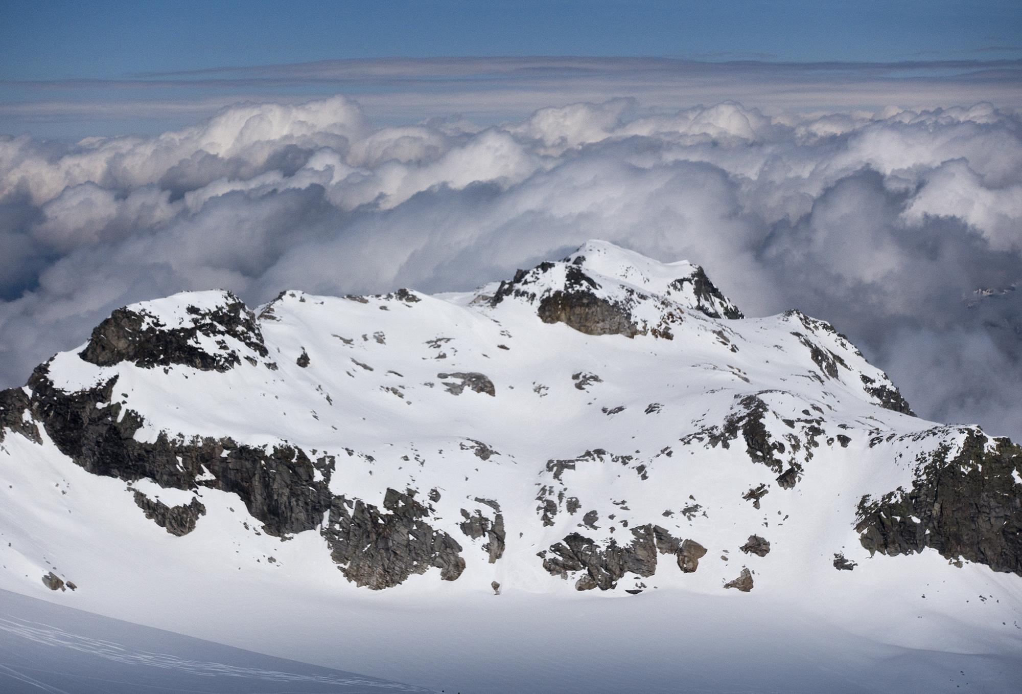 Über der Rudolfshütte gab es gestern noch einmal viel Sonne, bevor Kälte und Schnee kommen sollen. An der Granatspitze waren Steigeisen am Morgen angenehm, weil es noch recht hart war. Die Abfahrt durchs Kanonenrohr war schon gut aufgefirnt. Am Tauernkogel rutschte der nasse Schnee schon auf den Felsen und dem Gras des Gipfelhanges, den ich wegen Schneemangels nur zu Fuß gemacht habe. Vom Grat dann Einfahrt in den fein aufgefirnten Nordhang.
