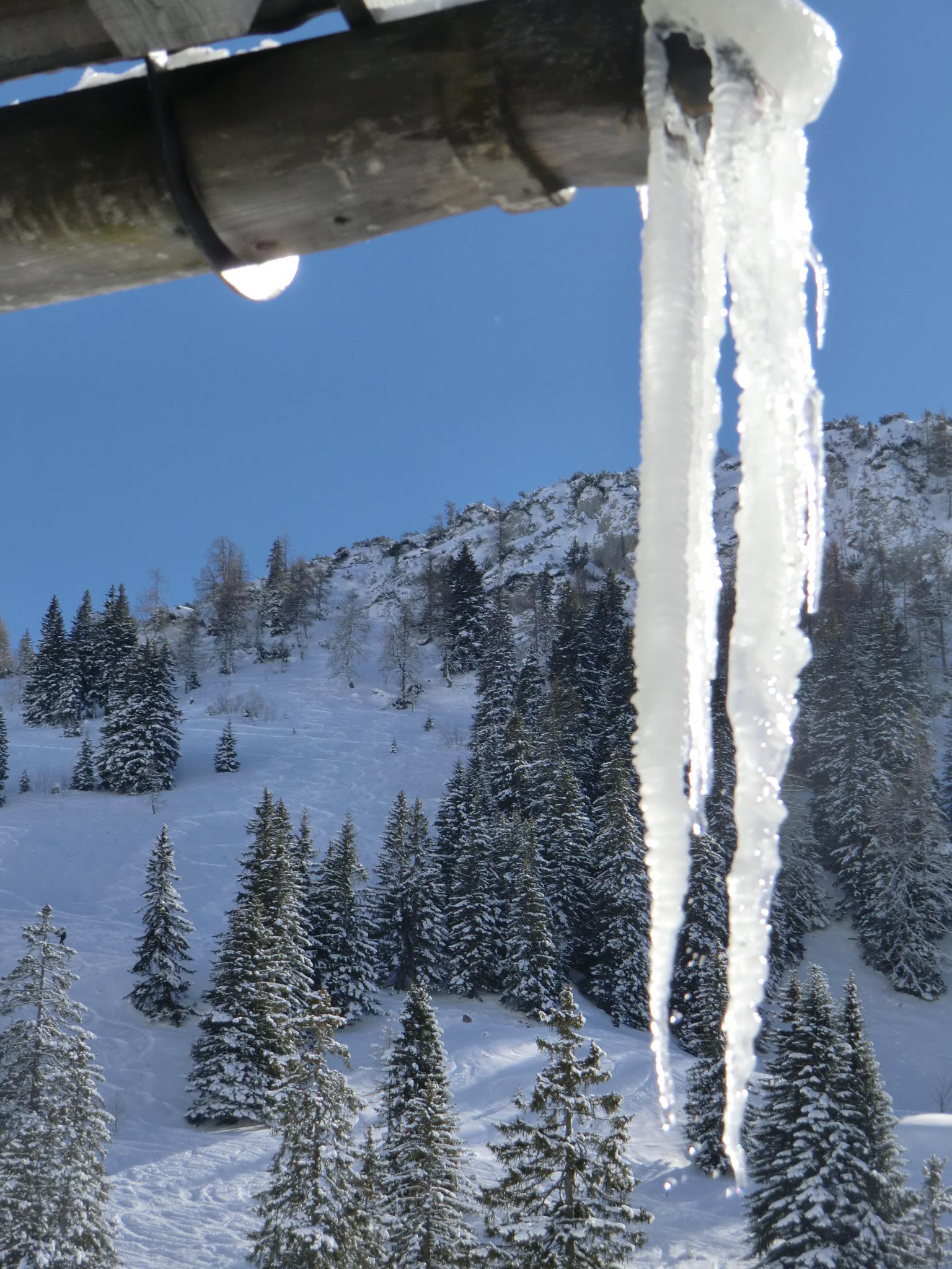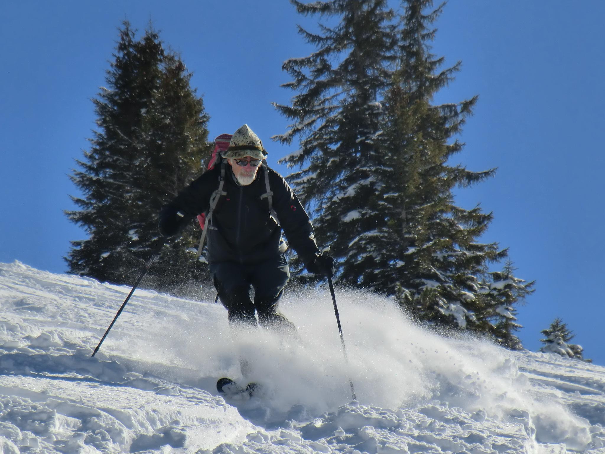 Sonne blitzt vom wolkenlosen Himmel. Frische Lieferung von ca. 20 cm Pulverschnee. Kühlschranktemperaturen am PP. Das ändert sich erst ab der Hochalm mit Sonne. Ab hier sorgt dann der kräftige Wind dafür, daß der schöne Pulverschnee nicht an Form verliert. Sowohl bei der Abfahrt vom SoHo um 11:30, als auch nachmittags am PK lockerer Pulver, in den schattigen Lagen treibsandartig. Weiter unten dann, links vom Reichenhaller Hang in den sonnigen Lagen, schon schön zum firnschmiern.