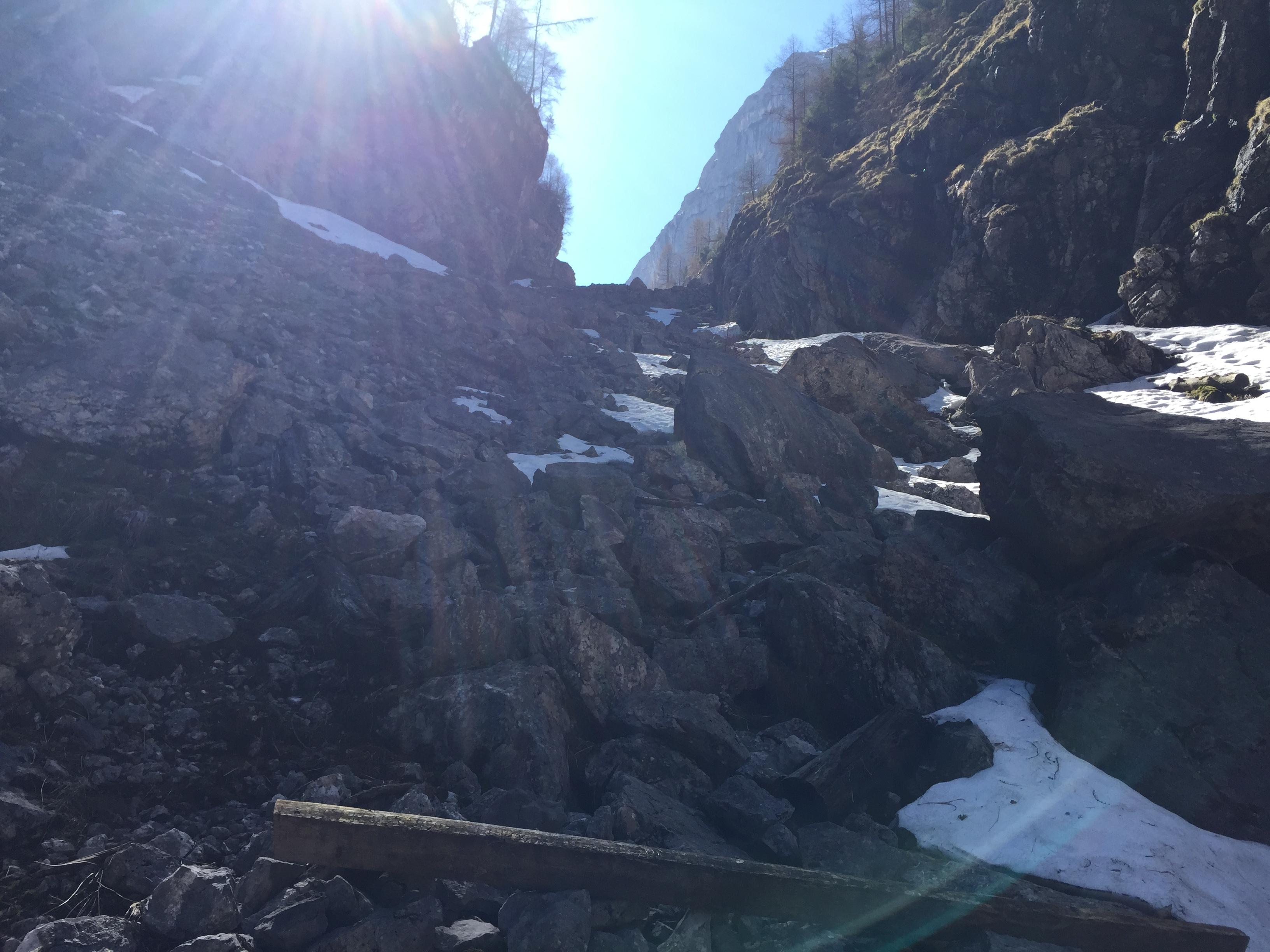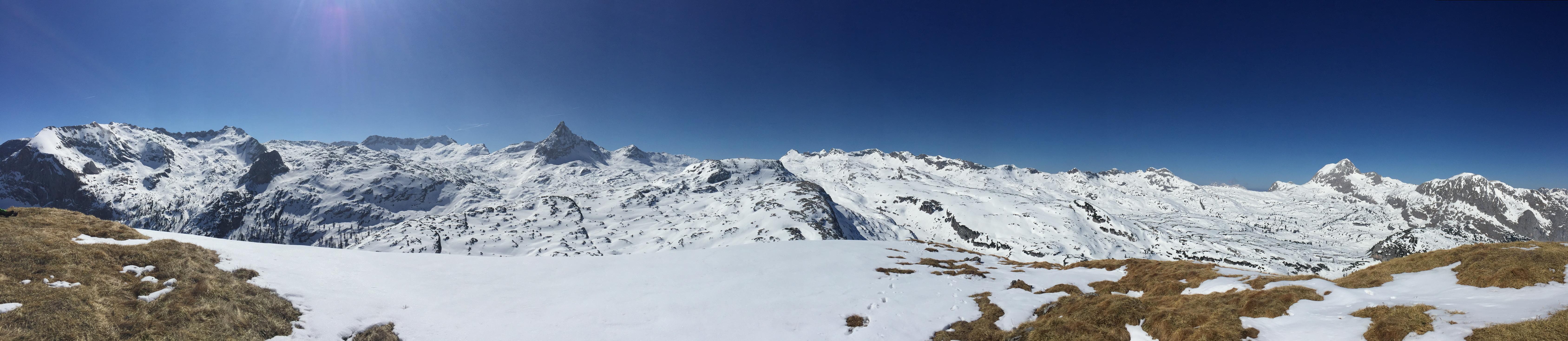 Via Schiff nach St. Bartholomä (sehr frühlingshaft) und weiter über die Saugasse (kurz davor in der Ebene eher viel Schnee, in der Gasse selbst bis auf wenige kurze und weiche Schneefelder wie im Sommer) wandernd und noch ein gutes Stück oberhalb dann mit Schneeschuhen weiter zum Kärlingerhaus. Nach Übernachtung (Danke an Sigi und das Hüttenteam!) bei bestem Wetter zum Viehkogel und dann via Saugasse zurück nach St. Bartholomä.