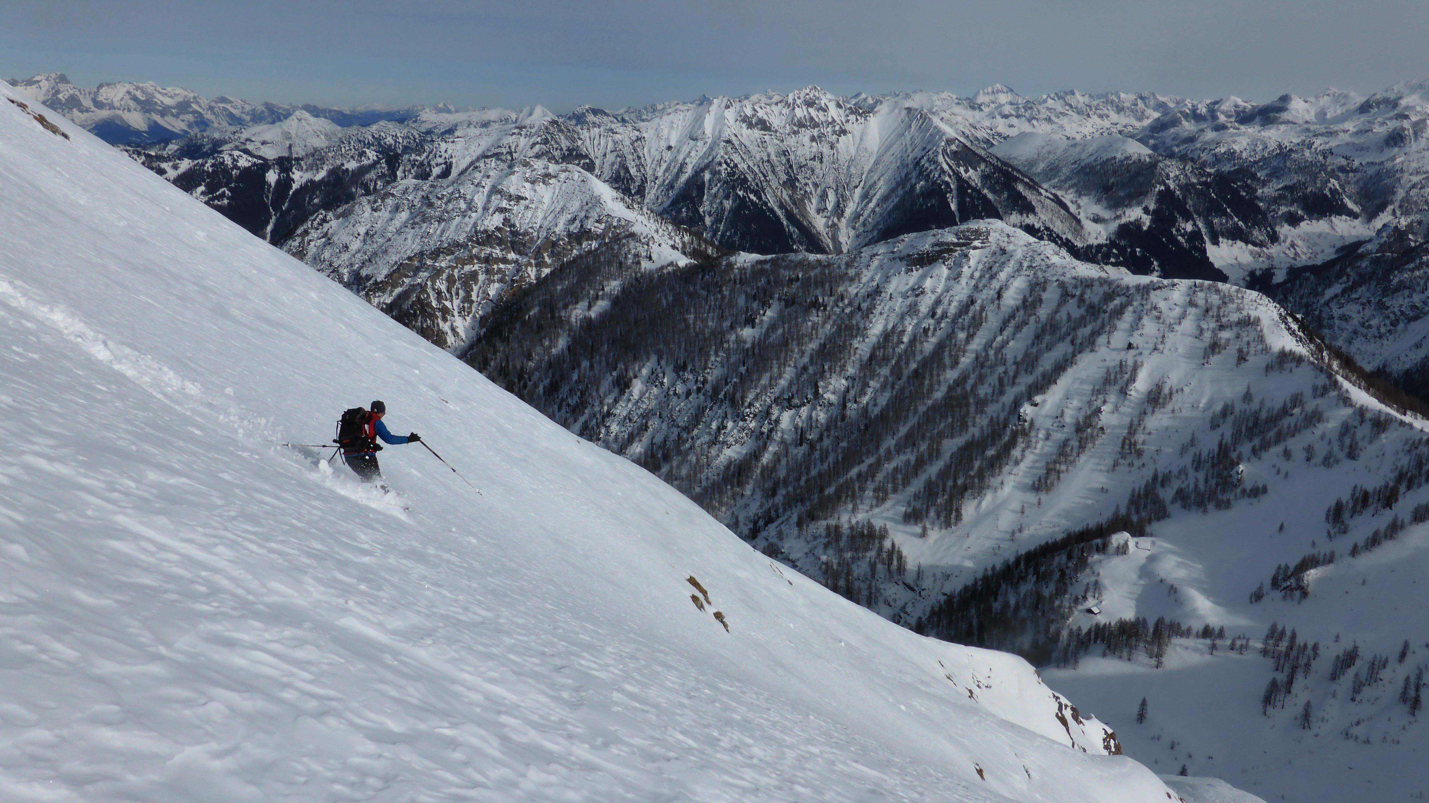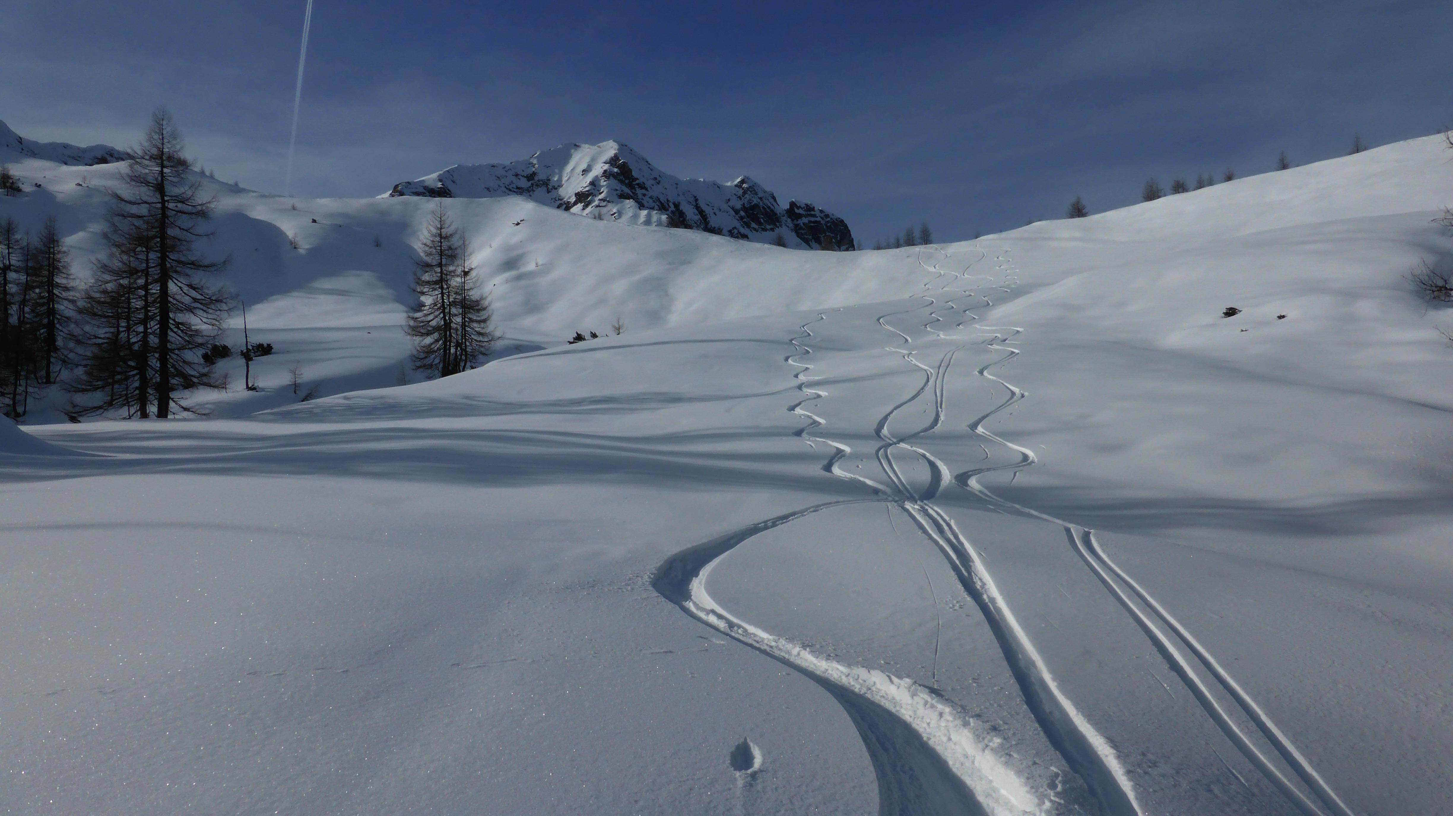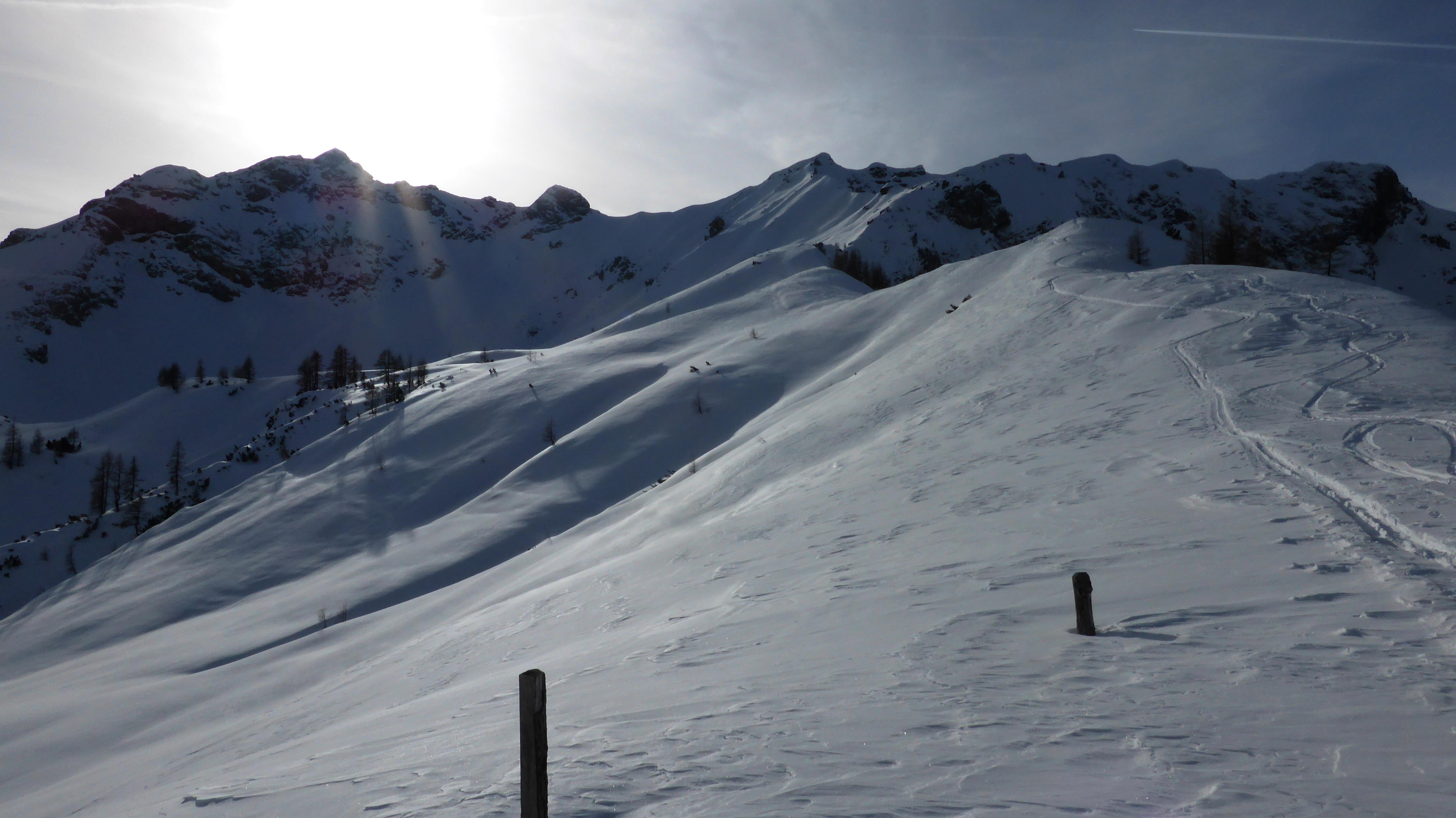 für uns überraschenderweise fanden wir trotz (v.a. im Waldgürtel unterhalb der Ranstlalm) unterdurchschnittlicher Schneelage dann doch noch etliches an gesetztem Pulver...und das sowohl ost- als auch nordwestseitig. Lediglich in Kammlagen Windharsch...