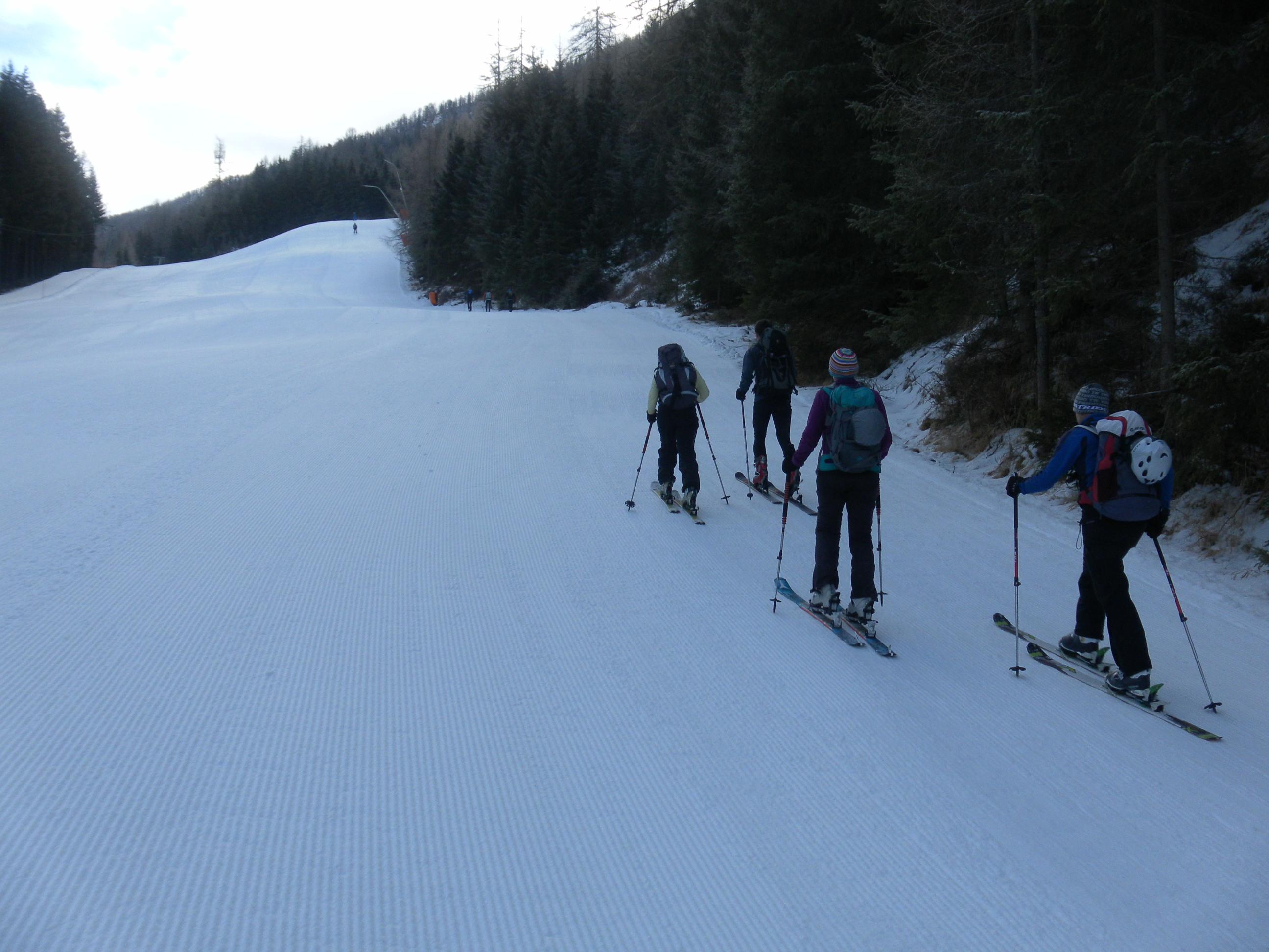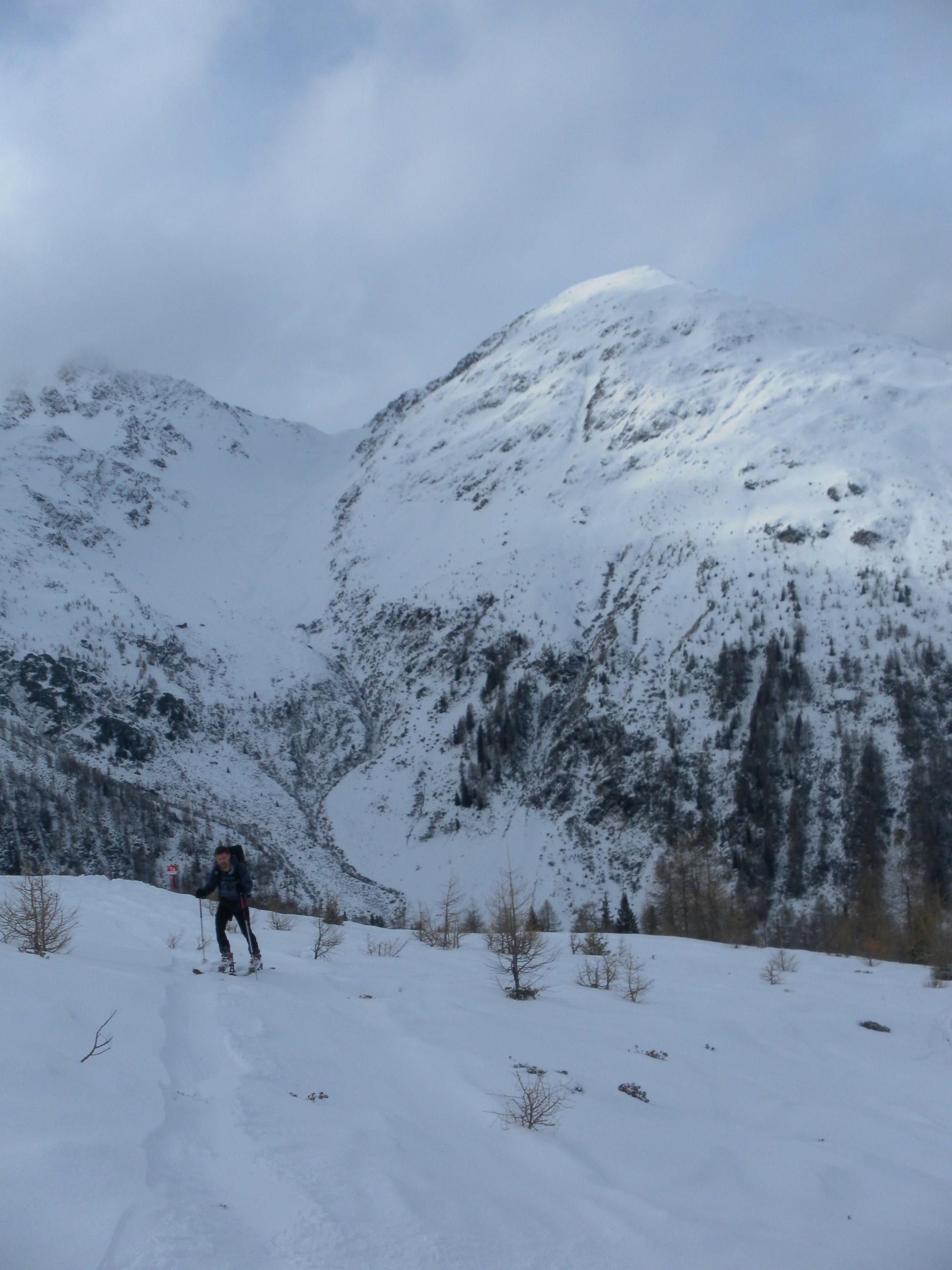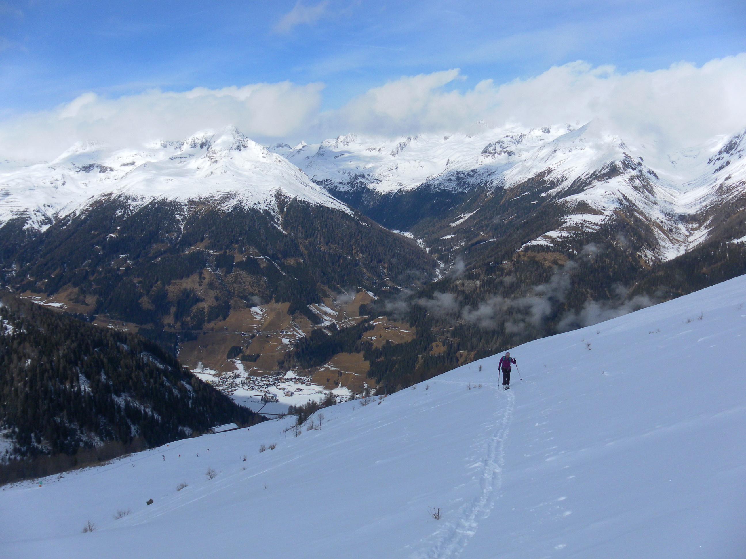 In Osttirol ist die Schneelage mager. Das Tourenparadies Defereggental zeigt sich ziemlich aper. Heute läßt sich der Kleine Leppleskofel aus dem Skigebiet ersteigen.