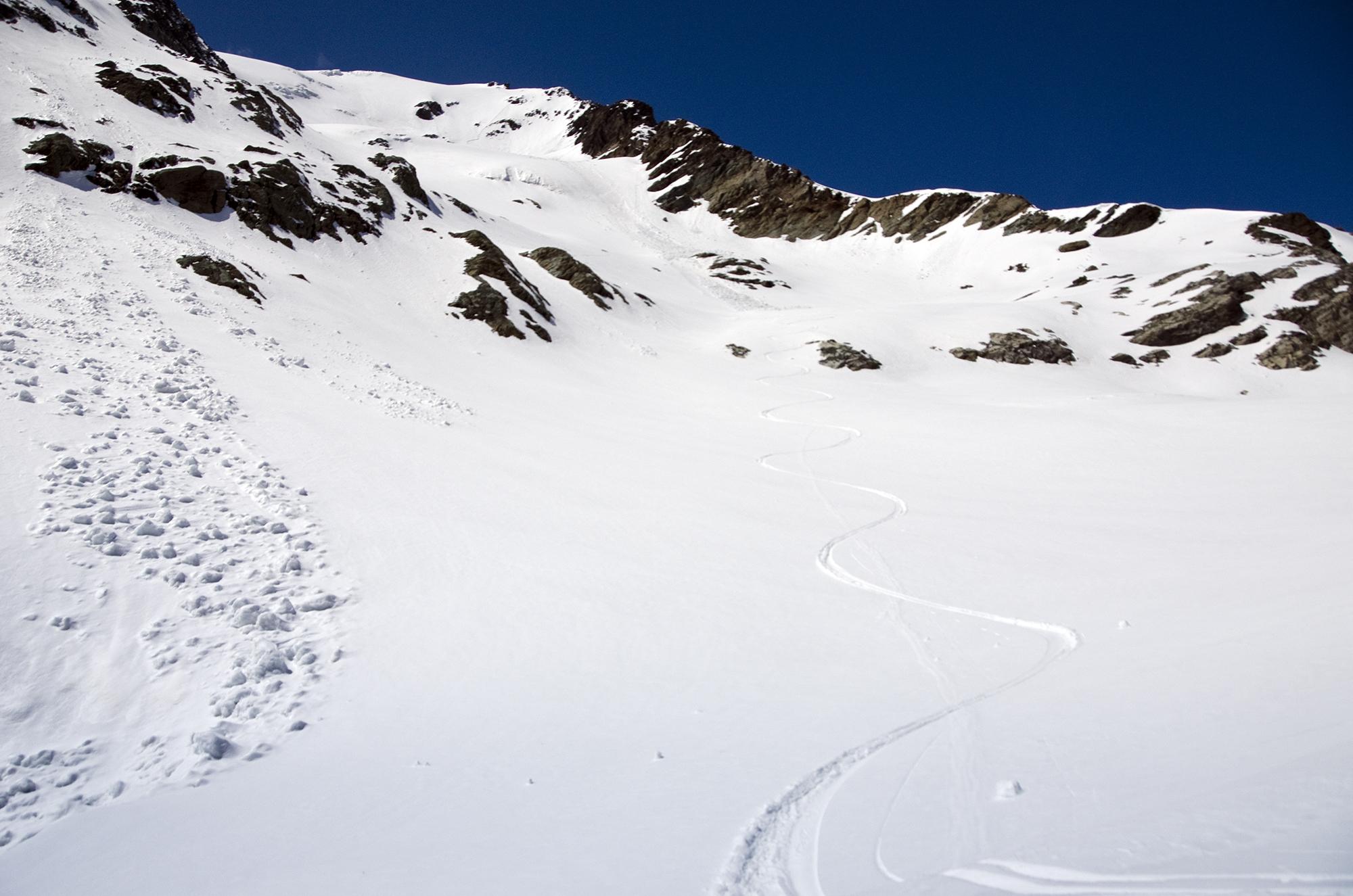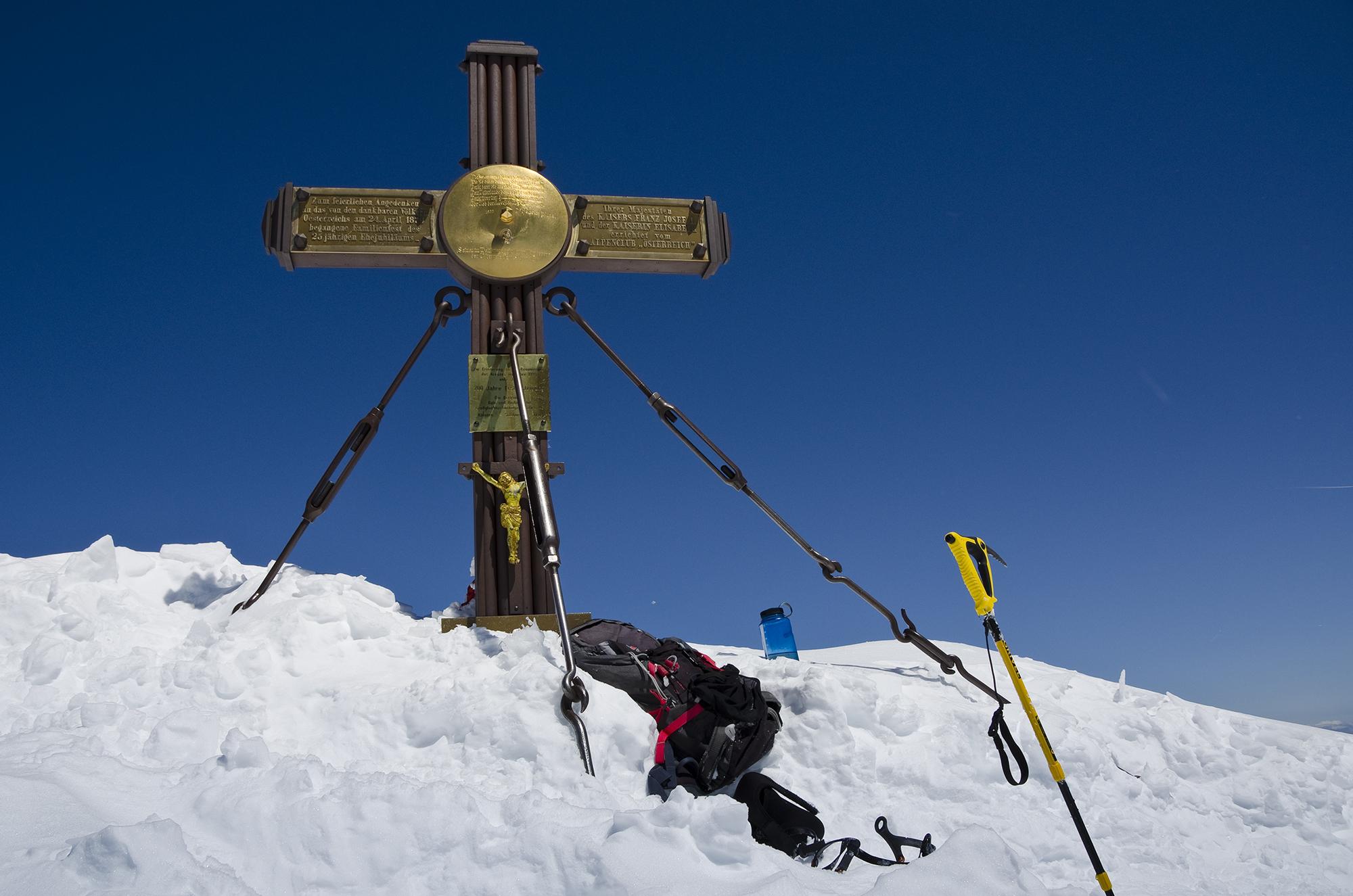 Nur 2 Franzosen habe ich heute am Gipfelgrat getroffen, sonst keinen Menschen. Der Schnee gab alles, von windbehandeltem Pulver bis Krüstchen und Firn.
