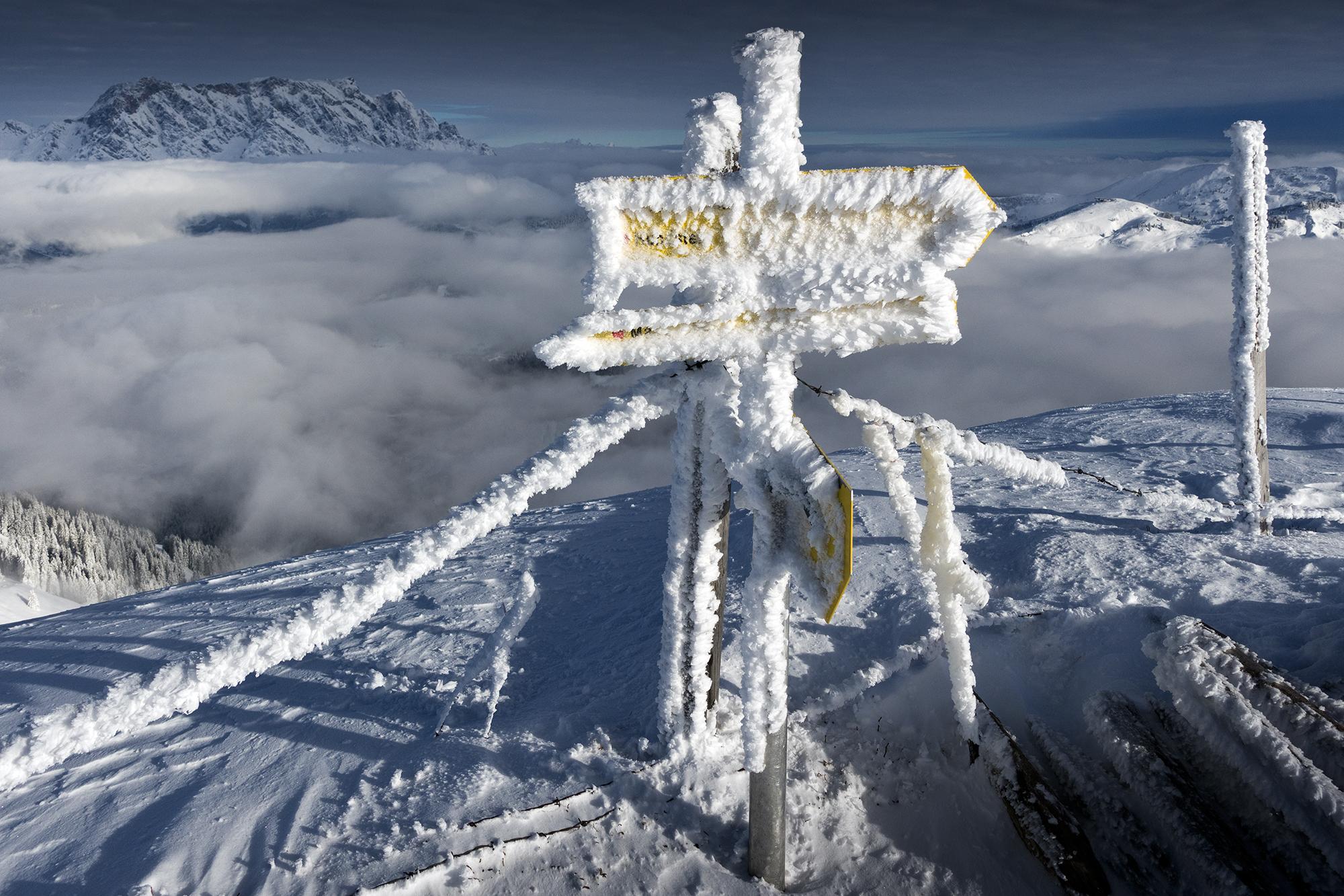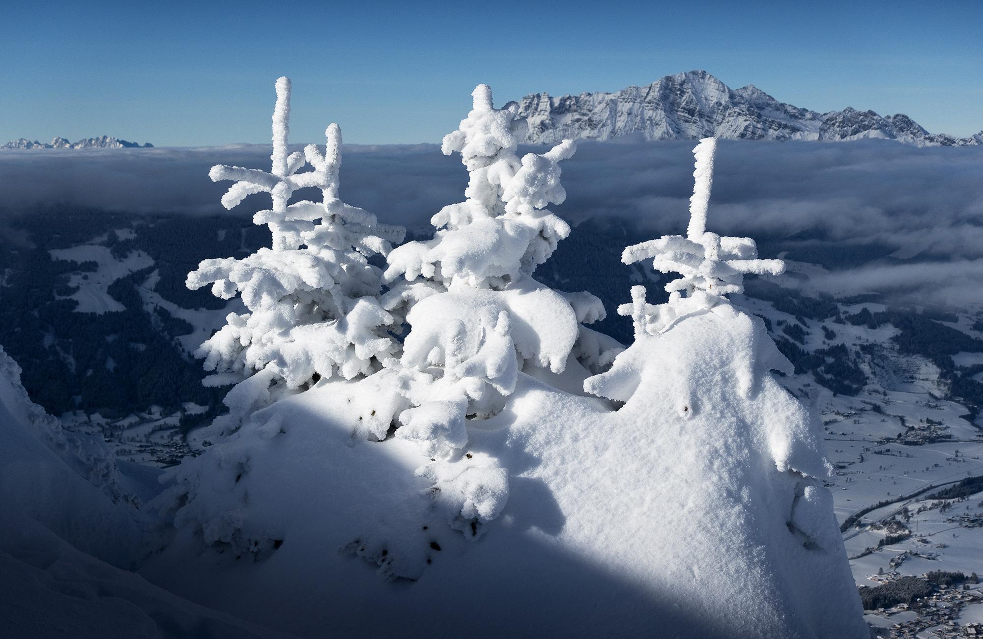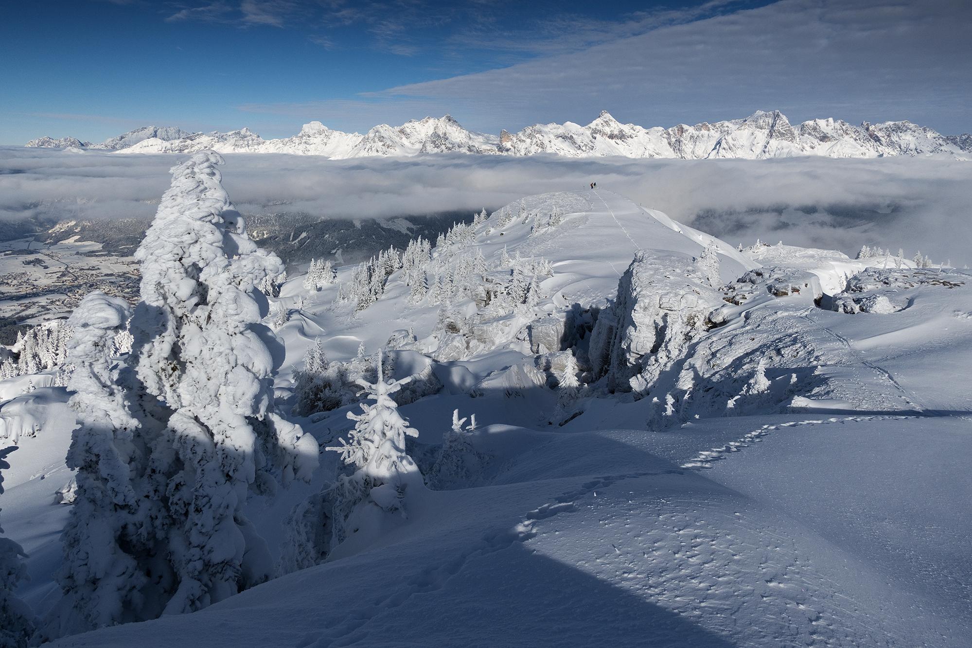 Man überlegt sich jedesmal, ob es sich lohnt, die kurzen Gegenanstiege zur Schwalbenwand hinüber in Kauf zu nehmen. Und ob es sich lohnt! Für die Einblicke, Ausblicke und die Winterstimmung. Jedesmal.