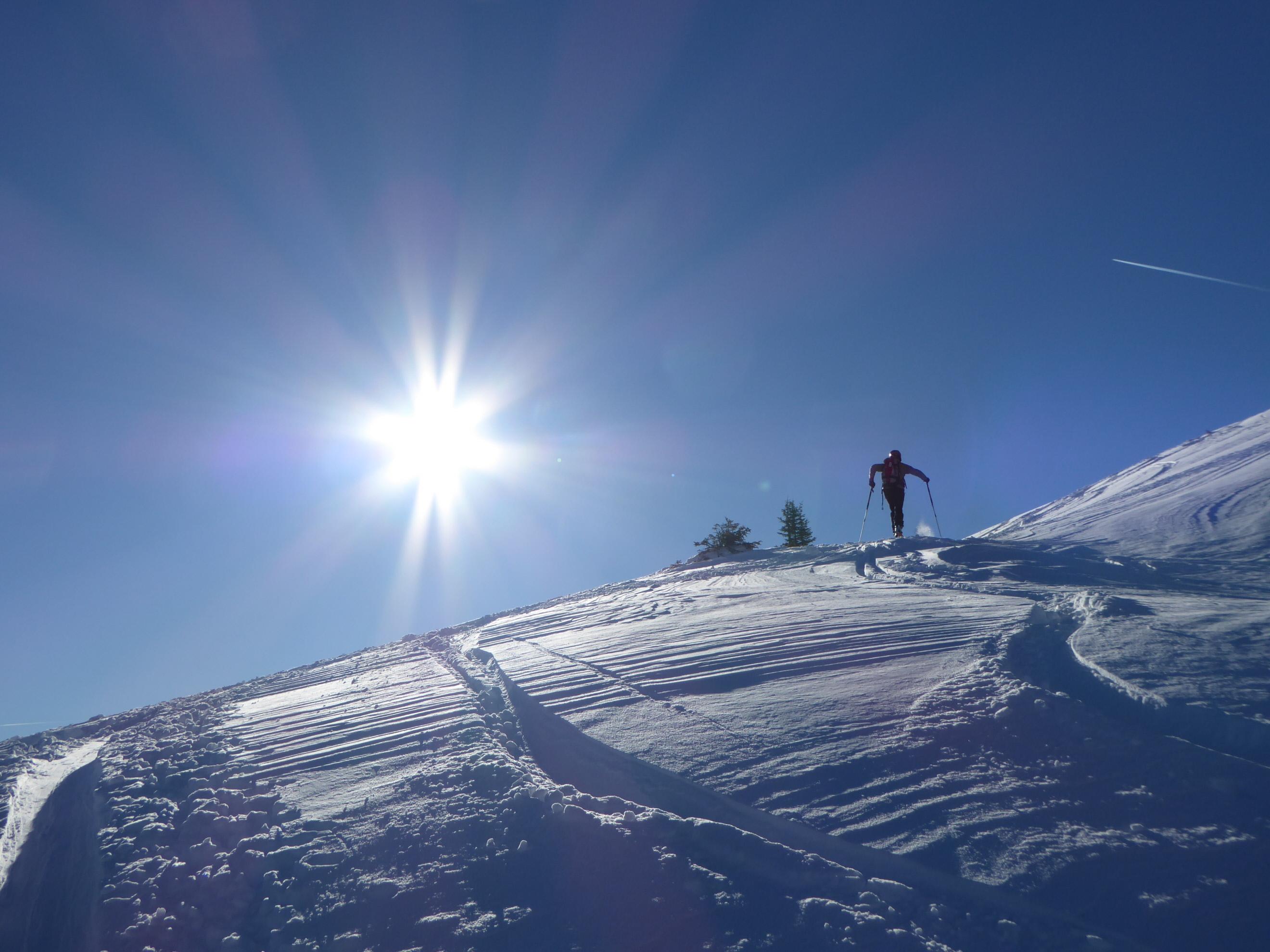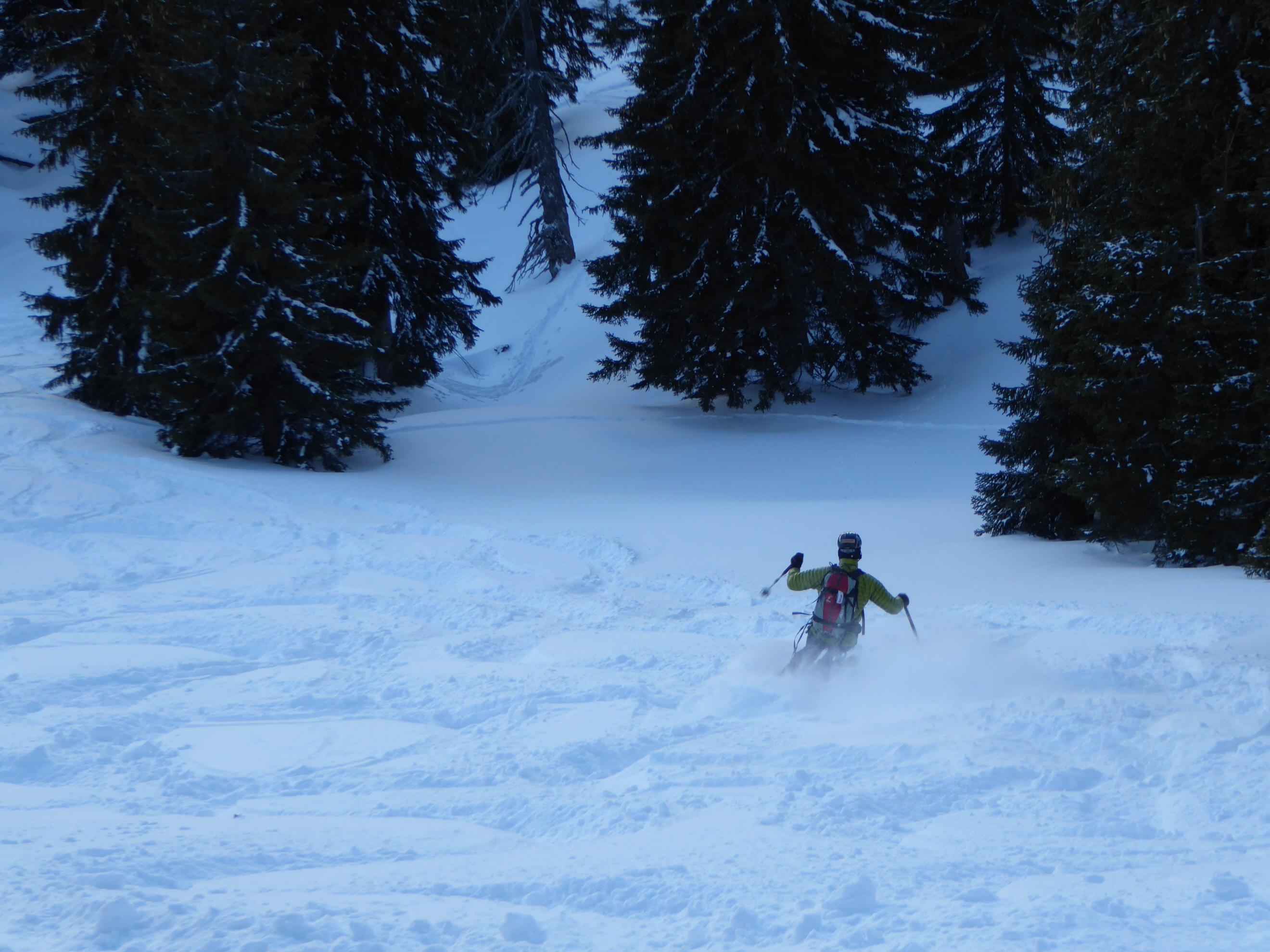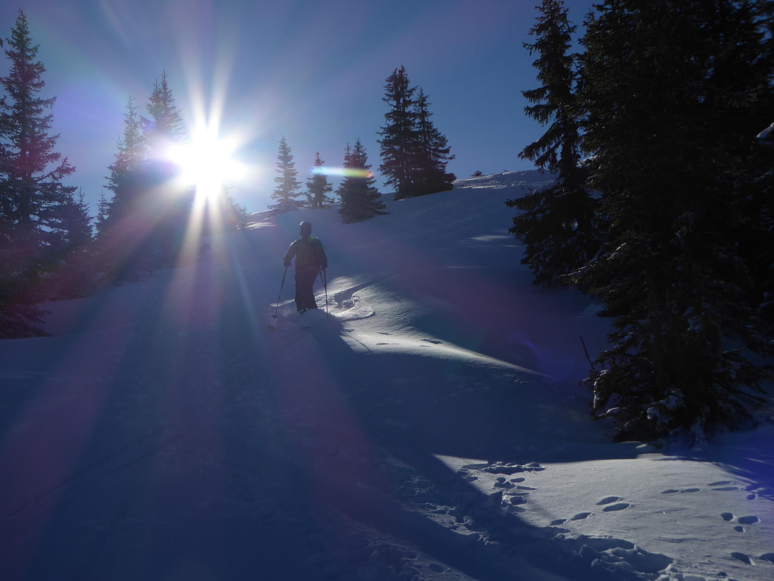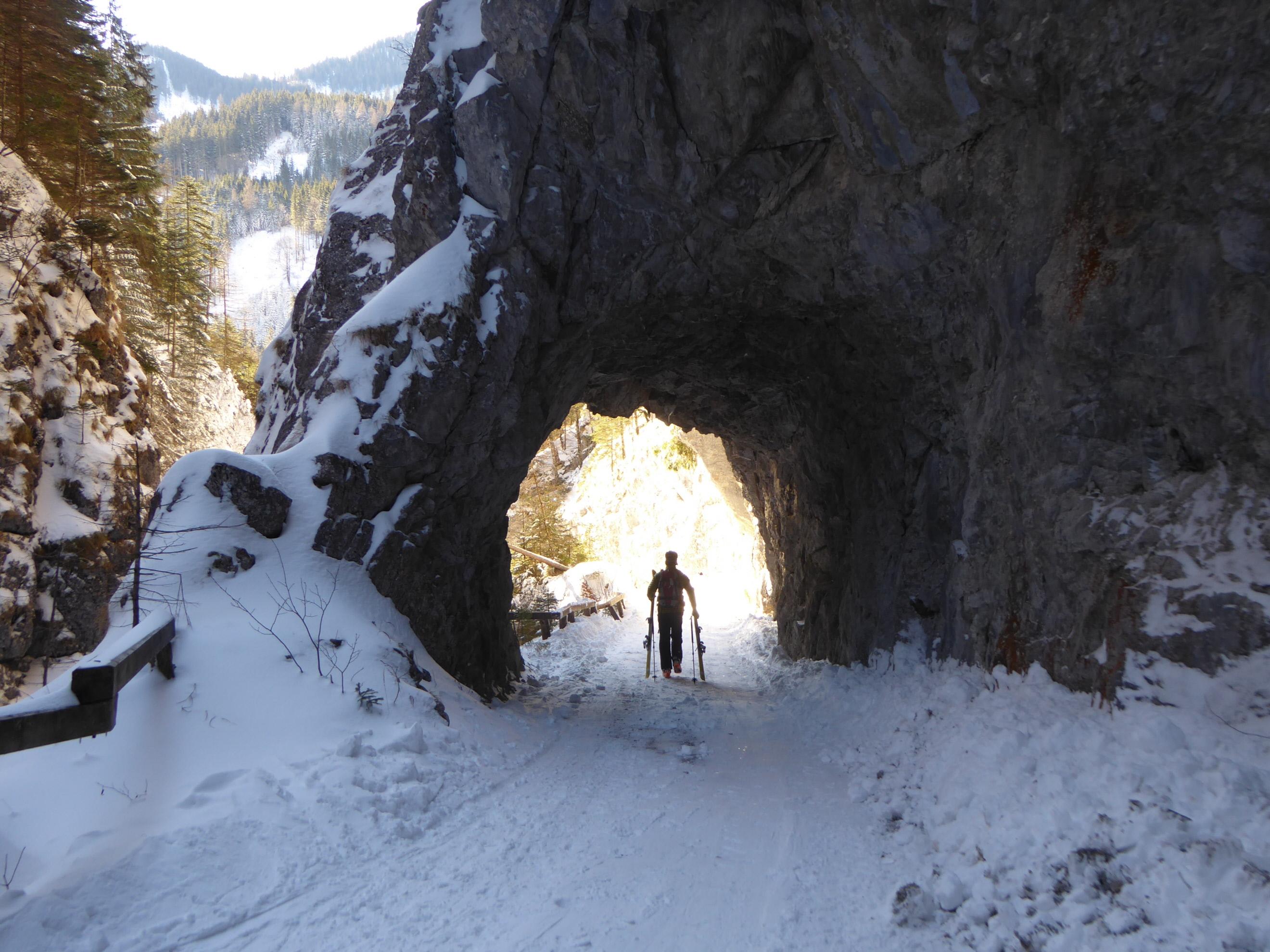 Sehr gute Verhältnisse derzeit im Gesäuse, Anstieg von Johnsbach (Ebner) durch die Klamm; Zwischenabfahrt und Wiederanstieg über die schönen Schläge und den lichten Wald im Gipfelbereich