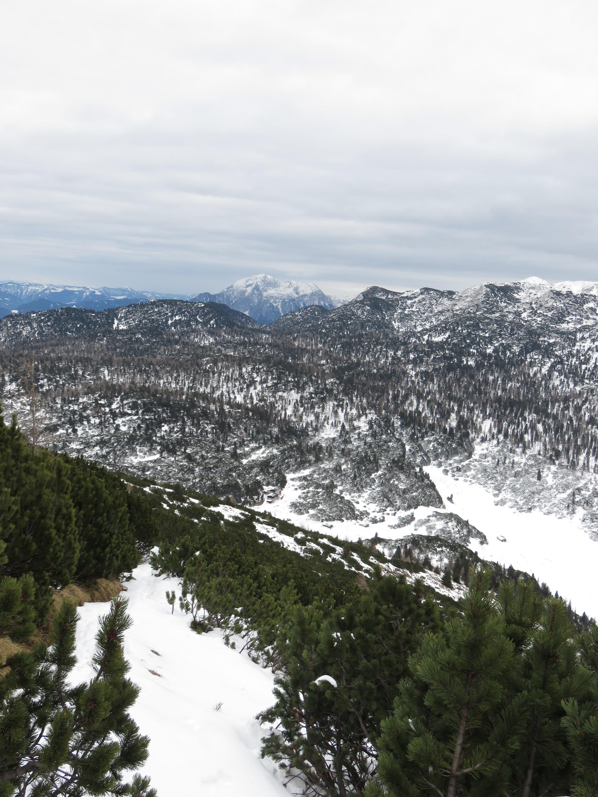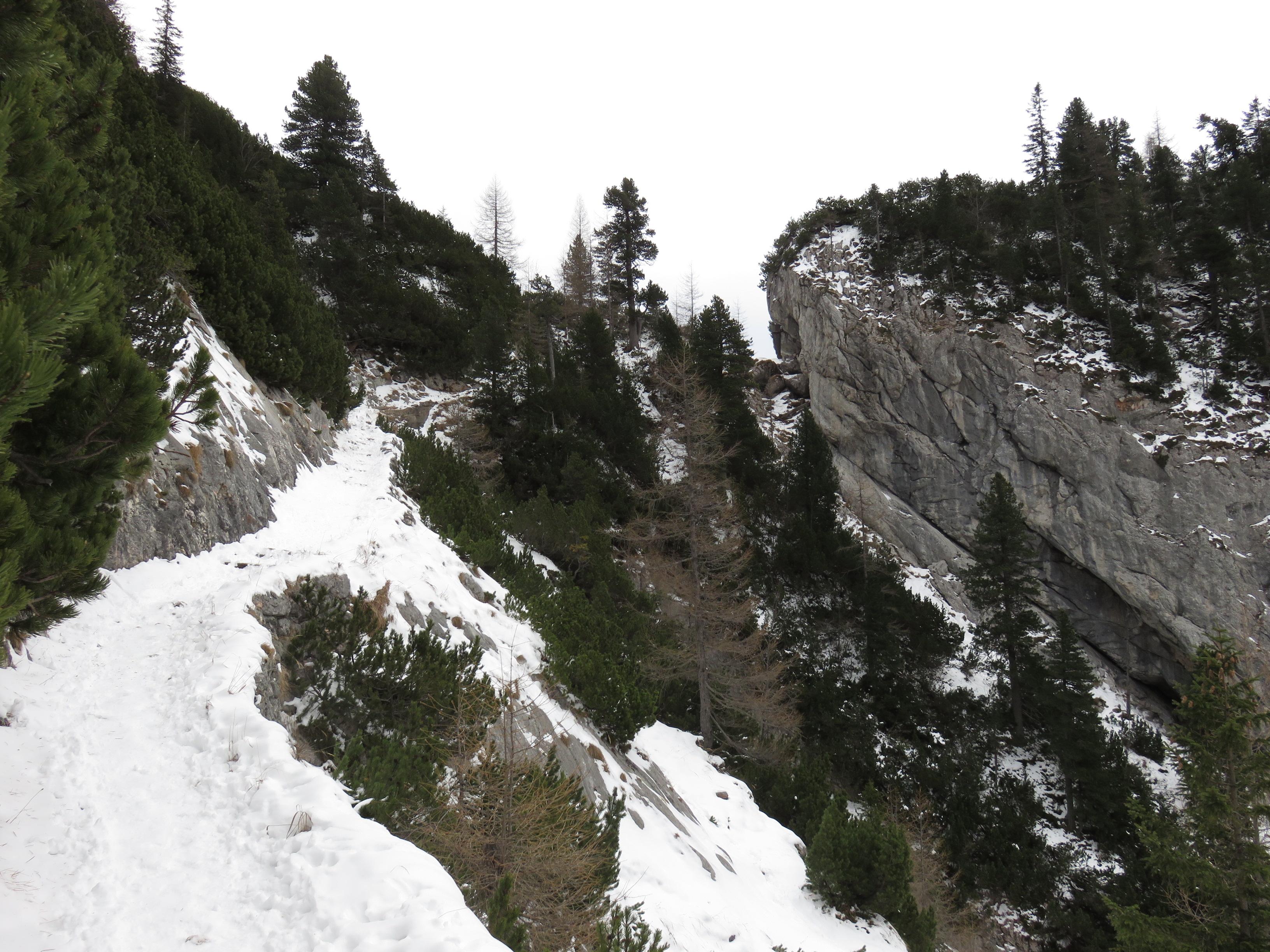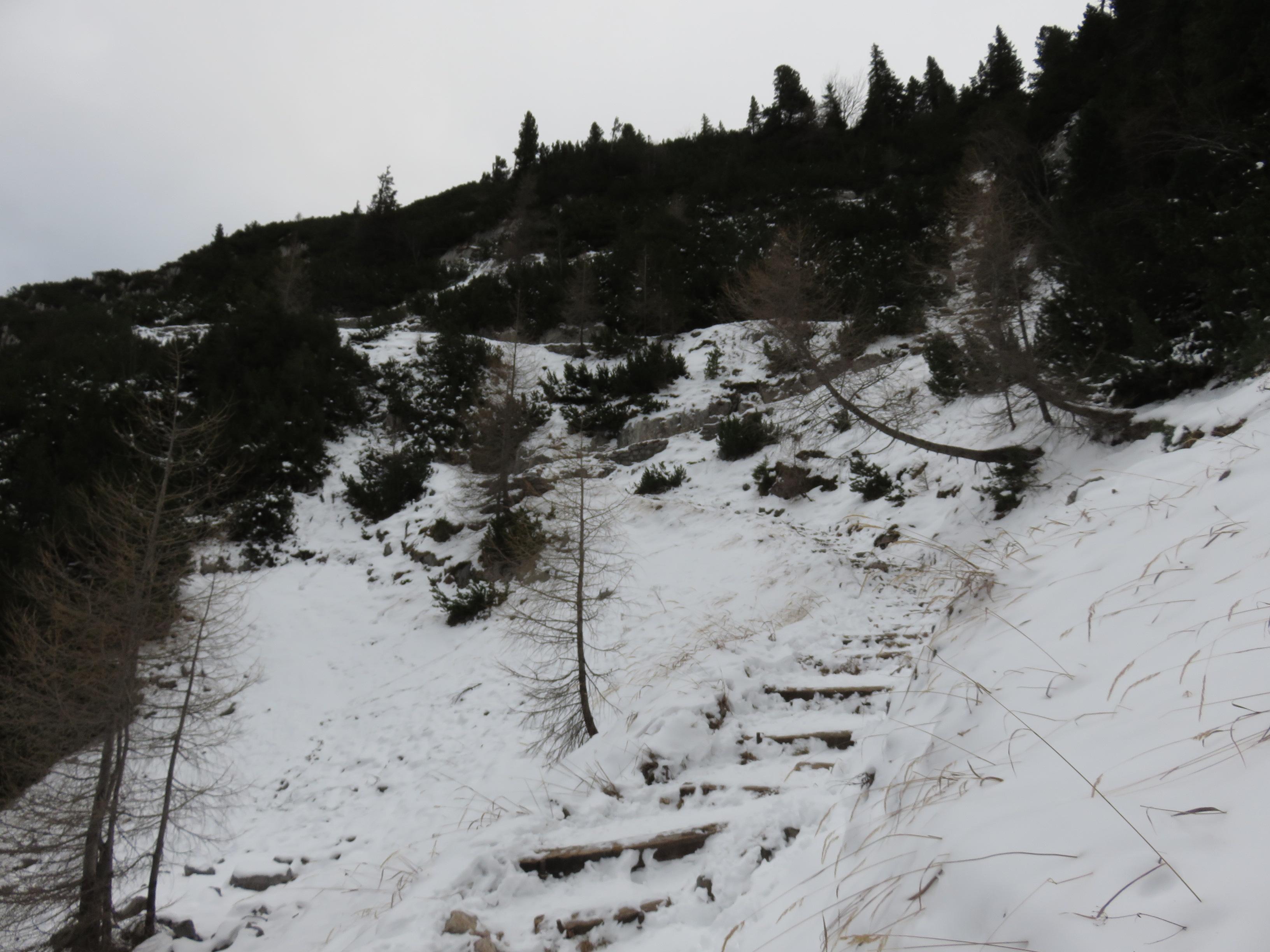 ohne Ski, von Oberjettenberg zum Schrecksattel. Im Wald sogut wie kein Schnee ab 1400m ca. 10cm