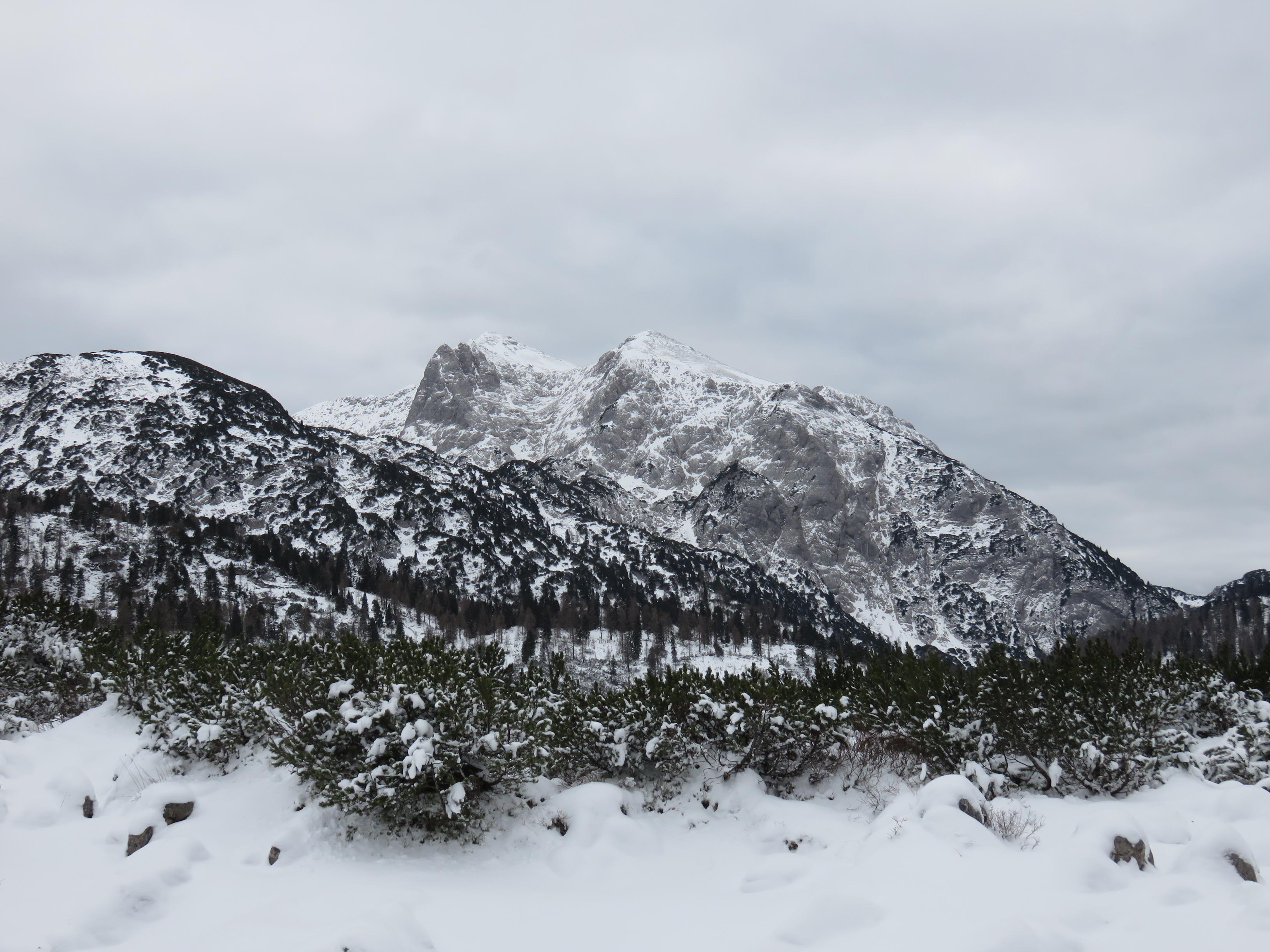 Am Weg vom Schrecksattel zur Neuen Traunsteiner Hütte ca. 20cm Pulverschnee mit Oberflächenreif.