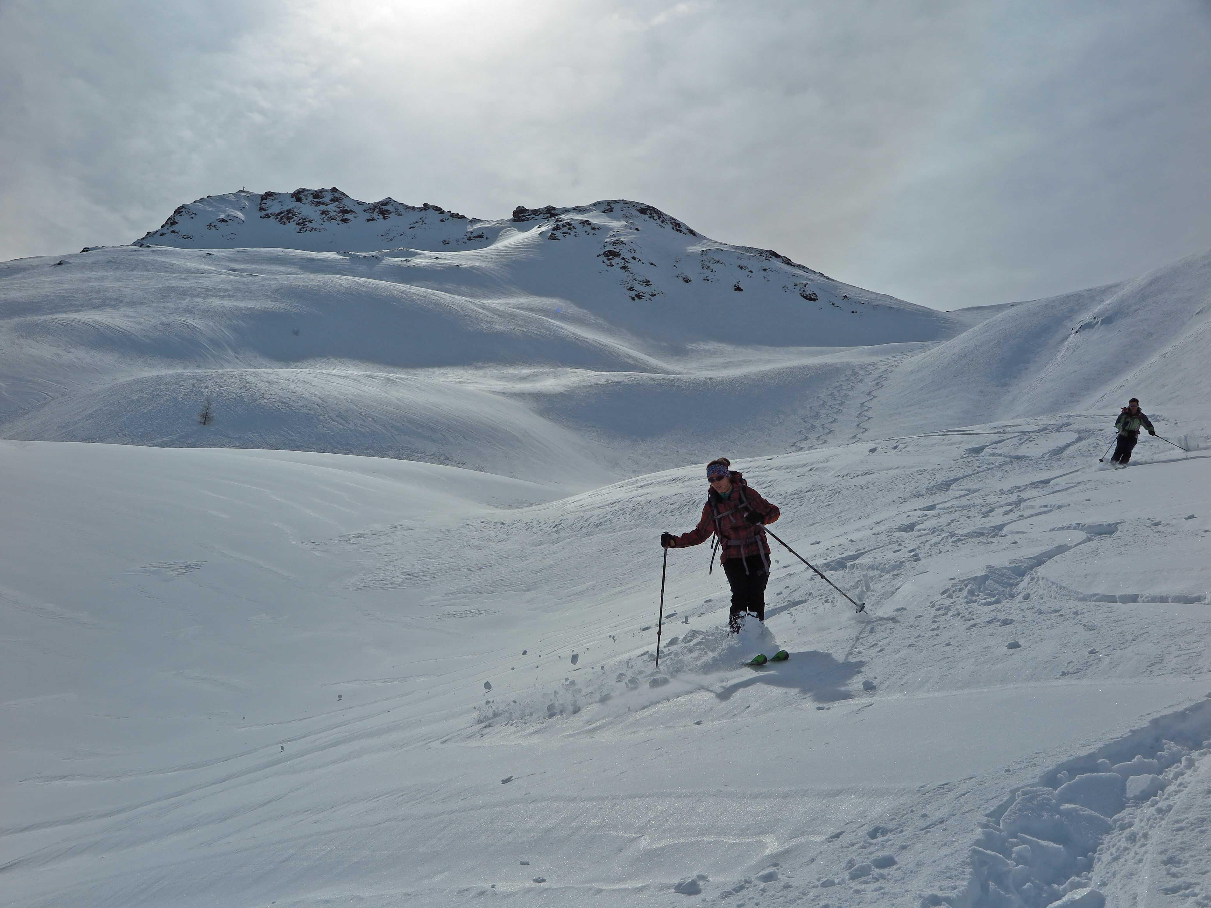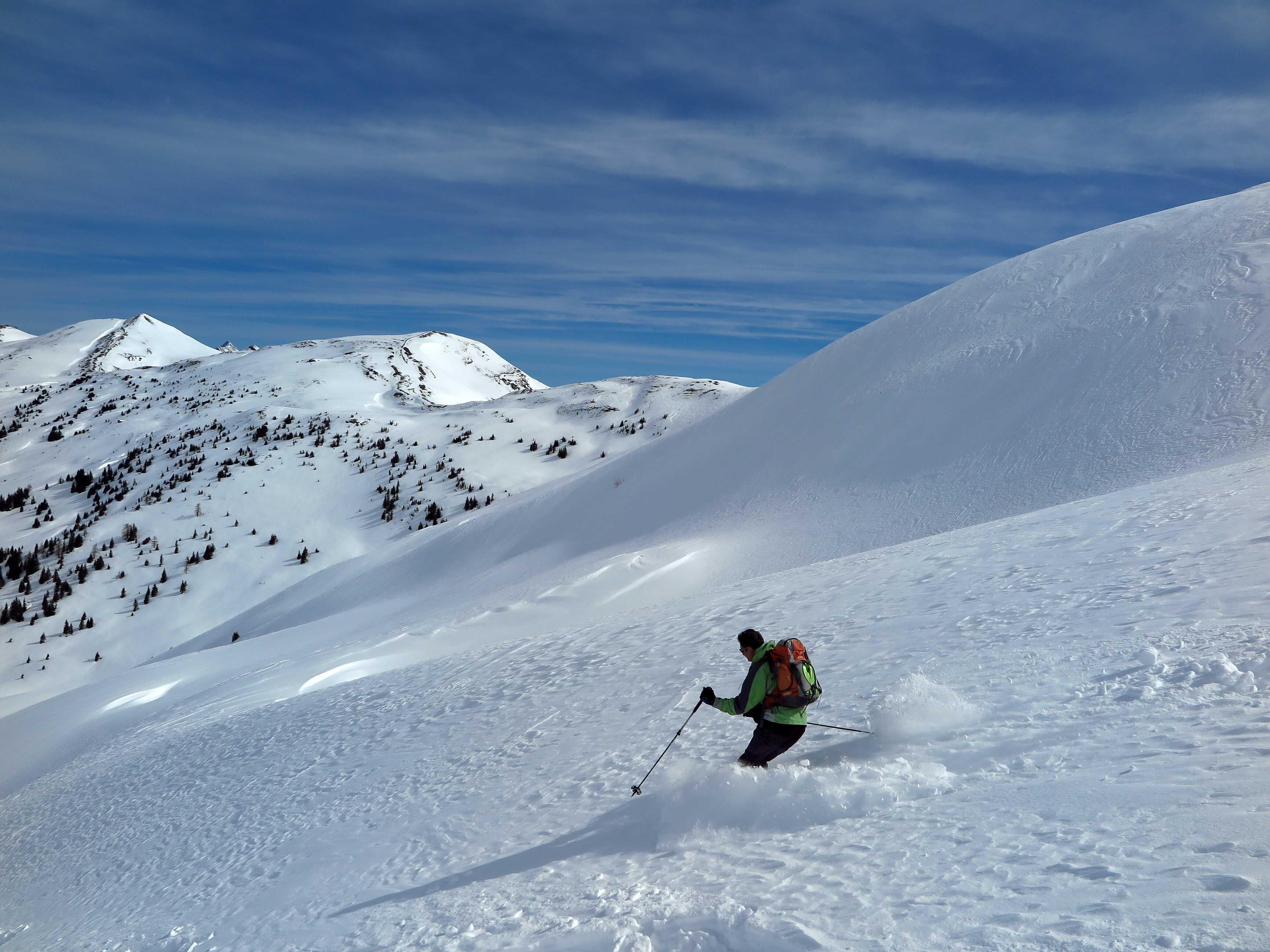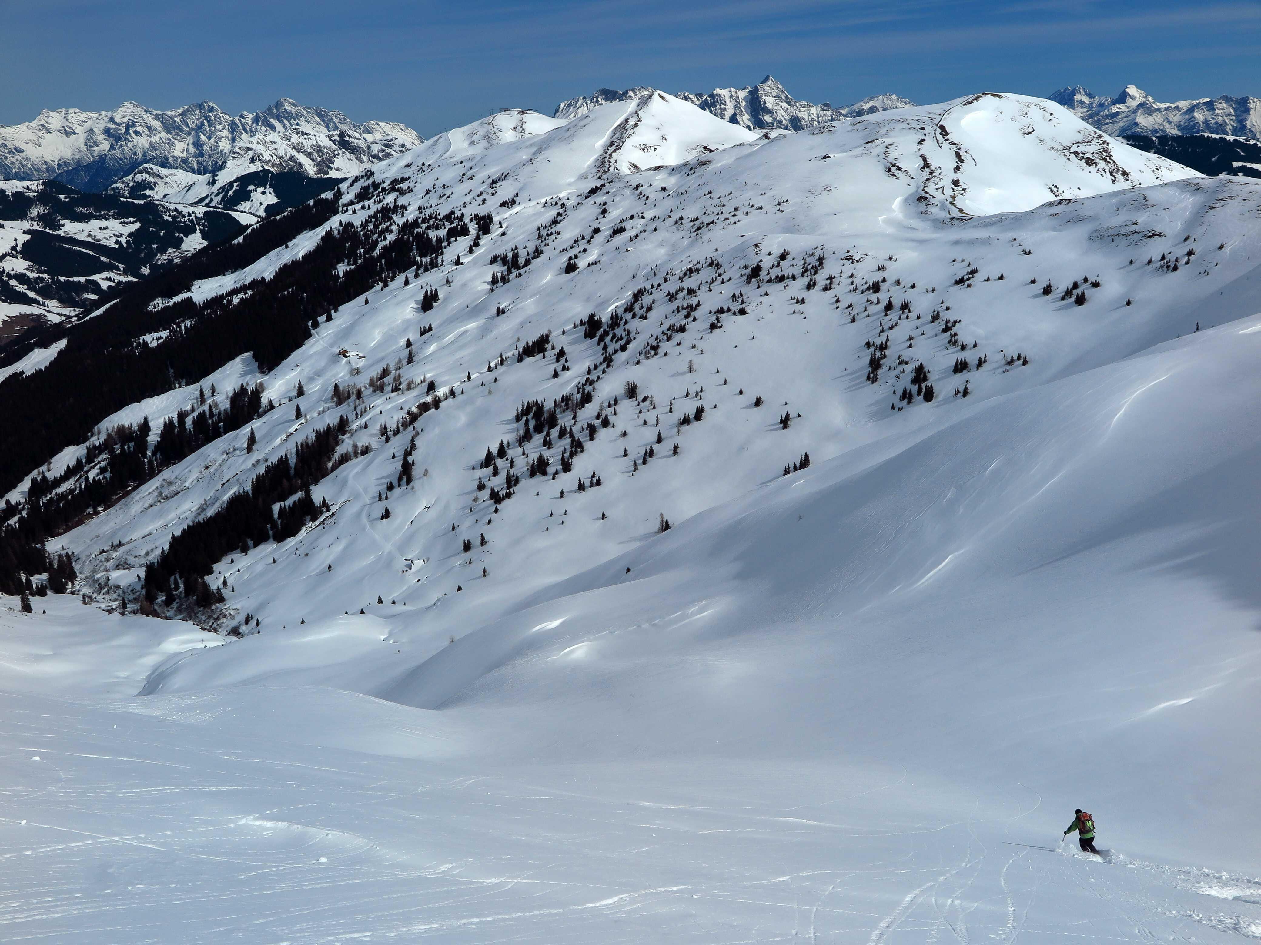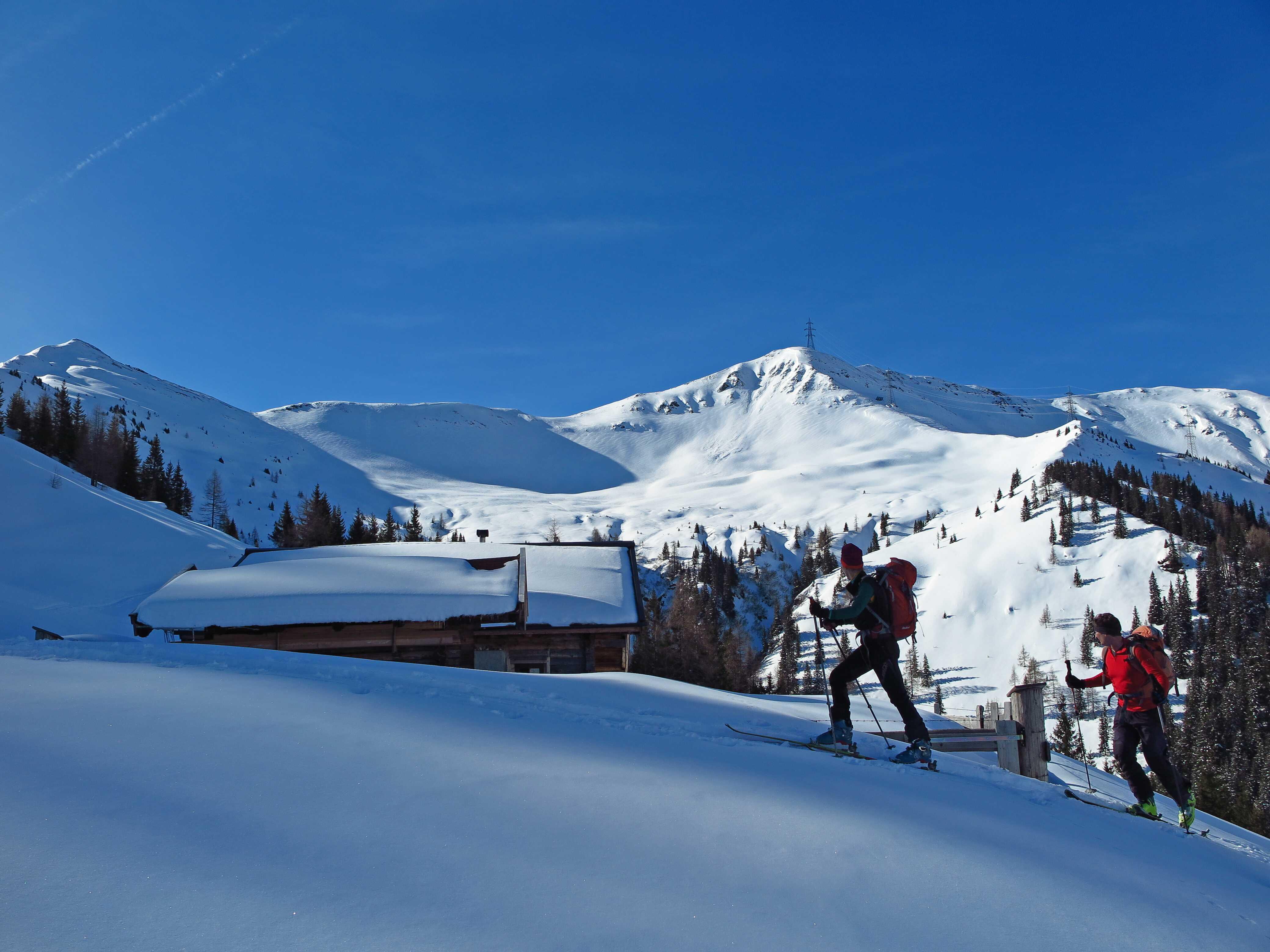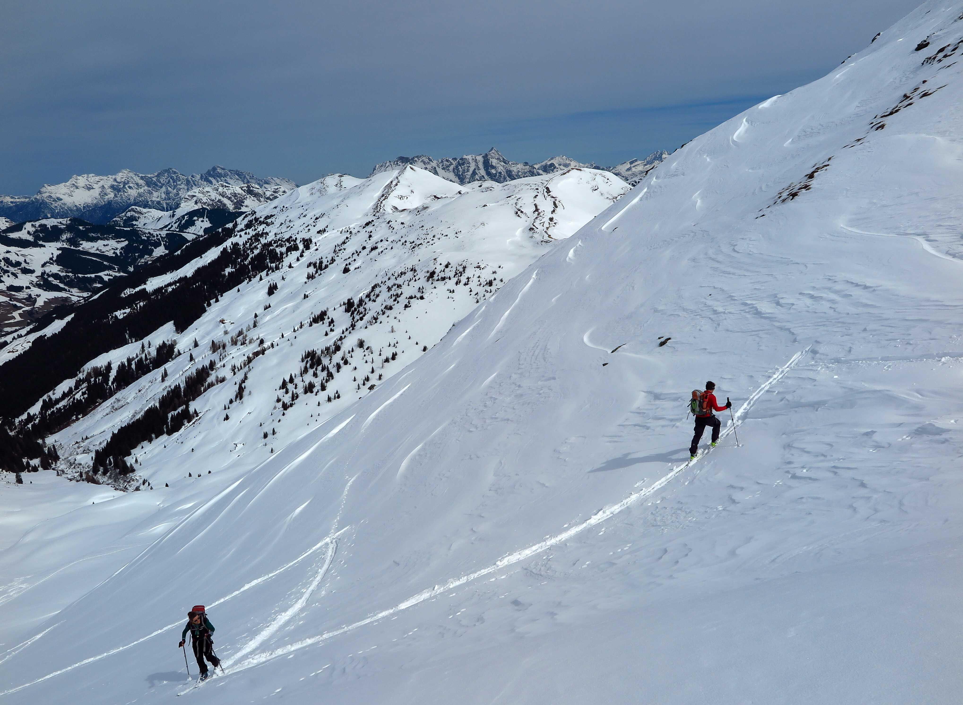 Aus dem Schwarzachengraben/Hinterglemm (1261) über Huber Hochalm (1734) in die Medalscharte (2058) und auf den Medalkogel (2123). Abfahrt Richtung Polzalm und Wiederanstieg zum Medalkogel. Abfahrt Medalkogel Nordseite und Wiederanstieg bis oberhalb Medalscharte. Abfahrt über Aufstiegsroute zurück zum PP.