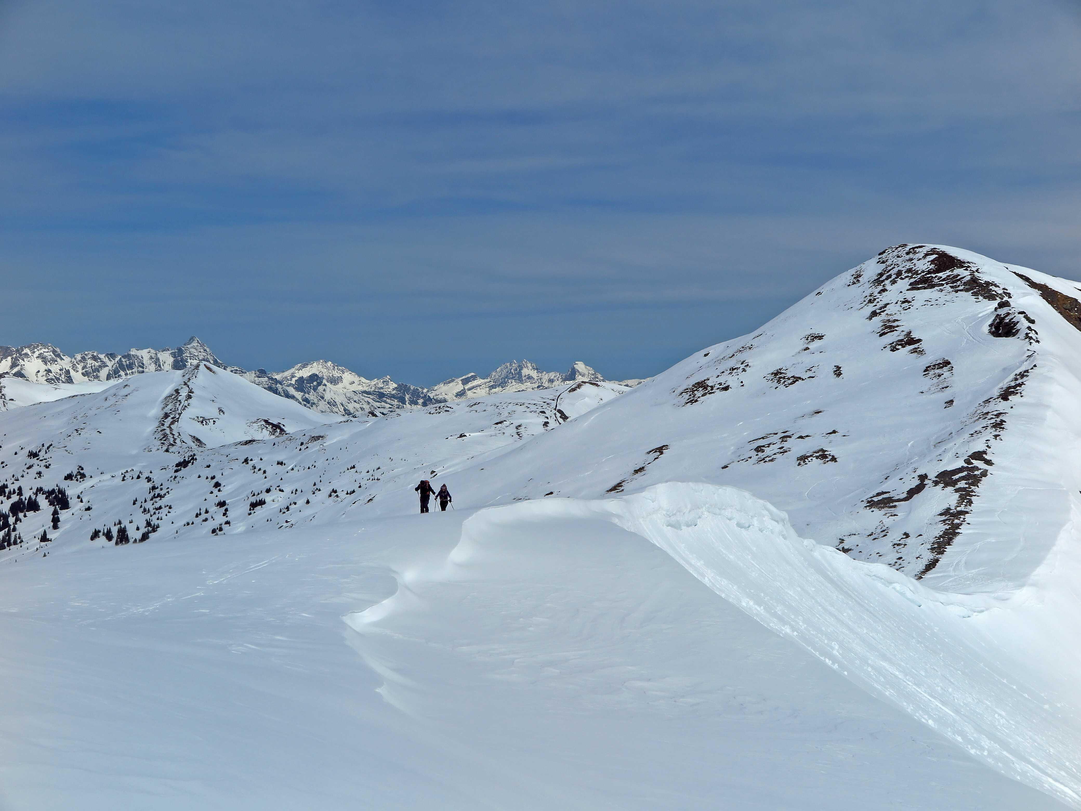 Lawinenbeobachtungen: Kleinere Abrutschungen aus steilen O-Hängen, in windbehandelten Hängen manchmal Abgleiten der Pressschneeschollen.
