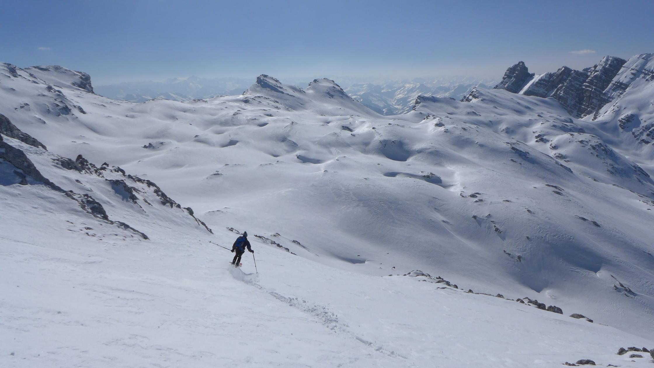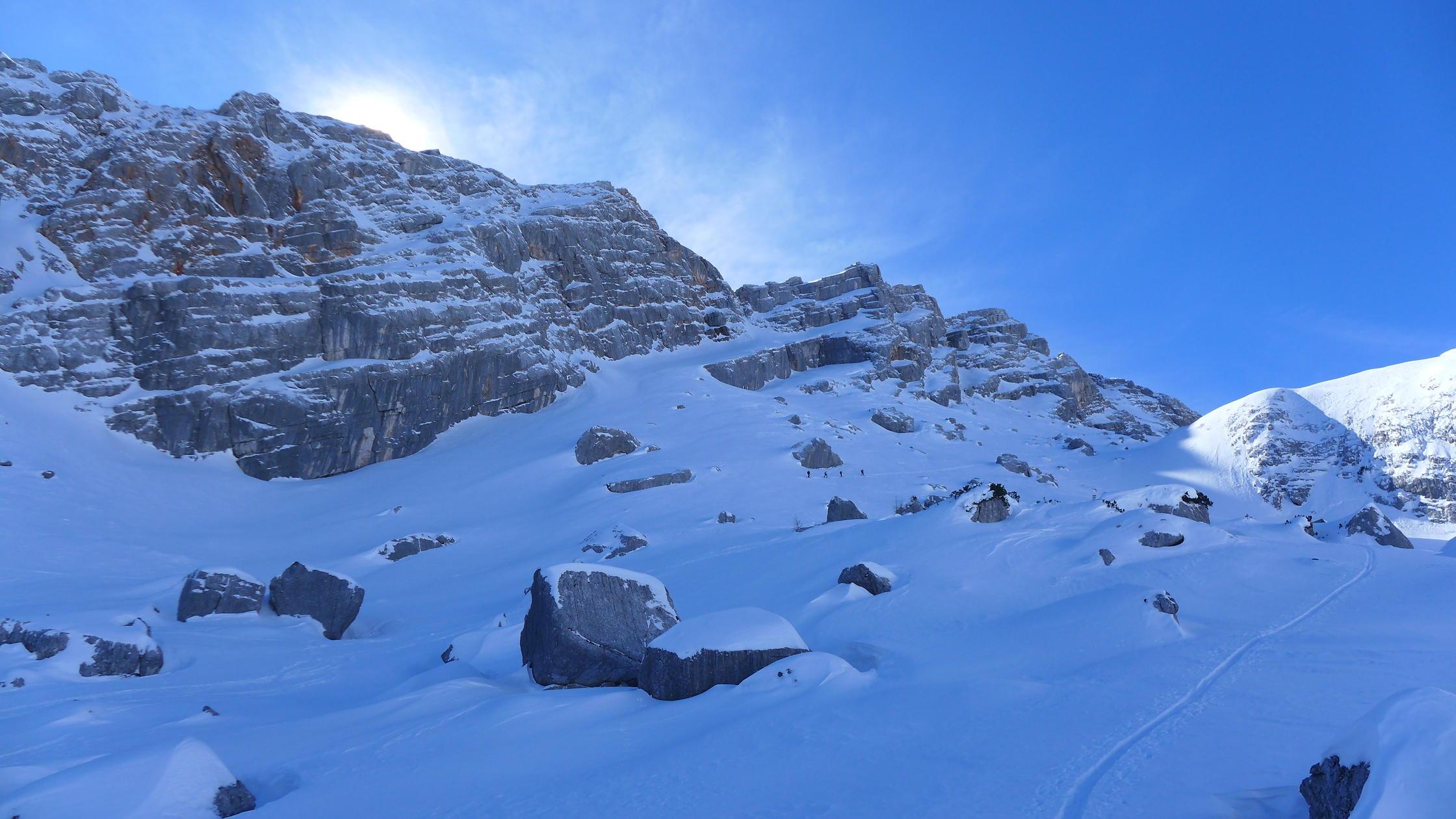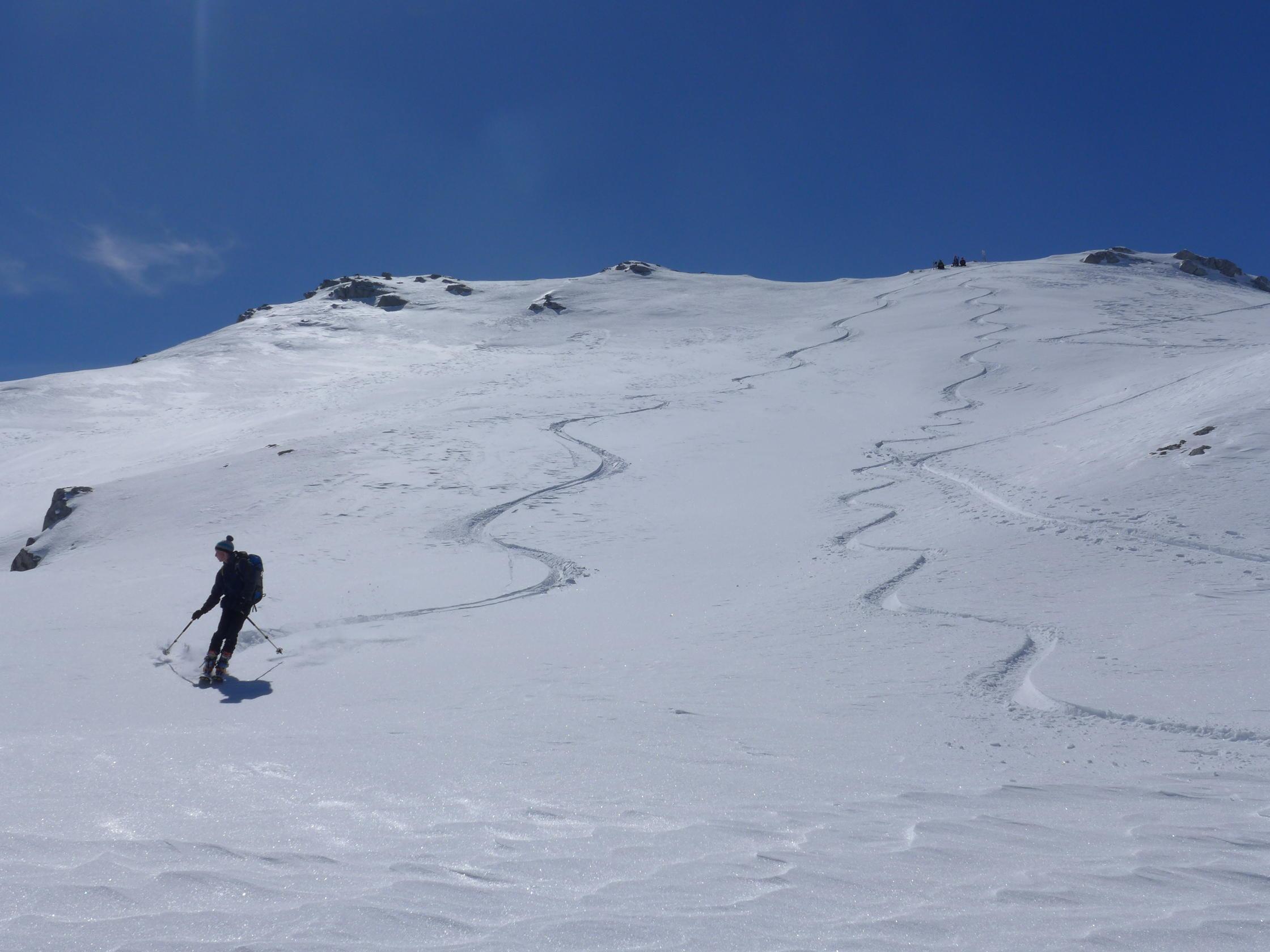 Die Abfahrt war leider nicht die erhoffte lange Pulverschneeabfahrt. Der Wind hatte