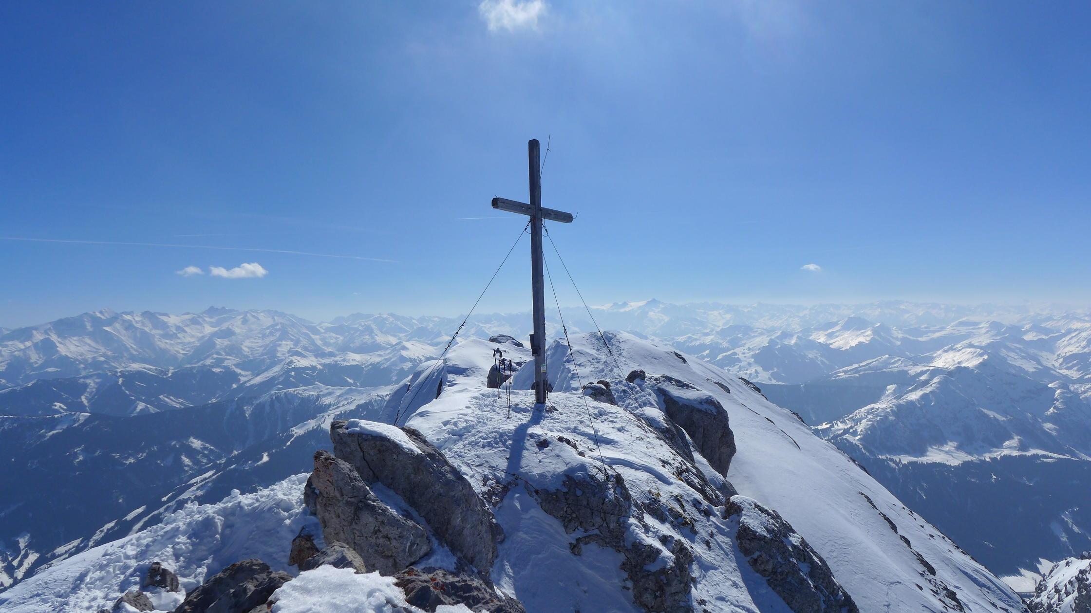 Wir wählten das Östl. Rothörndl. Nach der Traum-Pulverschneeabfahrt fellten wir noch einmal auf und stiegen bis zum Kuchelnieder, dem Skidepot des Birnhorn, auf. Der Gipfelanstieg präsentierte sich noch mit ziemlich viel Schnee, über weite Strecken war aber das Stahlseil bereits frei.