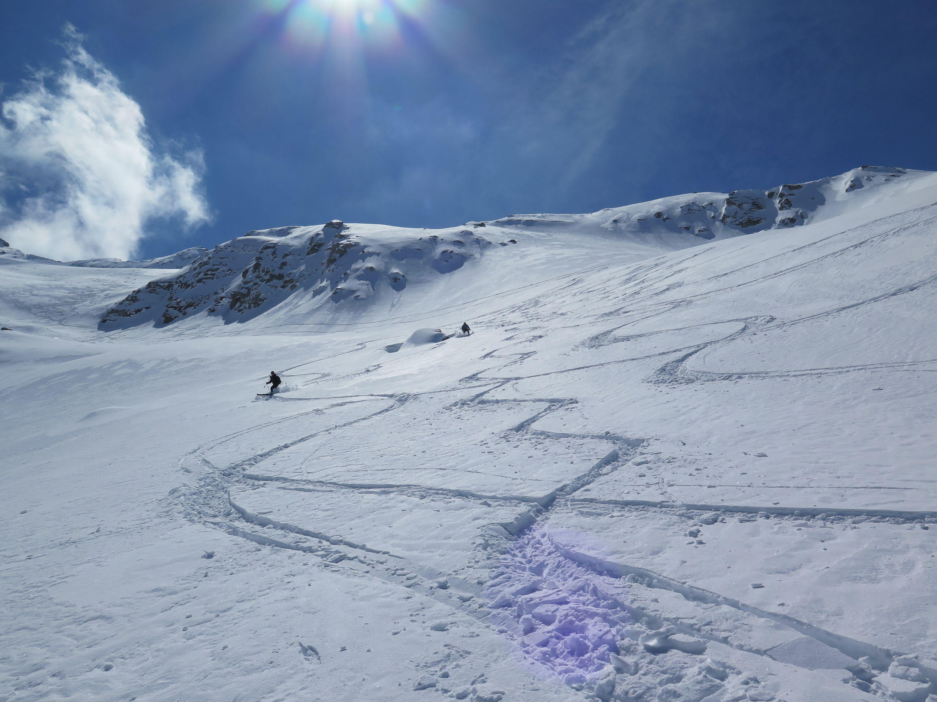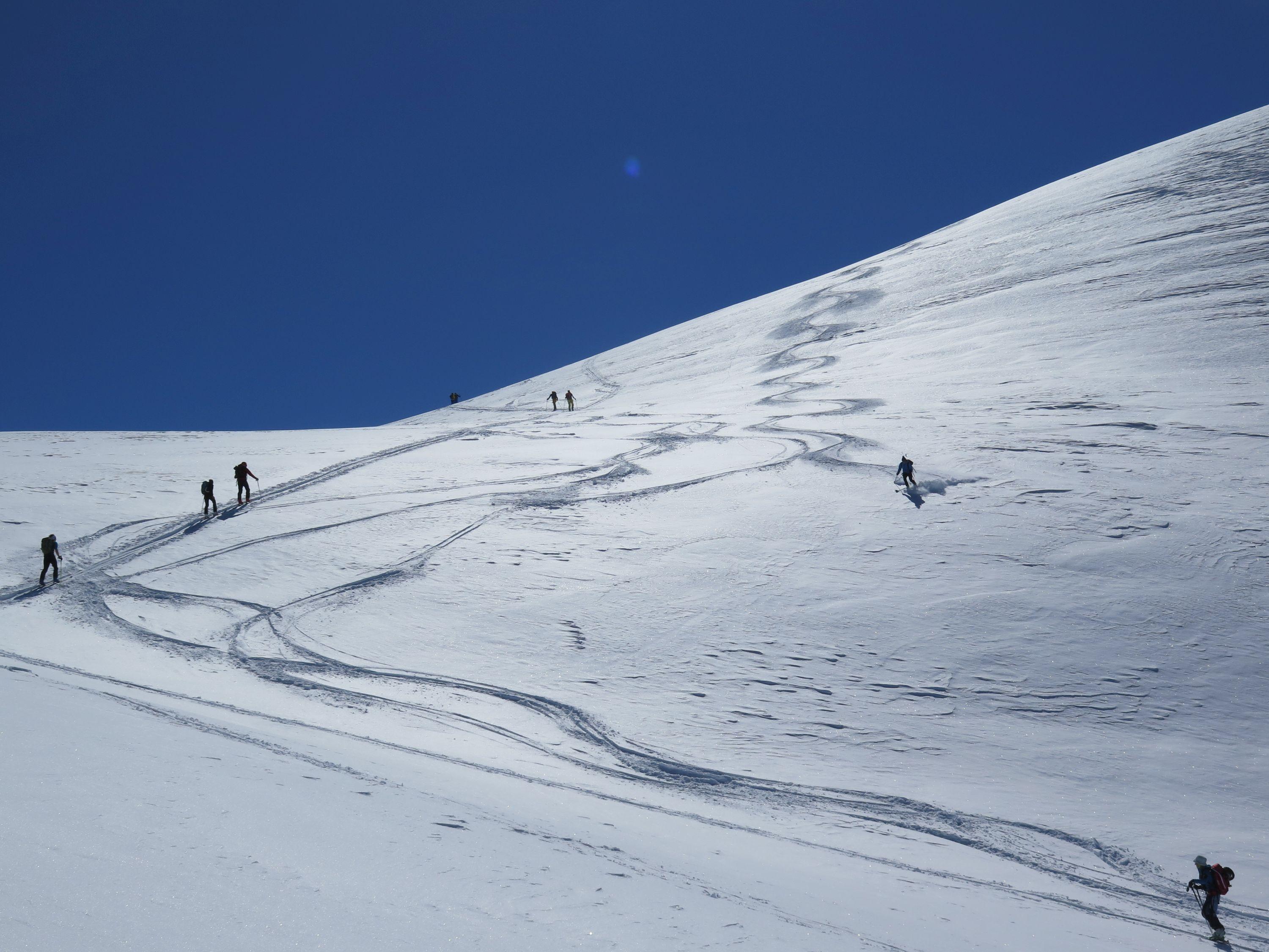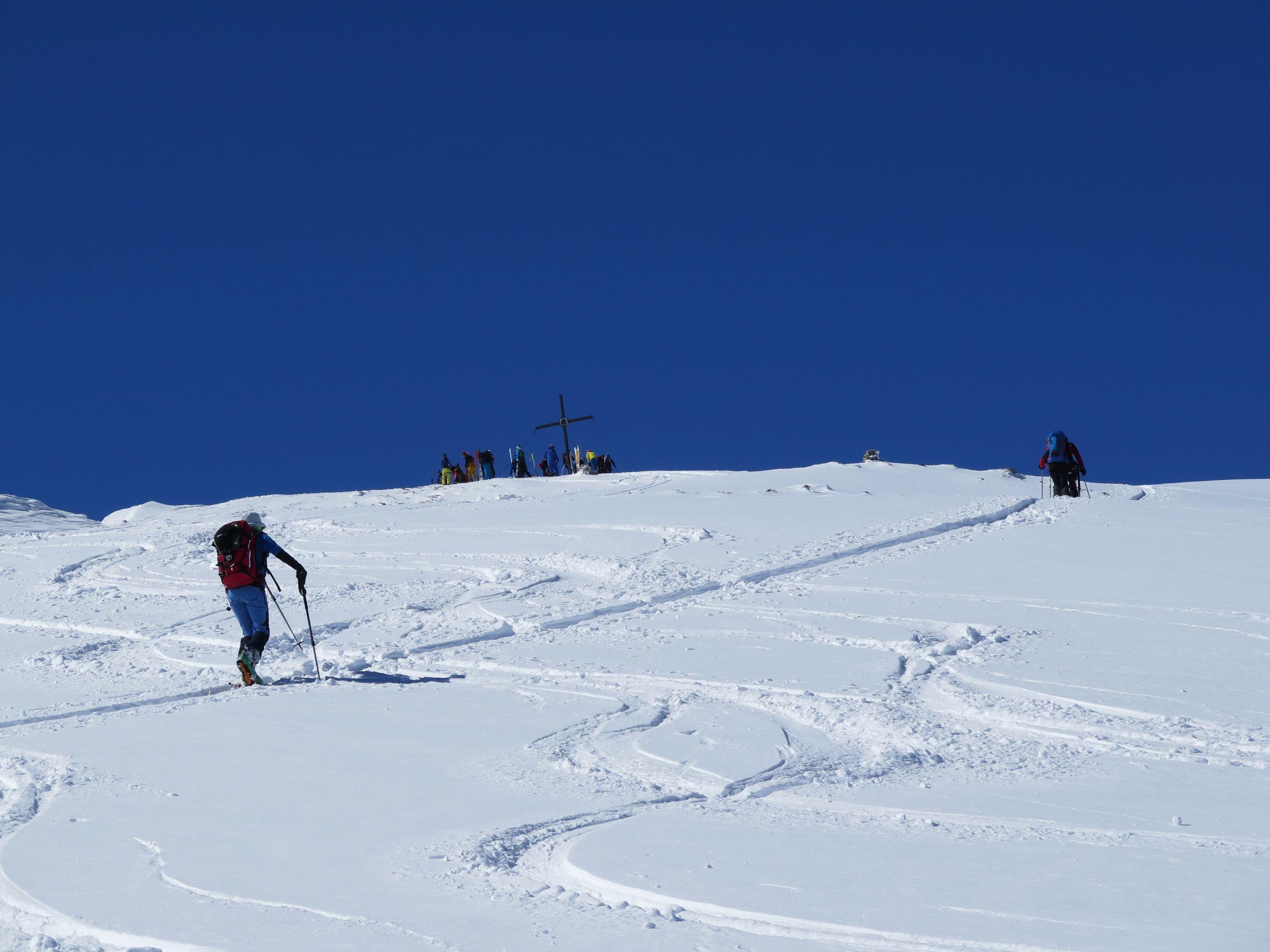 Durch die leichte Erreichbarkeit mit den Hintertuxer Getscherbahnen (Bergfahrt 18,50 Euro) sehr beliebter Skidreitausender.Nach dem Skizikus gehts über sehr schönes Skigelände und langen Querungen zum Gipfel, bei dem schönen Wetter heute eine überwältigende Aussicht. Wetter : sonnig ,mäßiger Wind, gegenüber im Hauptkamm Richtung Süden schon am Vormittag Wolkenstau. Der Schnee war heute ein Wunschkonzert von Pulver über Bruchharsch,Firn von allem etwas. Abfahrt ins Tal nur mehr auf Piste bei im letzten Teil sehr dünner Schneedecke möglich.Geringe Neuschneemenge, laut Lawinenwarndienst Tirol derzeit Stufe 2.