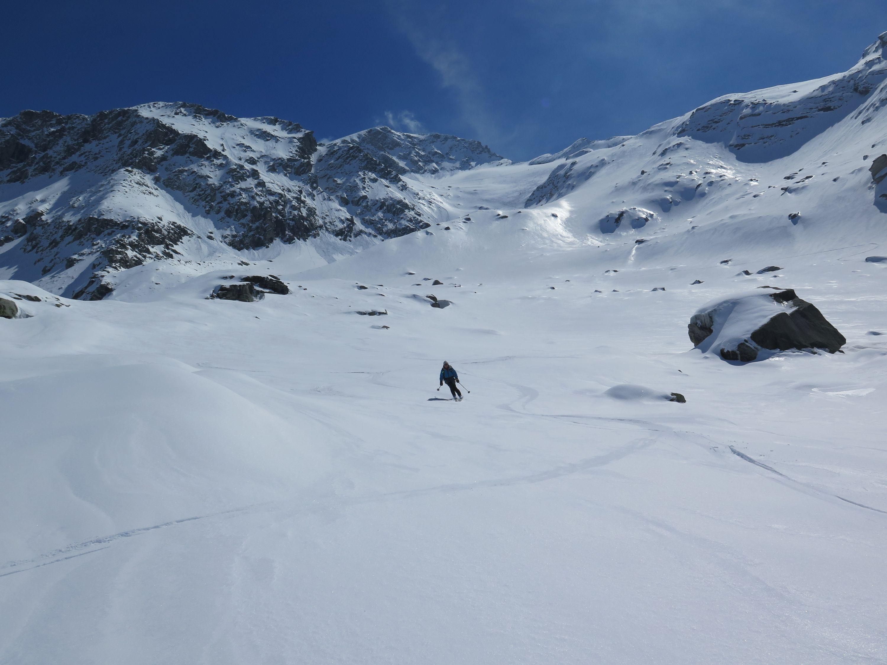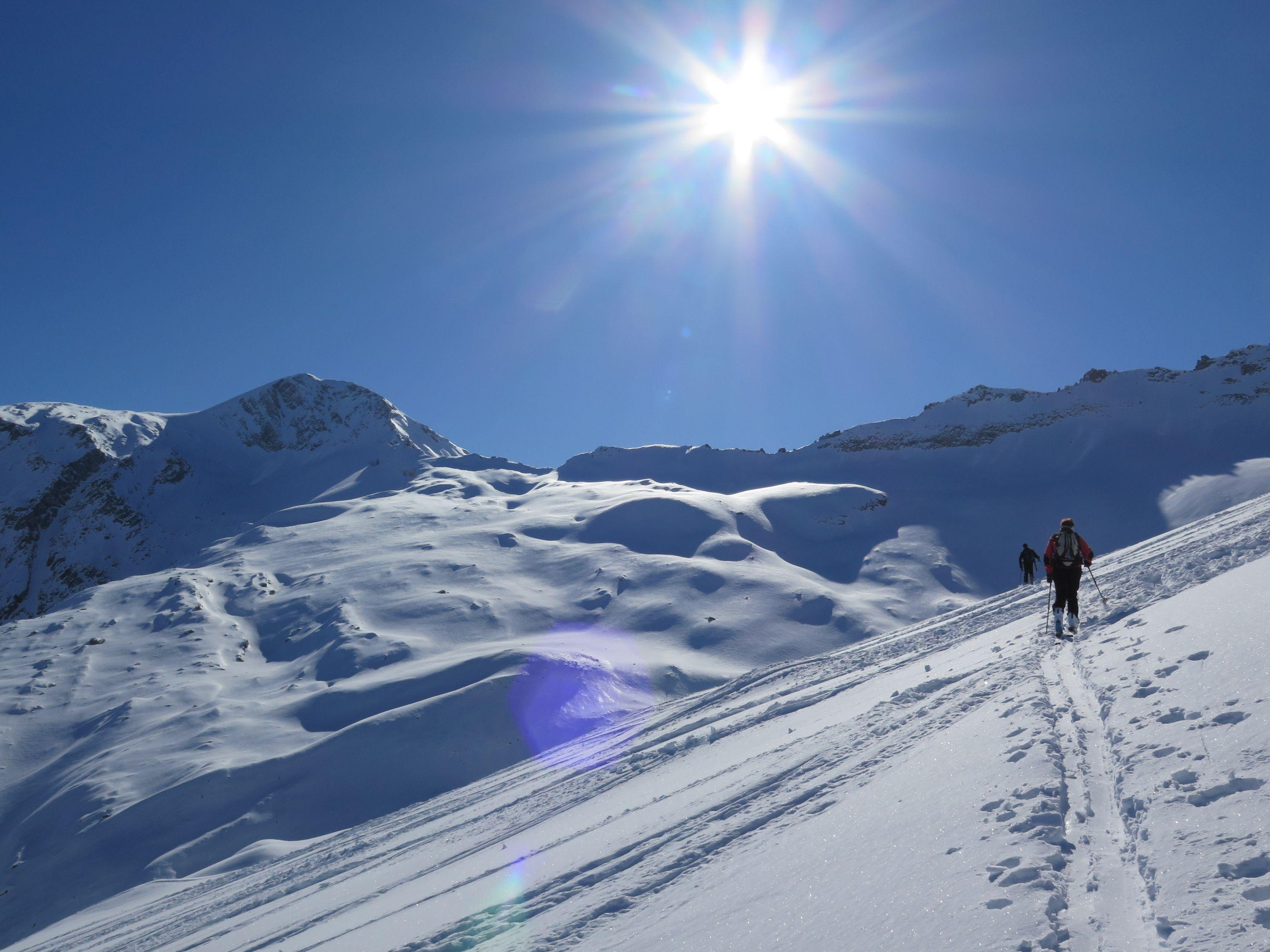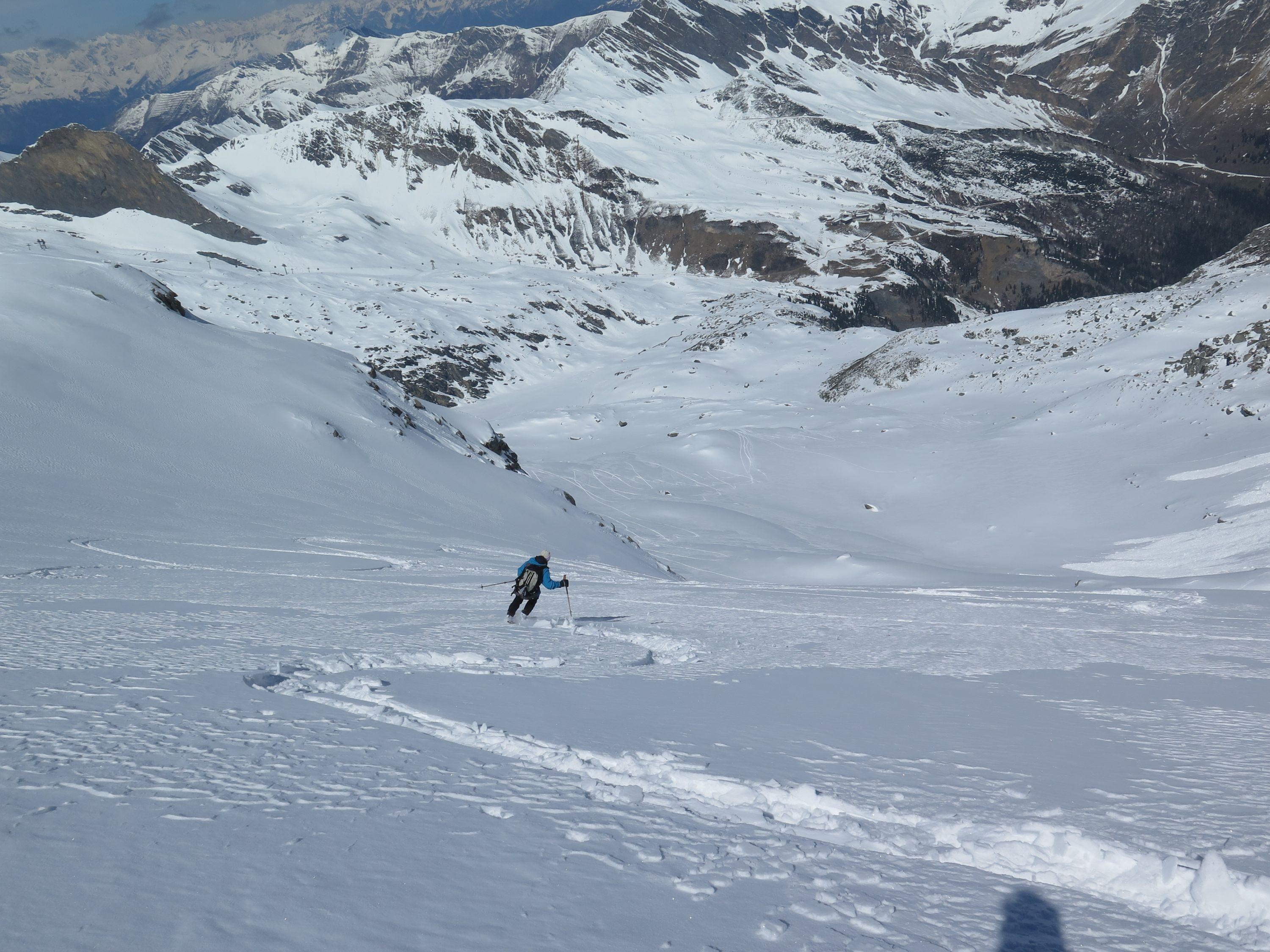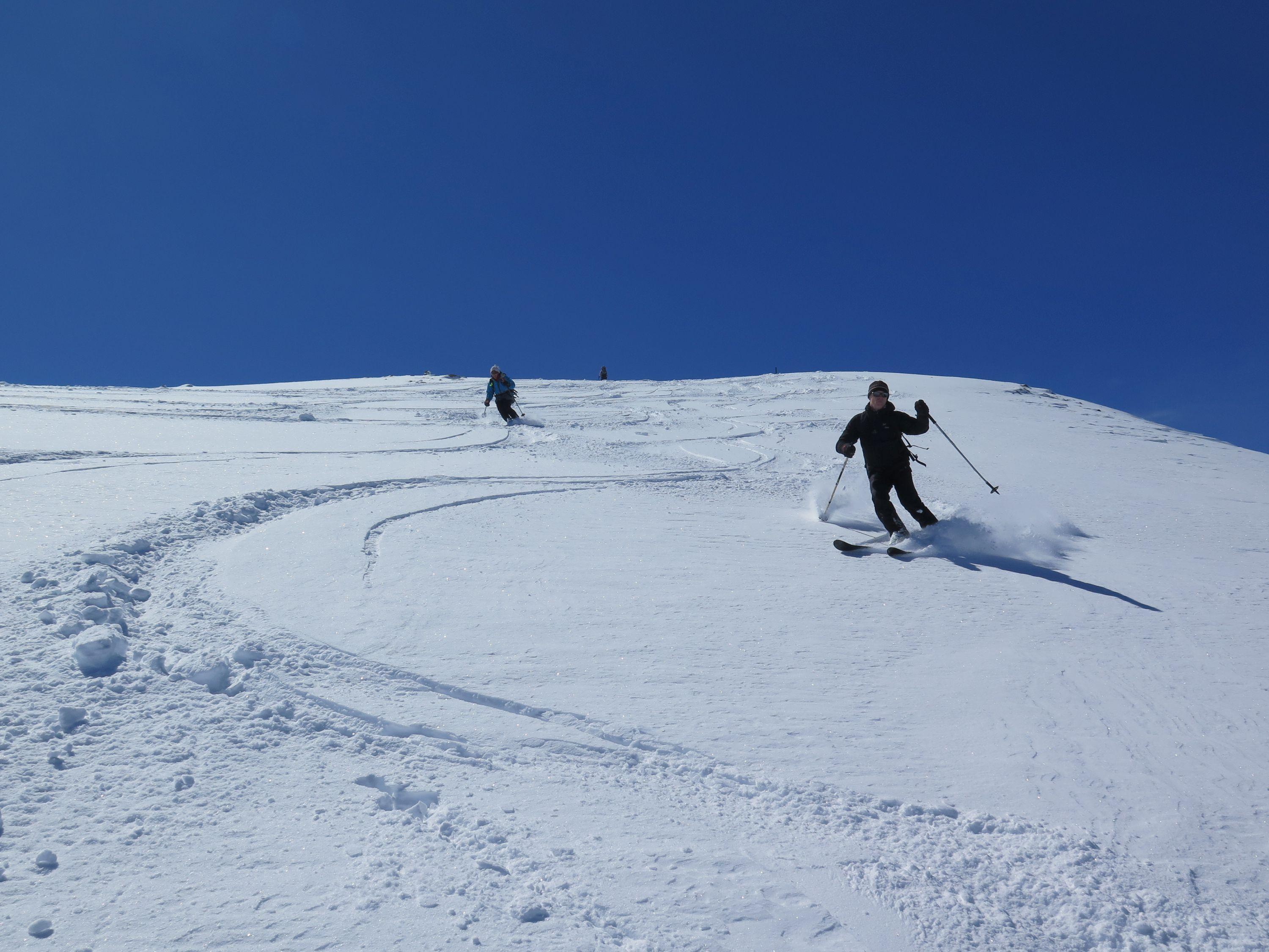 Durch die leichte Erreichbarkeit mit den Hintertuxer Getscherbahnen (Bergfahrt 18,50 Euro) sehr beliebter Skidreitausender.Nach dem Skizikus gehts über sehr schönes Skigelände und langen Querungen zum Gipfel, bei dem schönen Wetter heute eine überwältigende Aussicht. Wetter : sonnig ,mäßiger Wind, gegenüber im Hauptkamm Richtung Süden schon am Vormittag Wolkenstau. Der Schnee war heute ein Wunschkonzert von Pulver über Bruchharsch,Firn von allem etwas. Abfahrt ins Tal nur mehr auf Piste bei im letzten Teil sehr dünner Schneedecke möglich.Geringe Neuschneemenge, laut Lawinenwarndienst Tirol derzeit Stufe 2.