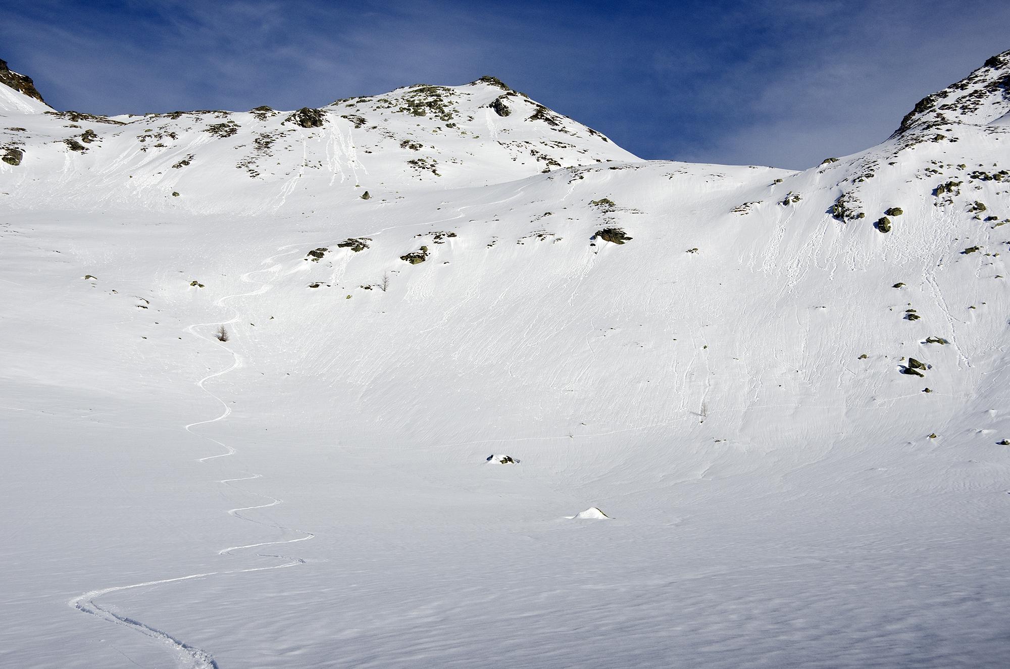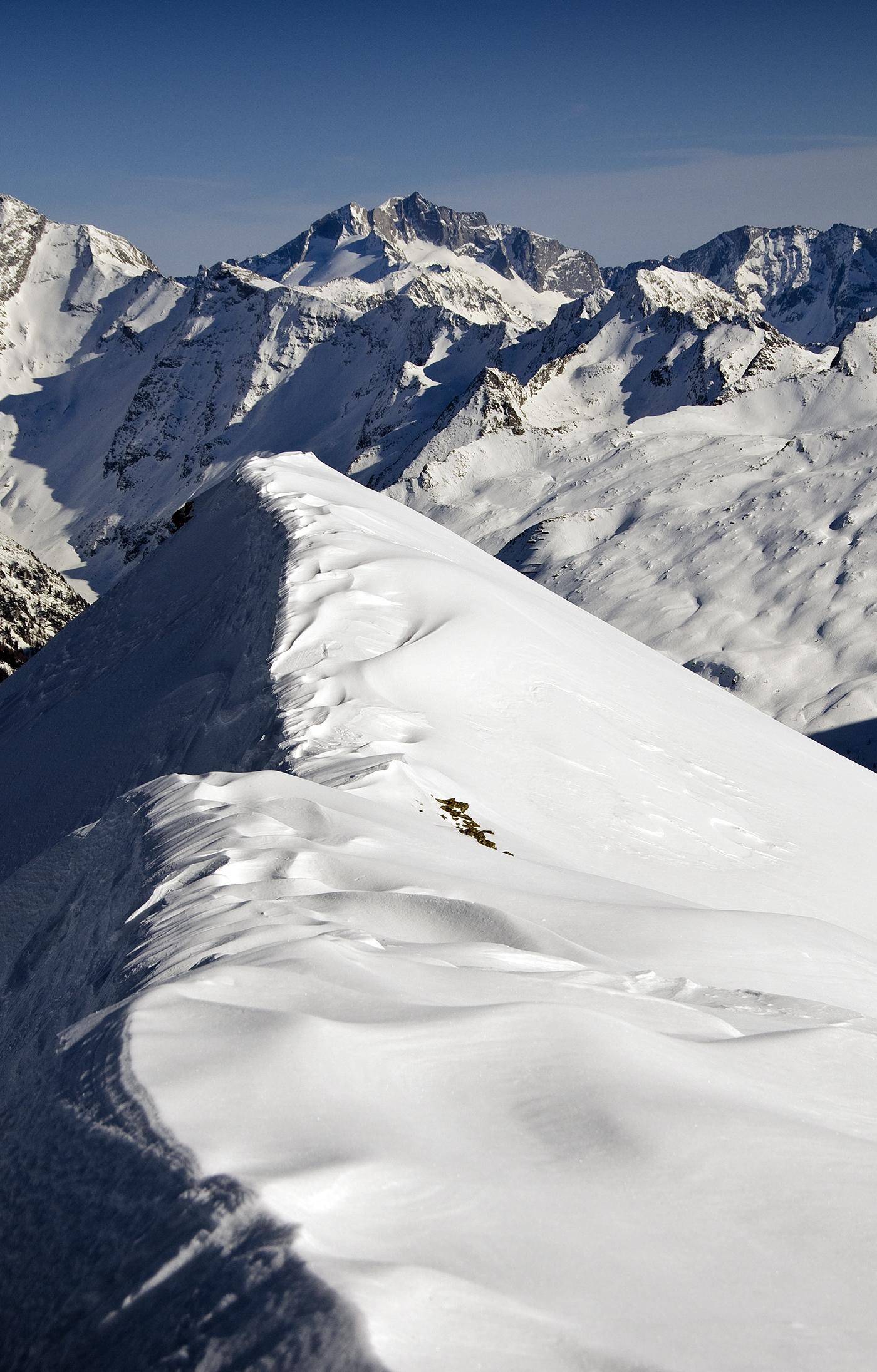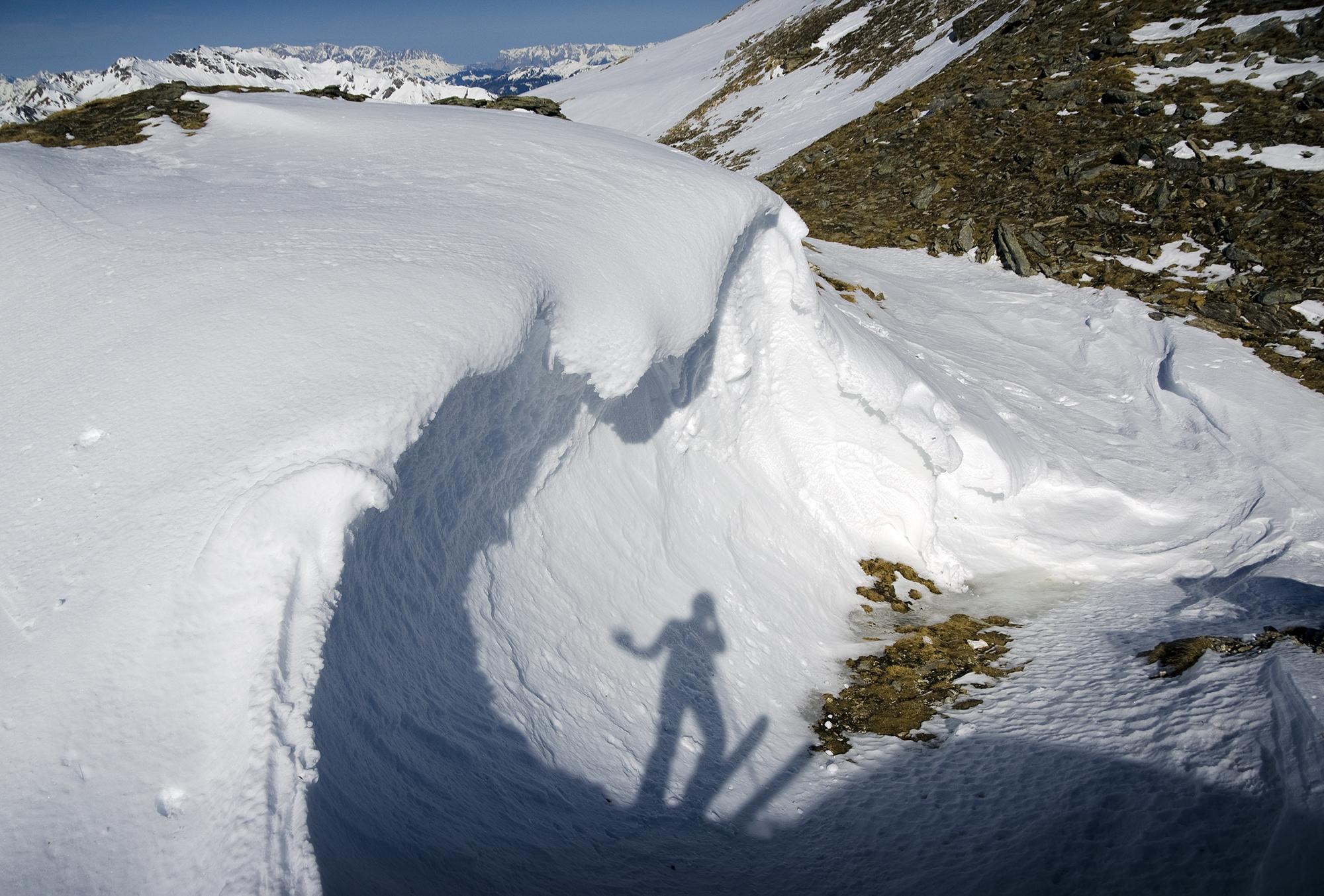 Von Bodenhaus aus dem Rauriser Tal. Regen, Wind und Sonne haben den Schnee umgewandelt. Die Pulverschneezeiten sind vorbei, es ist Frühling geworden. Wunderbaren Firn und weiter unten Sulzschnee haben die Westhänge zu bieten. Nur der kurze Nordhang unter dem Gipfelgrat weist eine harte Regenharschdecke auf, in die man nur manchmal einbricht. Die steilen besonnten Südhänge unter der Baukarlscharte habe ich aus Sicherheitsgründen nicht berührt: Zwischen Bockhartscharte und Baukarlscharte kann man oben auf der Grathöhe bleiben. Dabei geht man zunächst etwas westseitig des Grats zu Fuß steil zum Kamm hinauf und muss im Auf und Ab hinüberqueren. Kostet etwas mehr Zeit, ist aber dafür sicher.