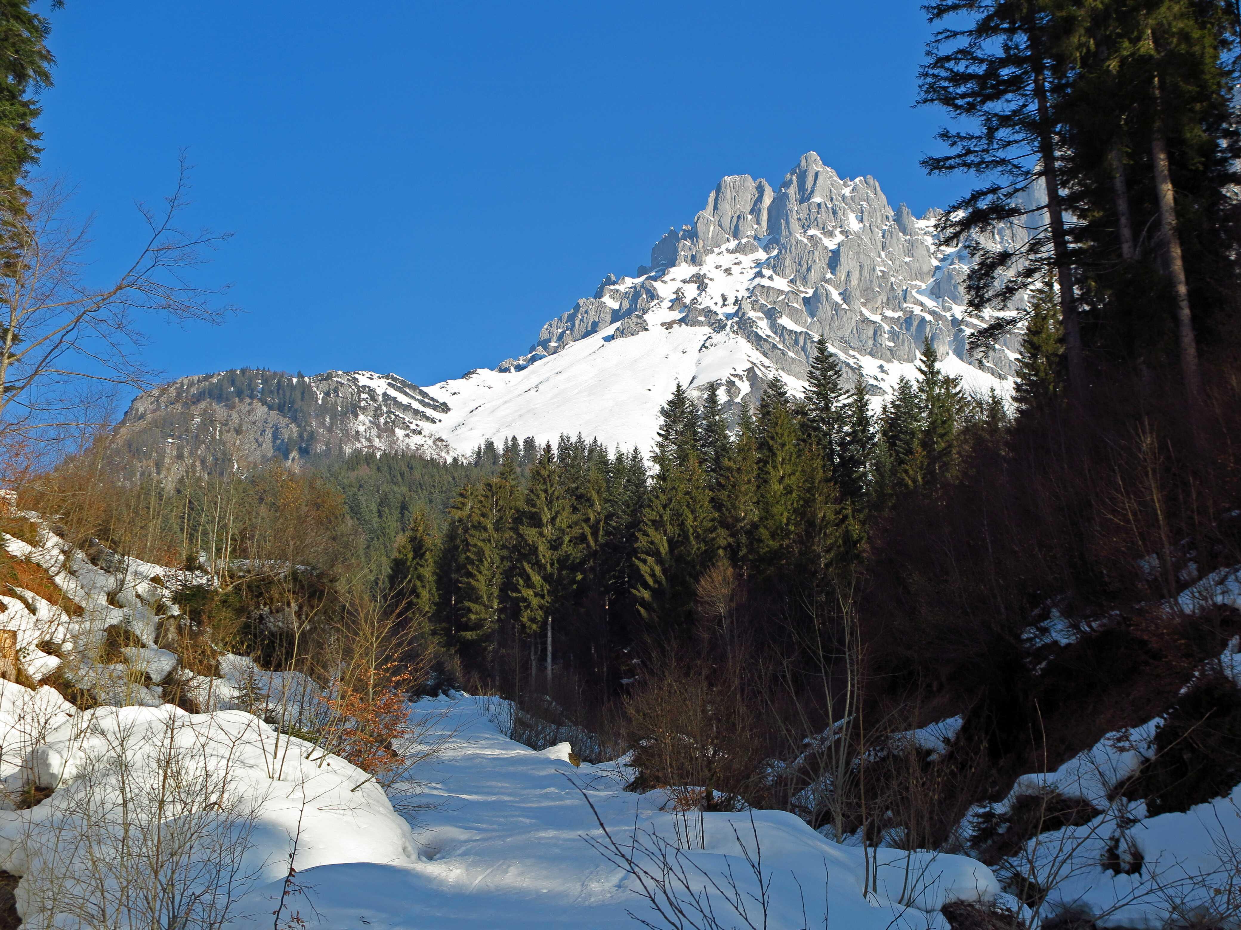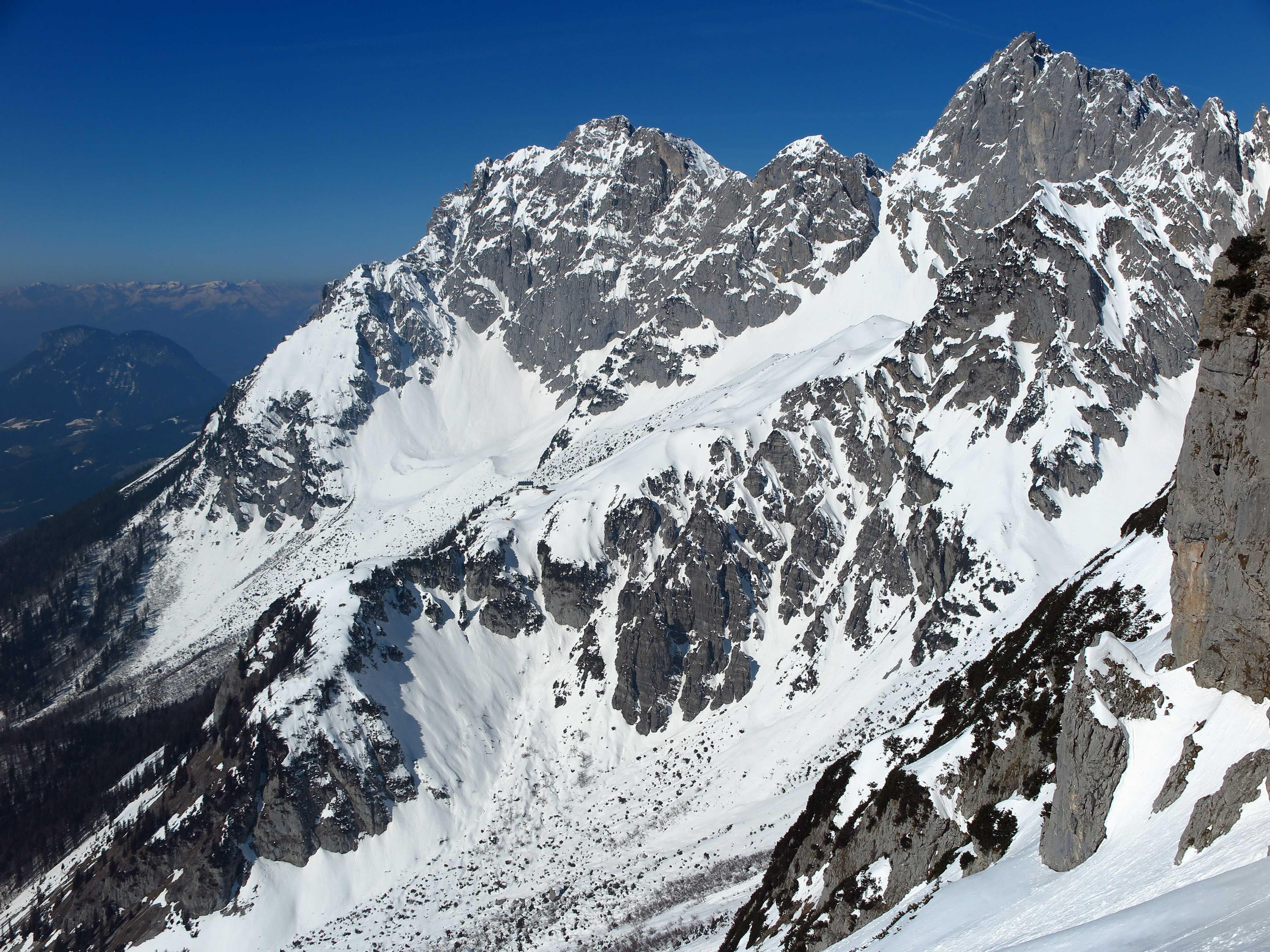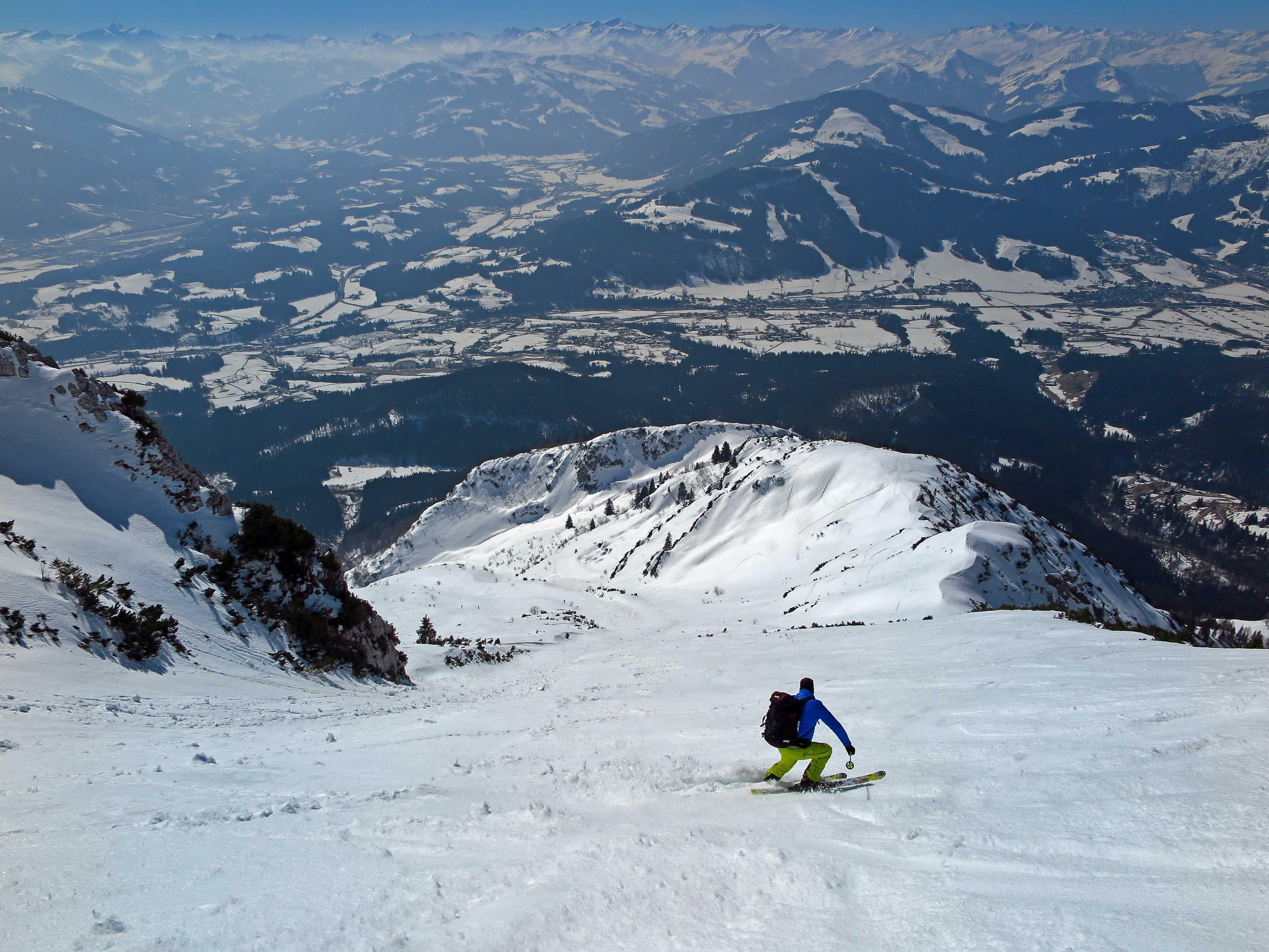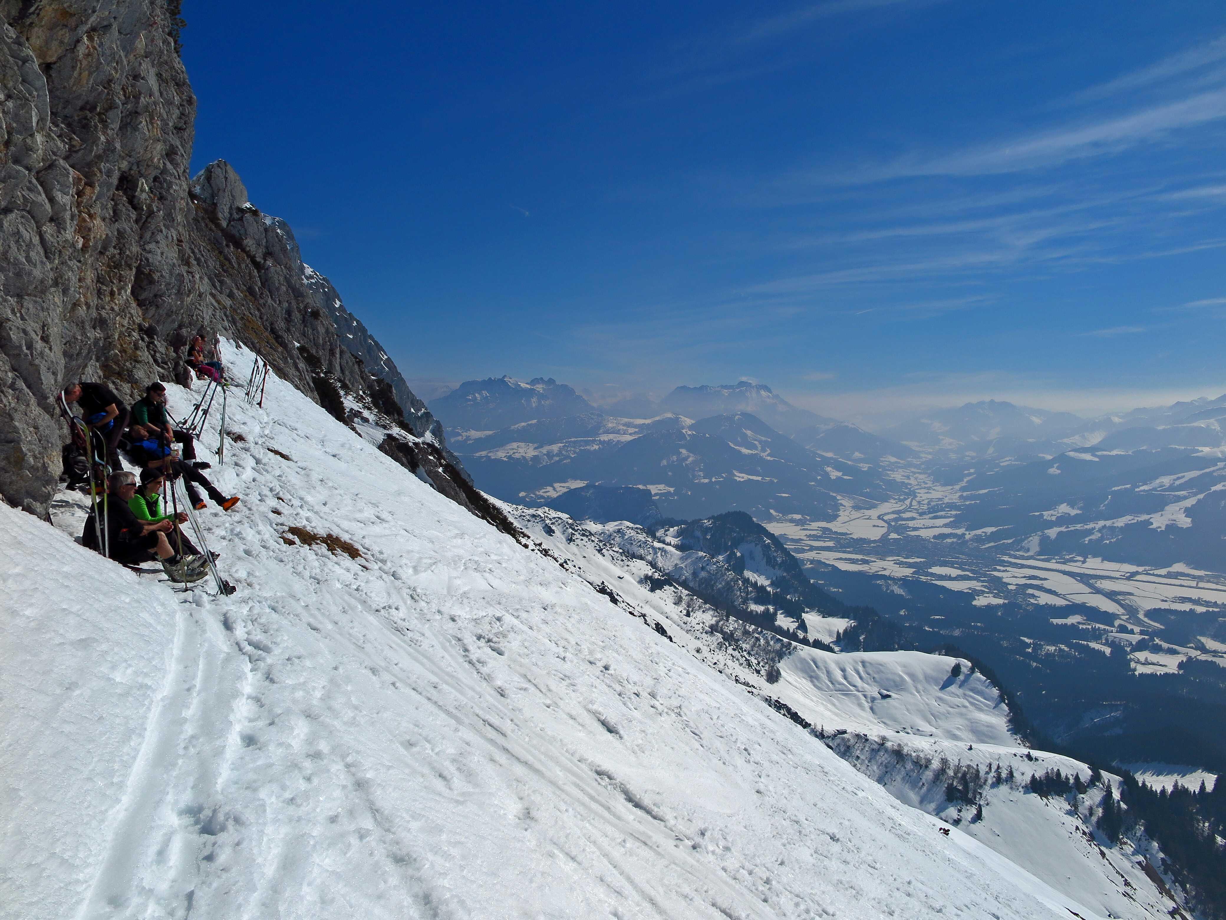 Schneelage: Auf dem Fahrweg ca. 10 Min. bis zur 2. Brücke über den Sinnersbach getragen (Straße gräumt). Im Sinnersbachgraben vor Erreichen der Forstraße nochmal ein paar Meter aper. Der direkte Walddurchstieg oberhalb der Forststraße hat gerade noch ausreichend Schnee, besser wäre evtl. der Weg nahe dem Rehplaikgraben. Oberhalb des Waldes genug Schnee. Abfahrt um 10:30 bei sehr gutem Firn, rein ostseitige Hänge schon fast etwas zu weich, also nicht zu spät abfahren.