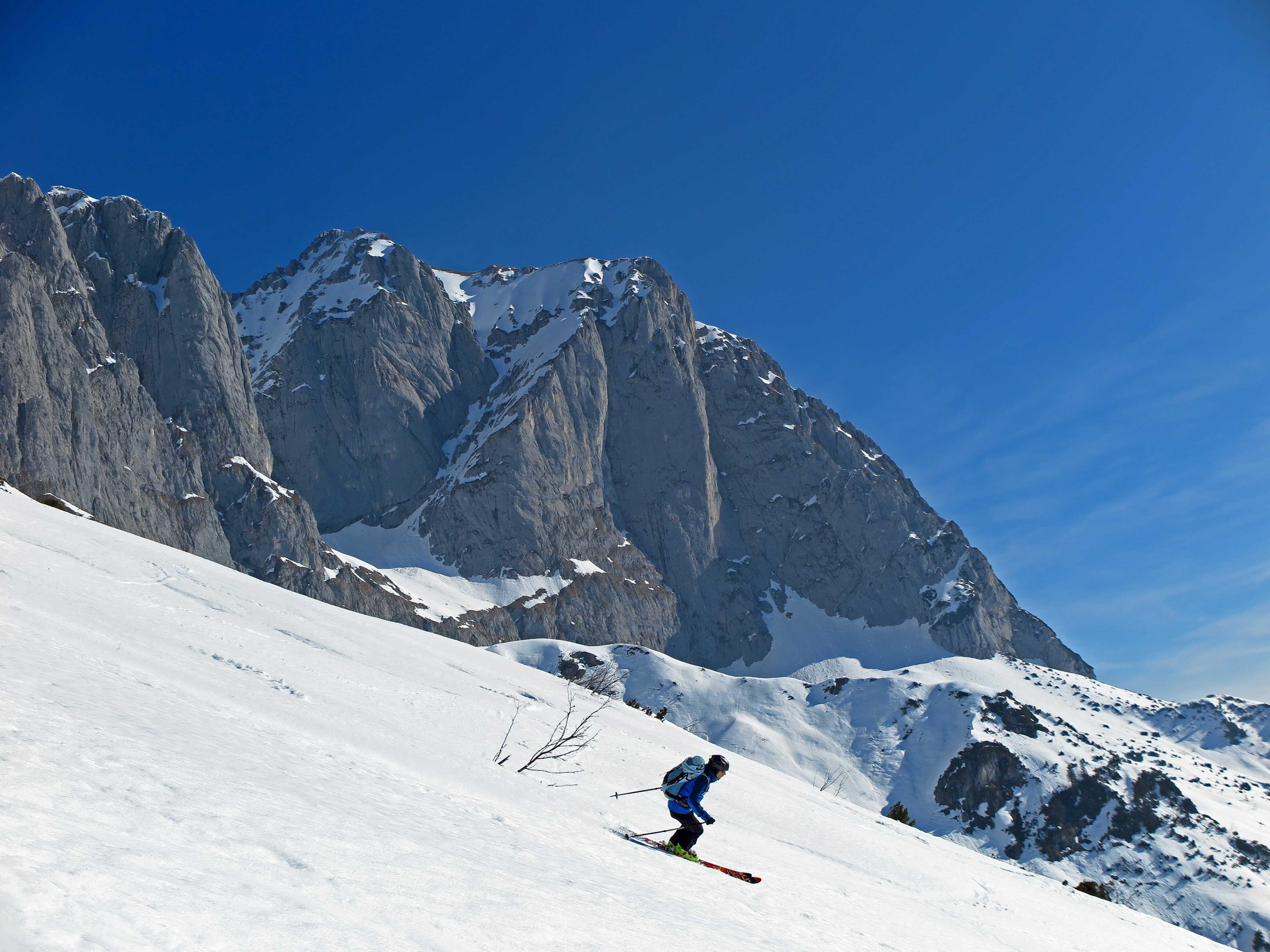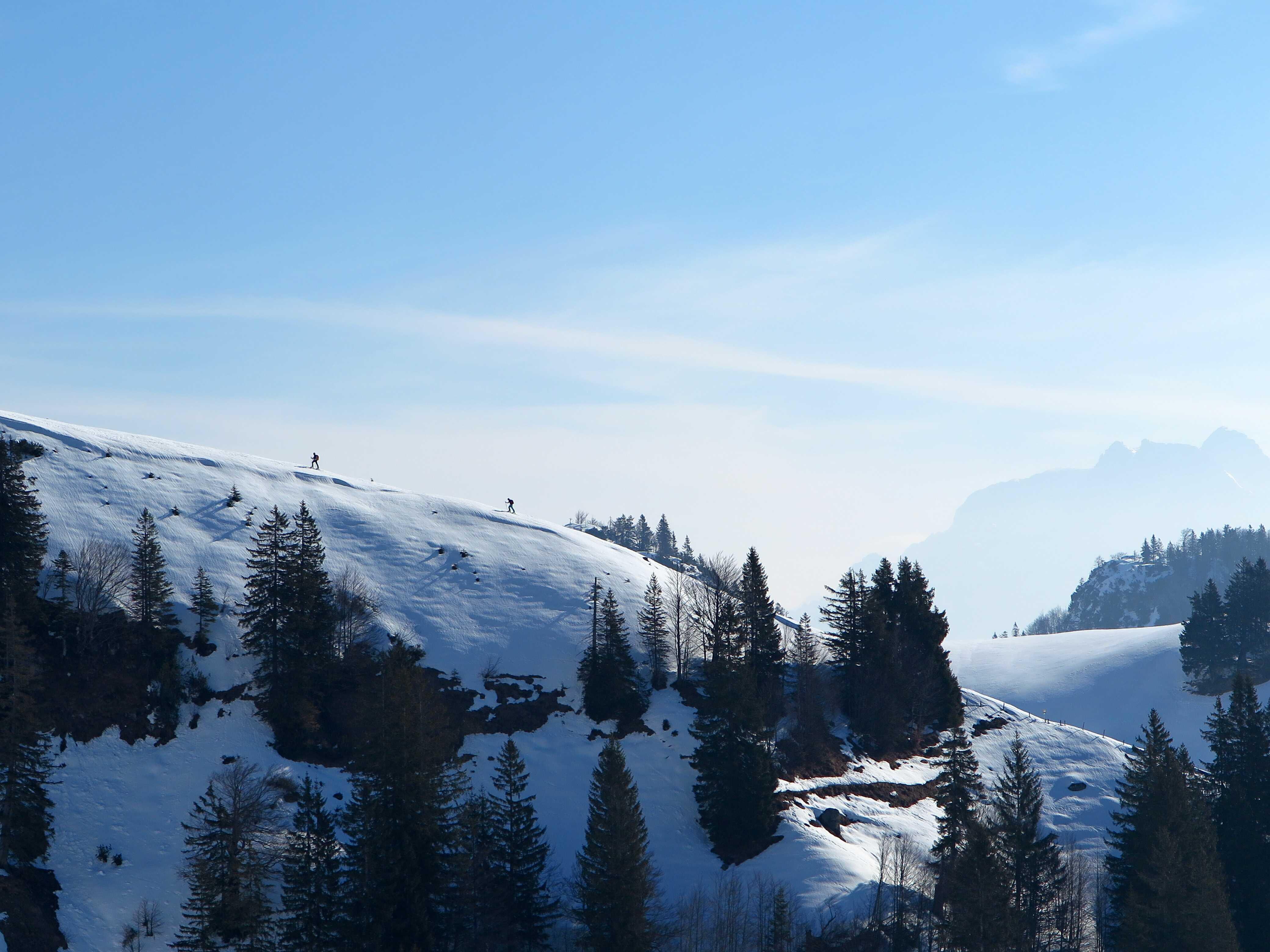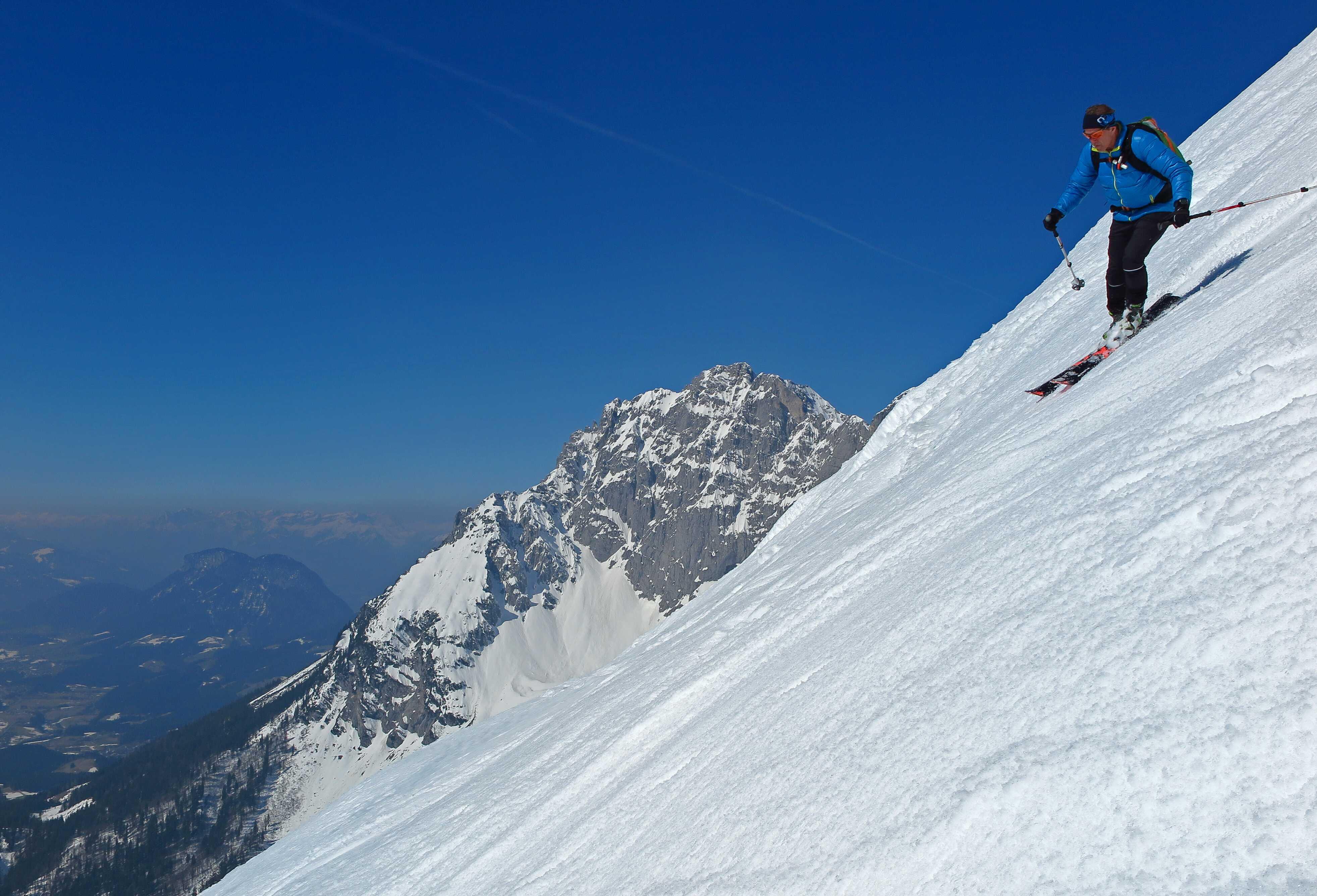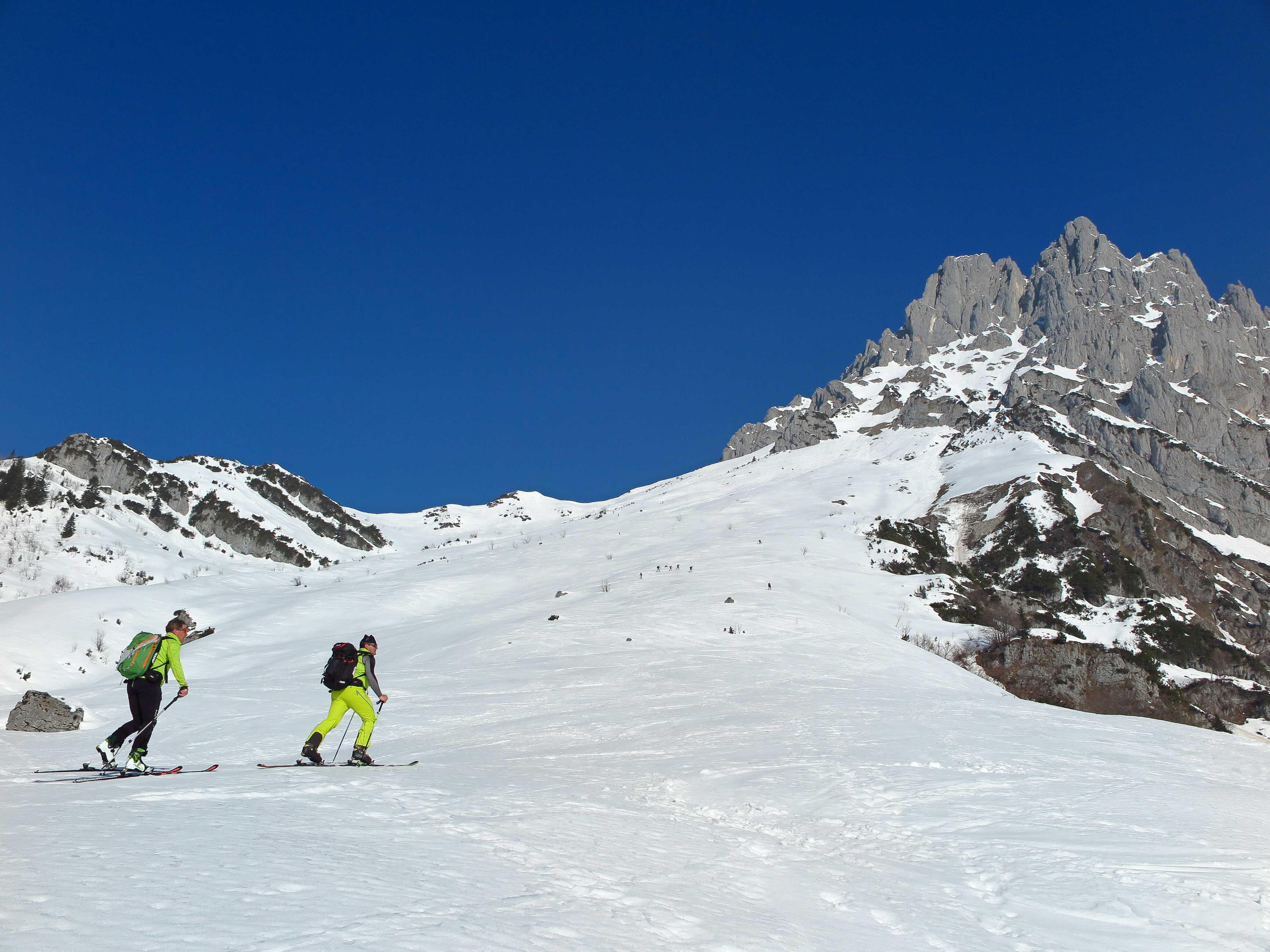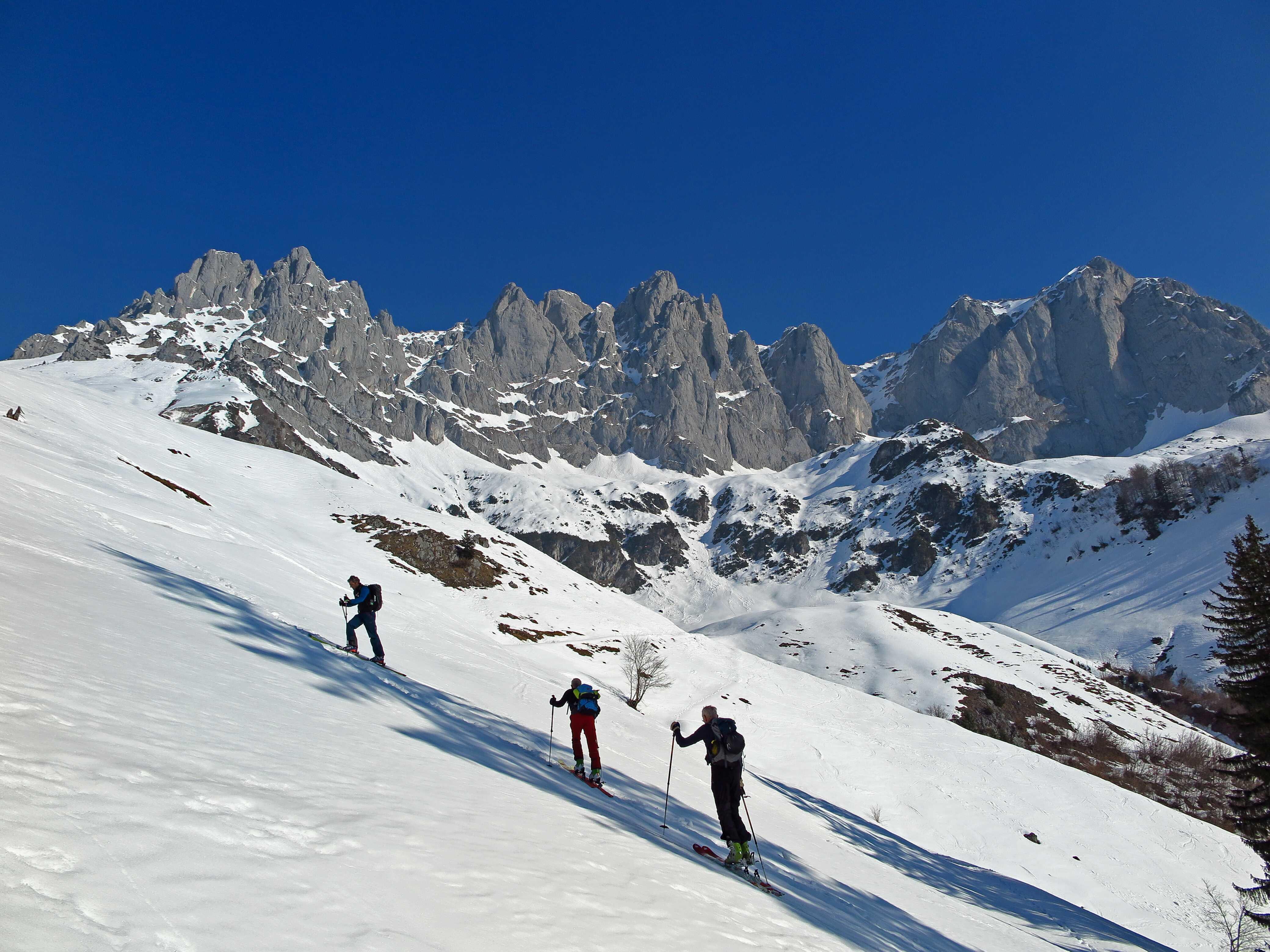 Schneelage: Auf dem Fahrweg ca. 10 Min. bis zur 2. Brücke über den Sinnersbach getragen (Straße gräumt). Im Sinnersbachgraben vor Erreichen der Forstraße nochmal ein paar Meter aper. Der direkte Walddurchstieg oberhalb der Forststraße hat gerade noch ausreichend Schnee, besser wäre evtl. der Weg nahe dem Rehplaikgraben. Oberhalb des Waldes genug Schnee. Abfahrt um 10:30 bei sehr gutem Firn, rein ostseitige Hänge schon fast etwas zu weich, also nicht zu spät abfahren.