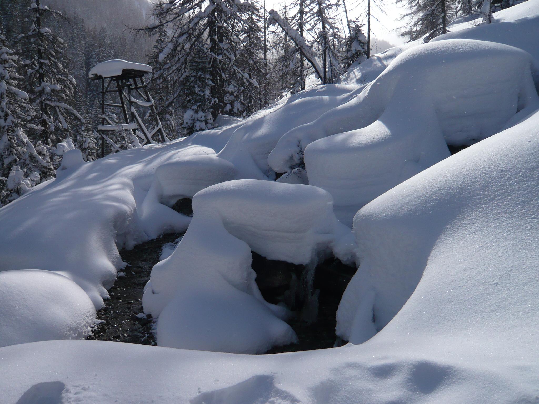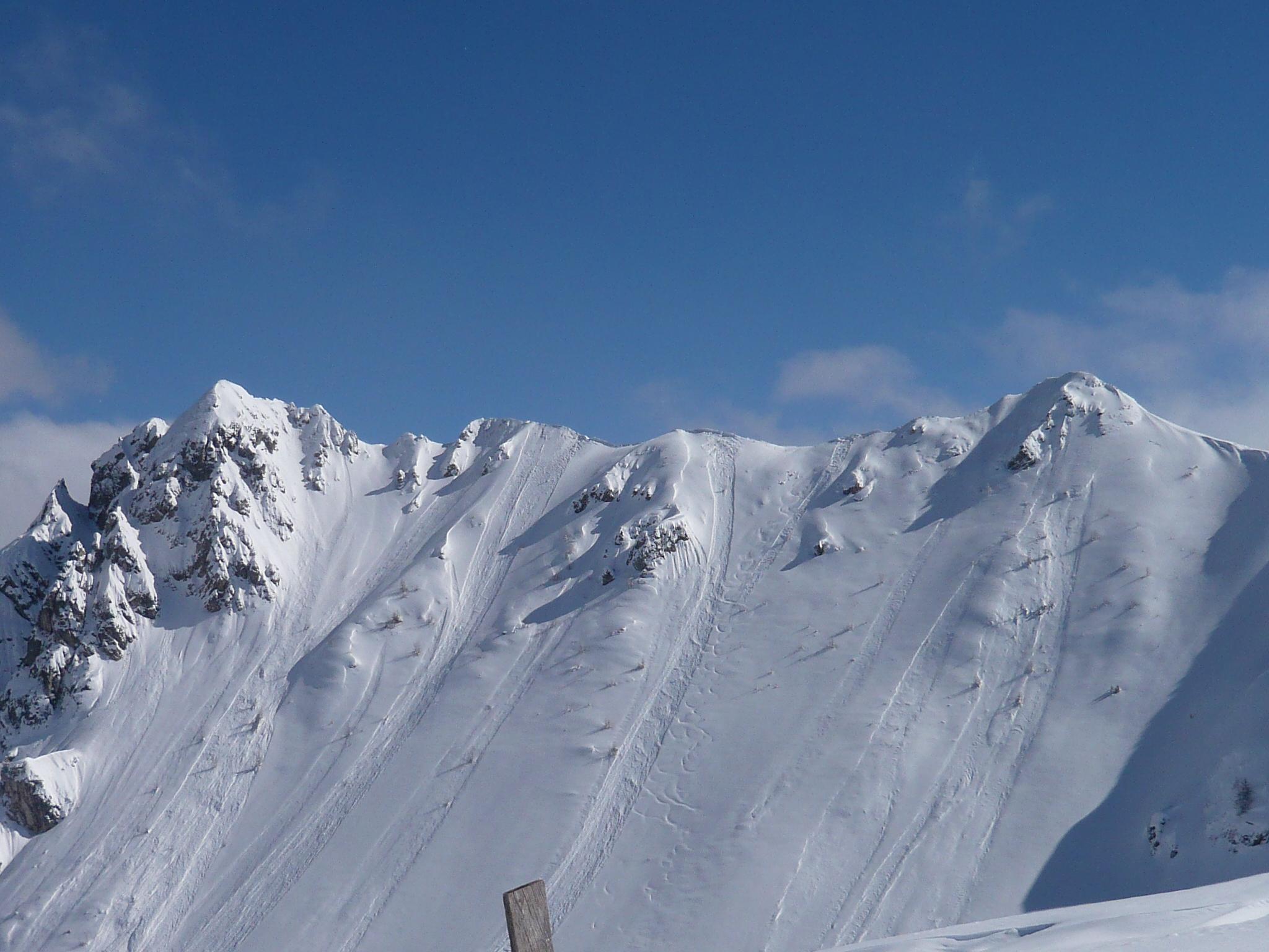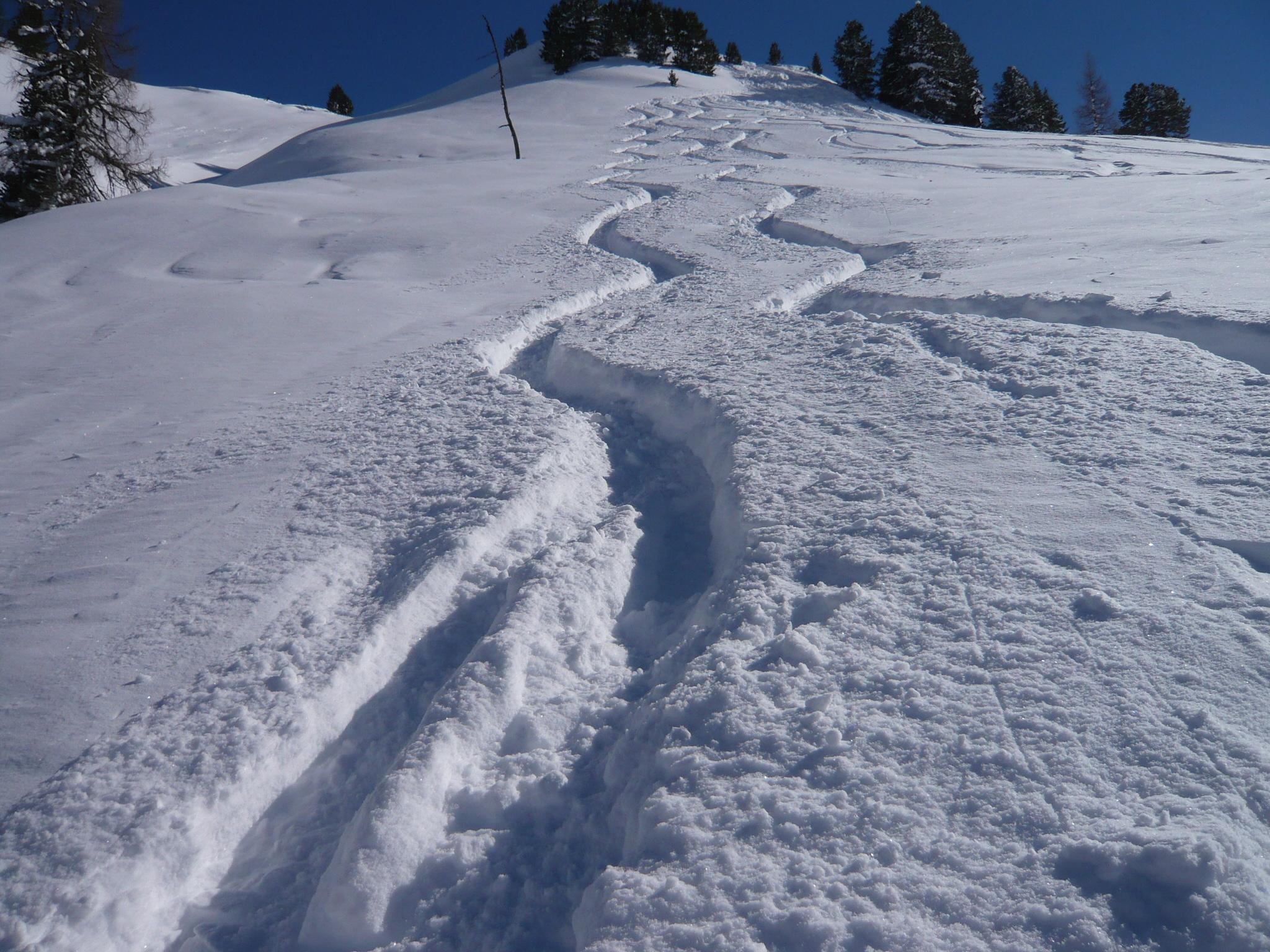 Fazit: Die Wetterprognose hat leider gestimmt, der Südföhn kannte kein Erbarmen mit uns und auch nicht mit der Schneedecke. Bei unerwarteter Neuschneemenge (etwa 40 cm) hat er sich reichlich ausgetobt und eine Dünenlandschaft erzeugt, die zwar schön zum Anschauen, aber suboptimal zum Skifahren war. Die sichere, flache Routenwahl war dann bei der ersten Abfahrt vom Filzmooshörndl zur Filzmoosalm entweder eine stockende Geradeausfahrt in Rückenlage oder eine Aufstiegsspurfahrt. Die Abfahrt vom Loosbichl gestaltete sich in Folge wie erwartet etwas besser, weil weniger windbearbeitet und etwas steiler. Für die sichere Hangneigung war es an diesem Tag fast zu viel Neuschnee%u2026.. uups..wer hätte gedacht, dass in diesem Winter noch mal die Worte %u201Ezu viel Neuschnee%u201C in Kombination geschrieben werden%u2026.. Summa summarum war es aber ein feiner Tag in den Bergen.