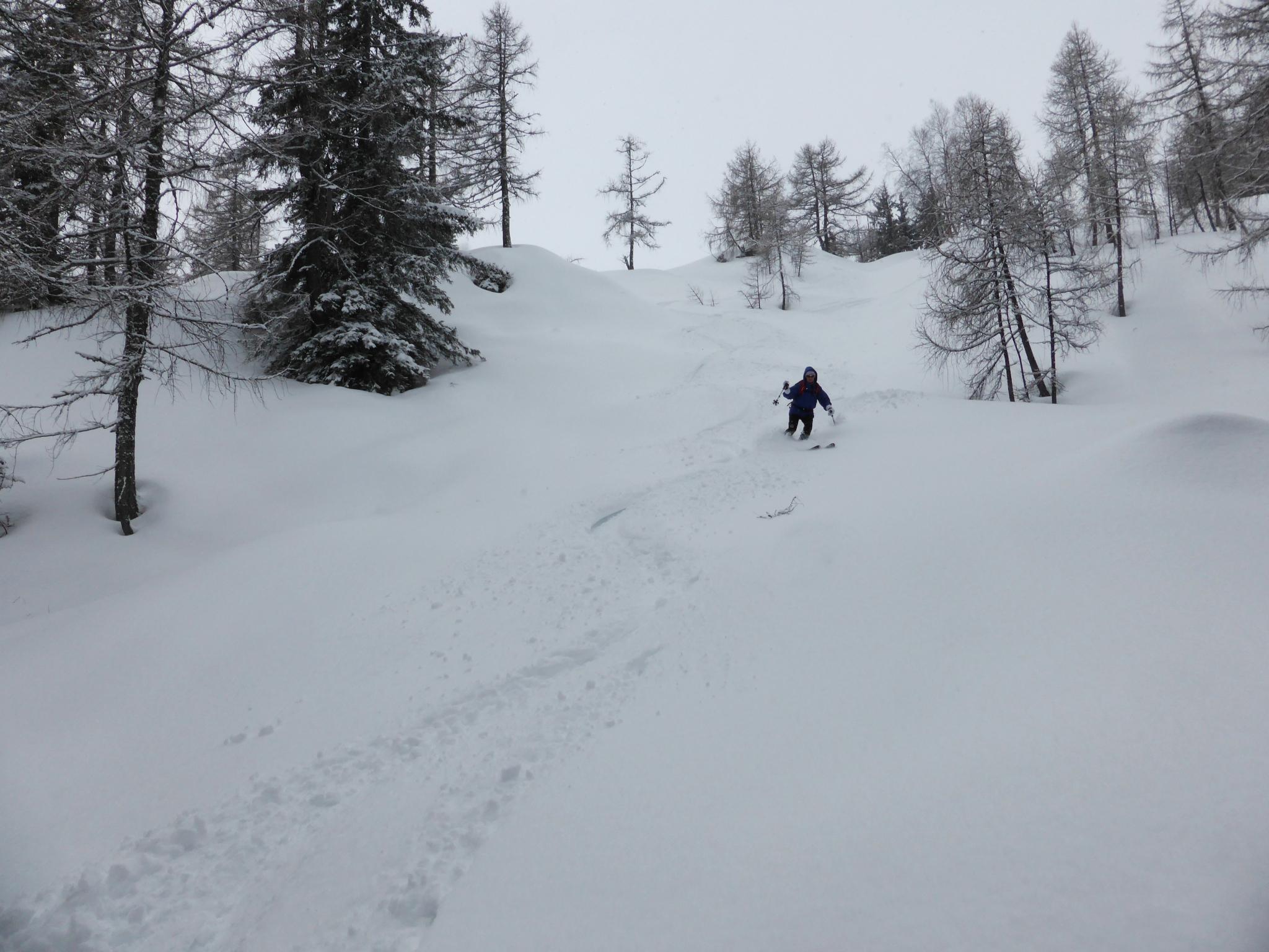 Abfahrt insgesamt recht gut, die Altschneedecke trägt wider Erwarten, ist aber etwas schnittig