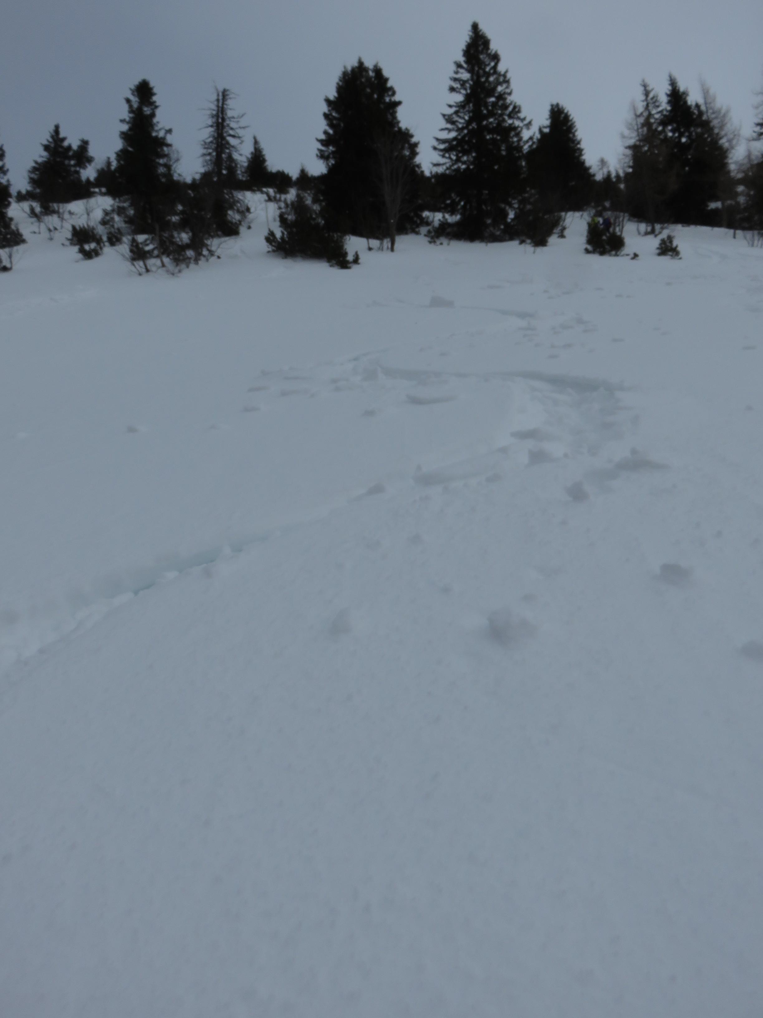 Bei der Abfahrt bis Bergalm durchwegs Harschdeckel 3cm ( Bruchharsch )
