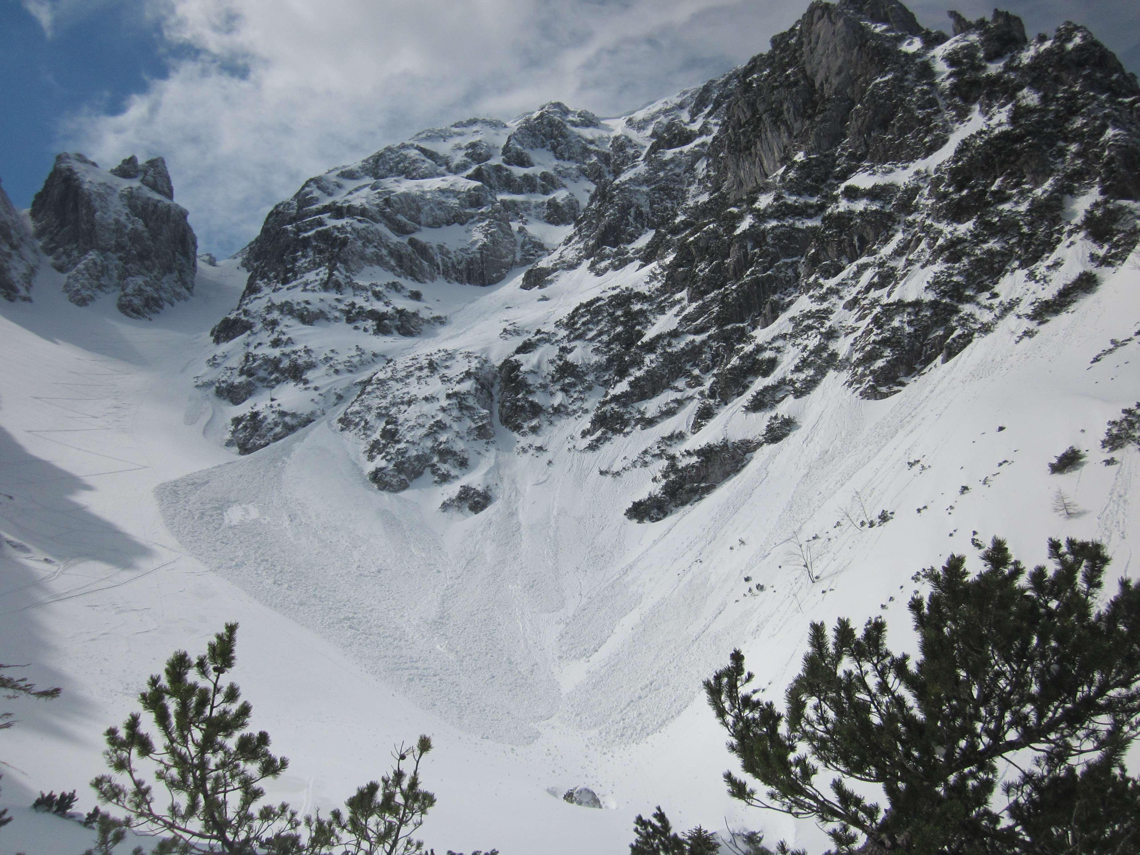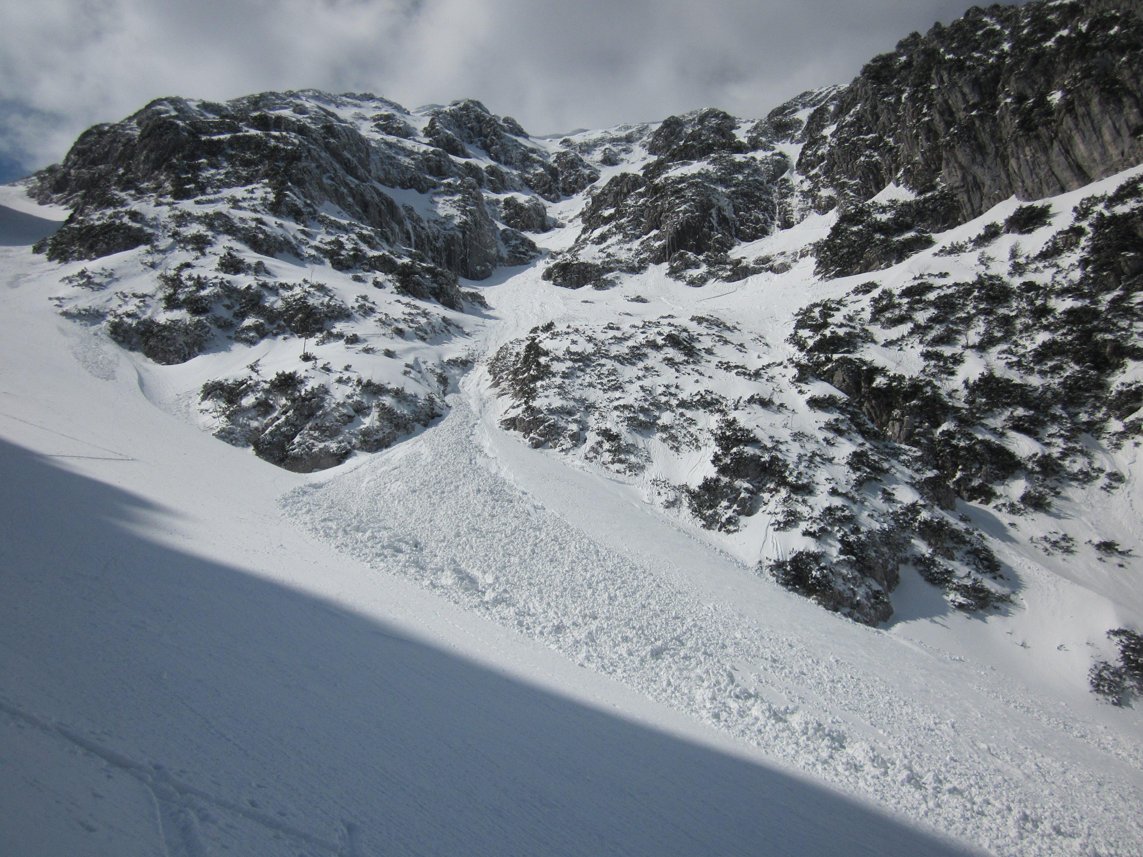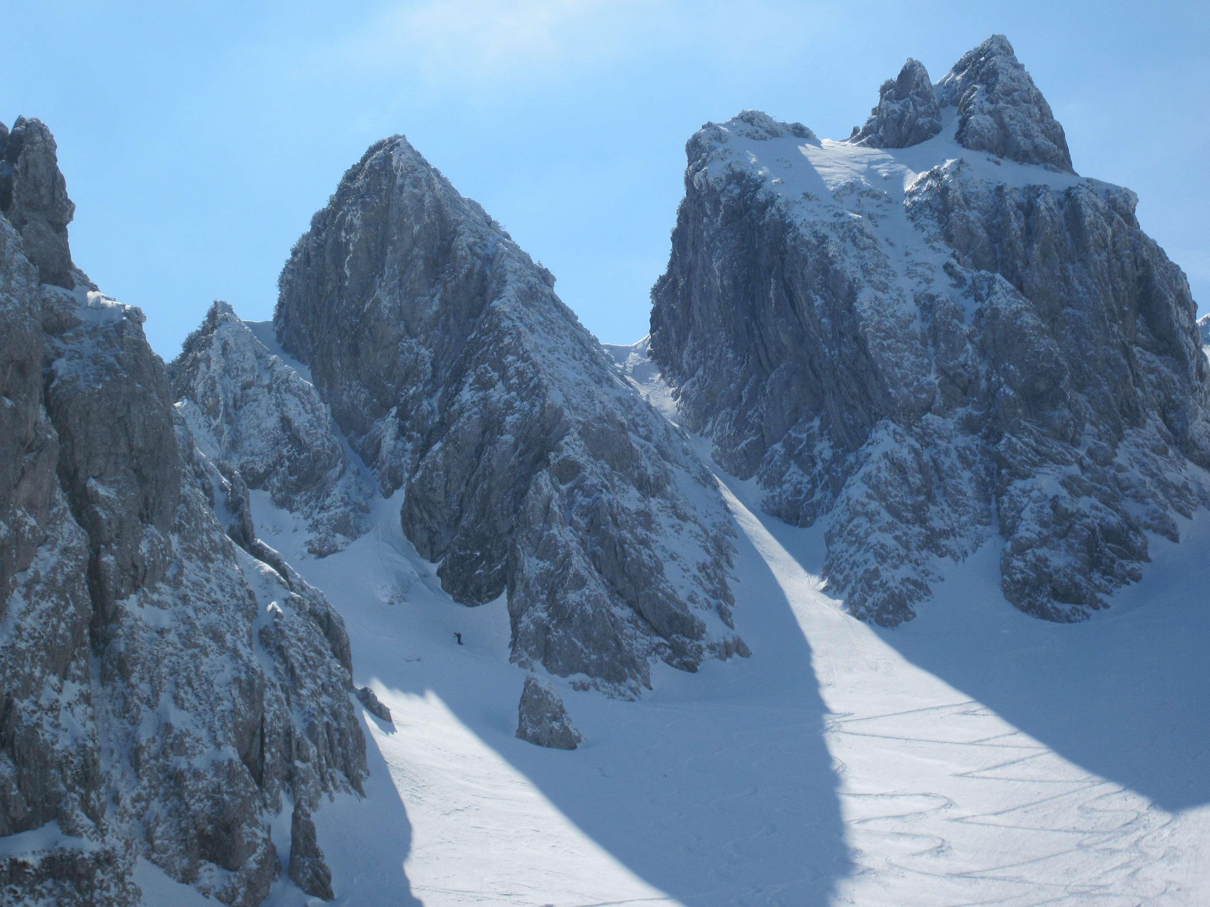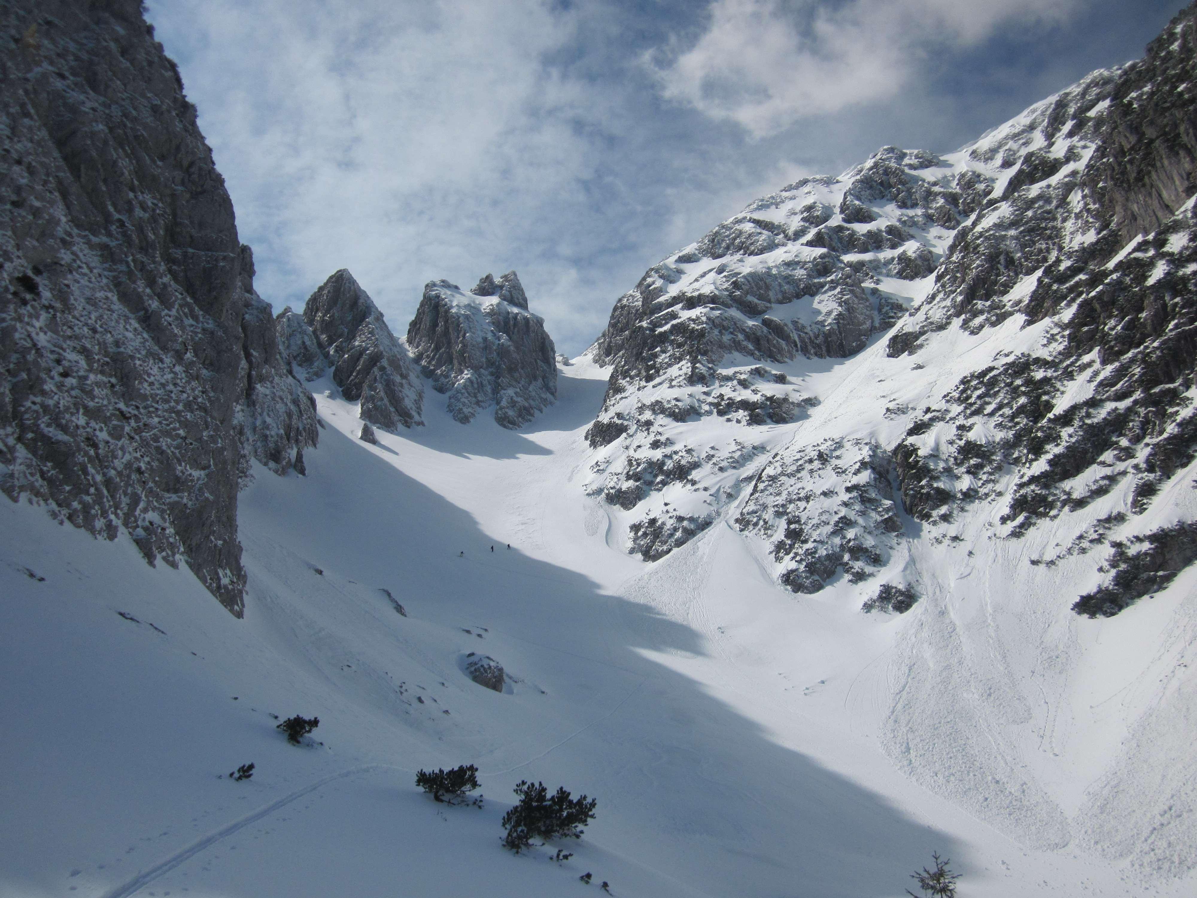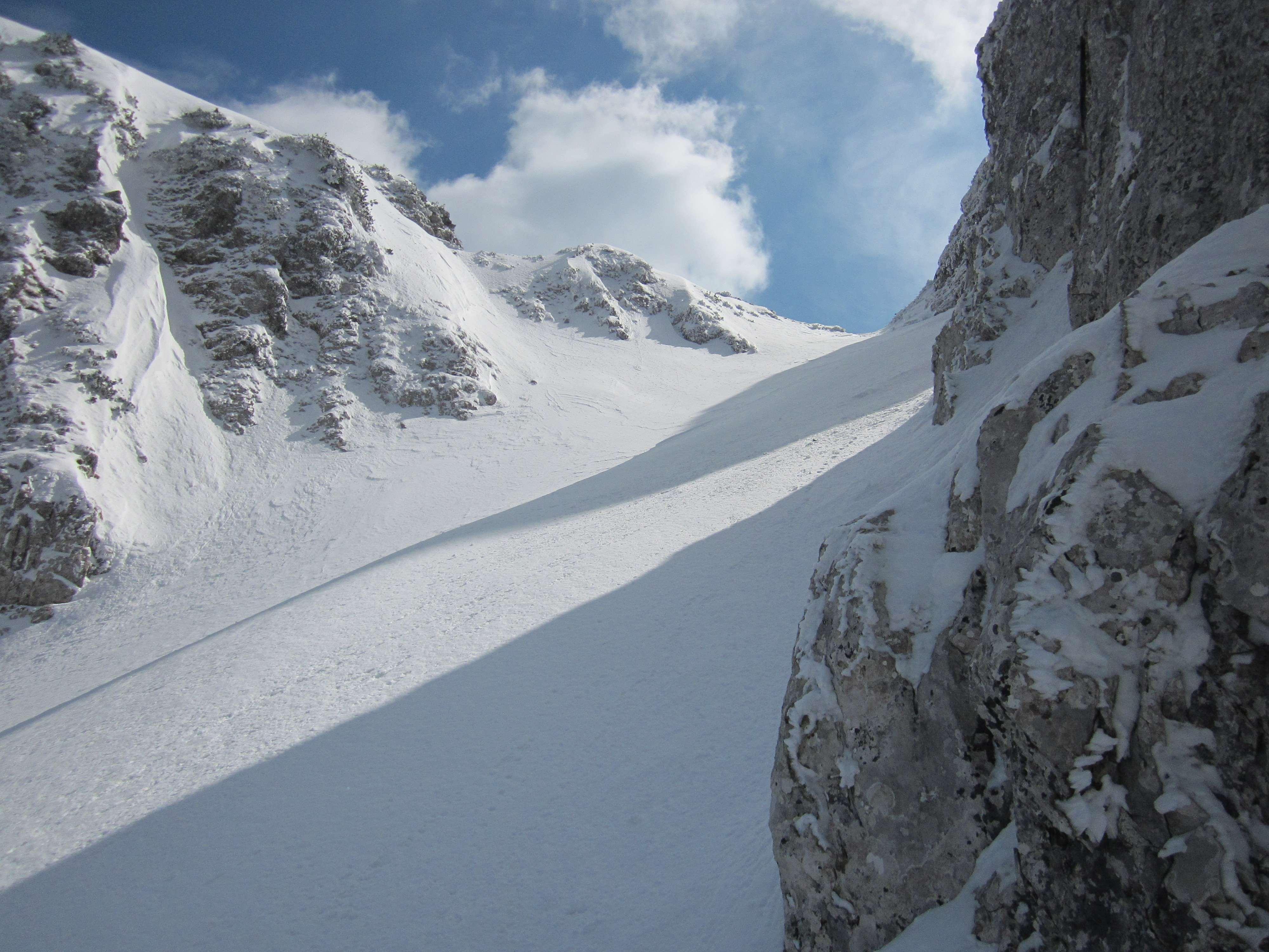 oba ned ganz. In den Ausstiegen der Rinnen viel Schnee mit Windspuren auf eisiger Unterlage.