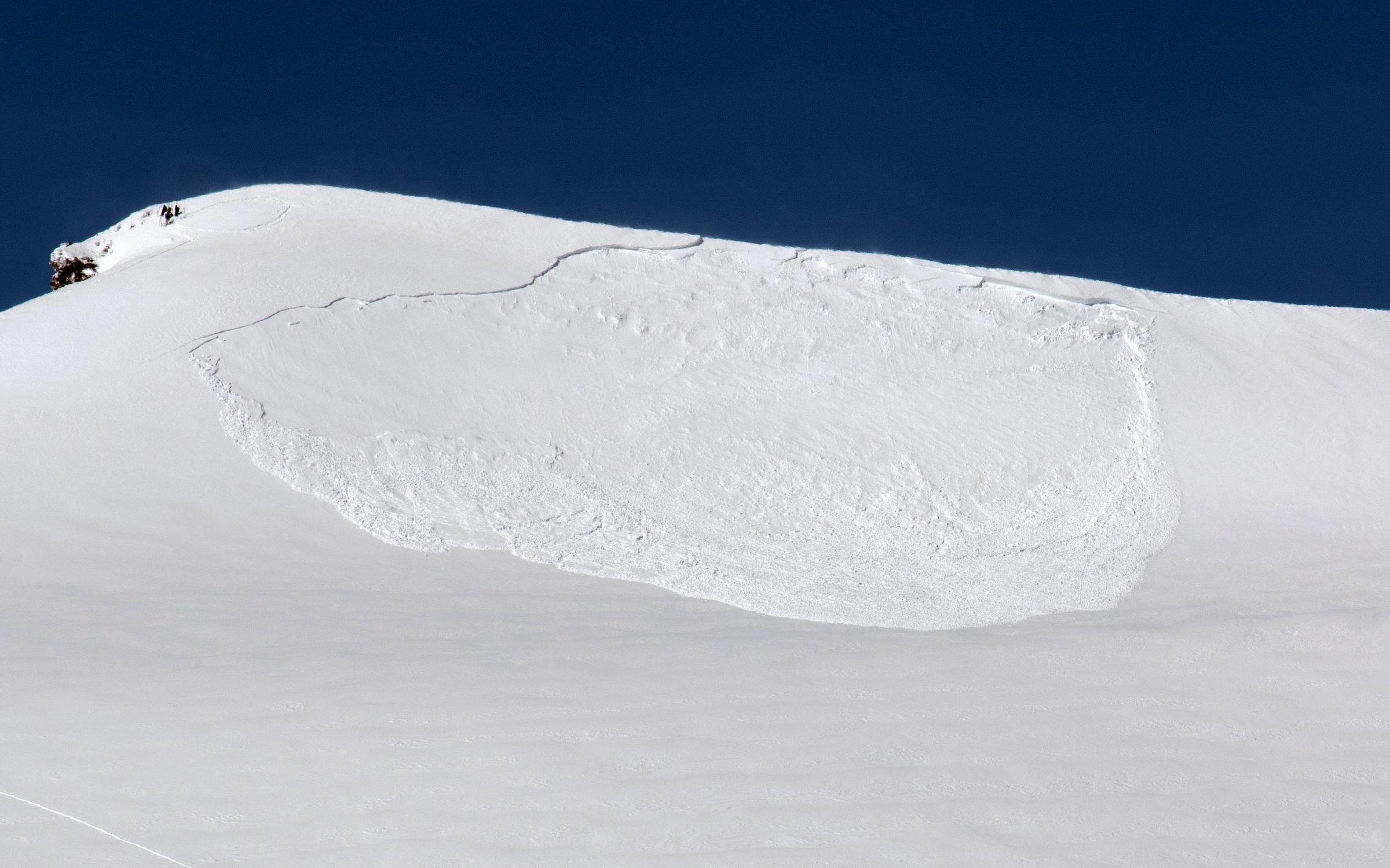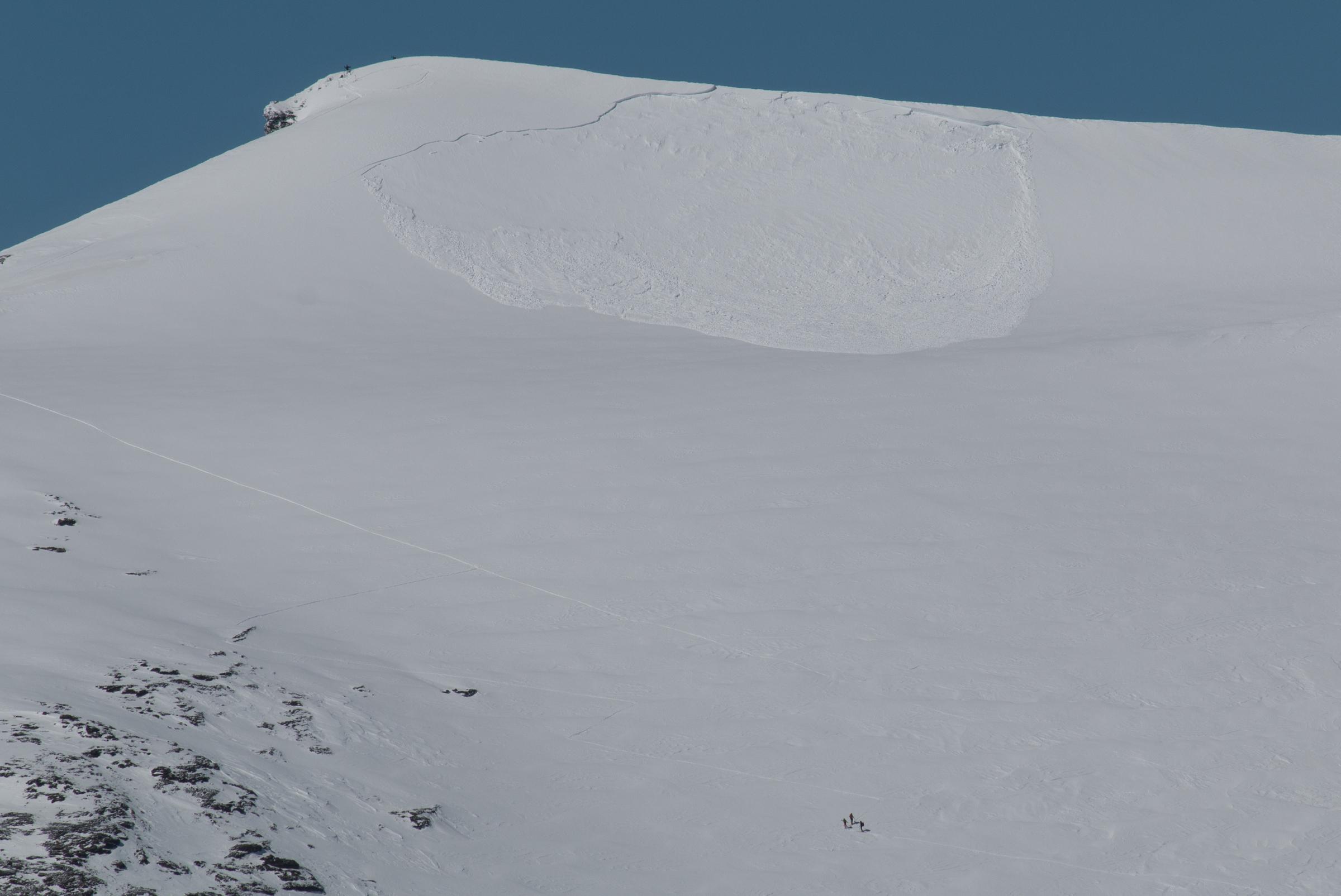 Breite ca 200m Höhe der Abrisskante rechts oben am Grat ca 1m.