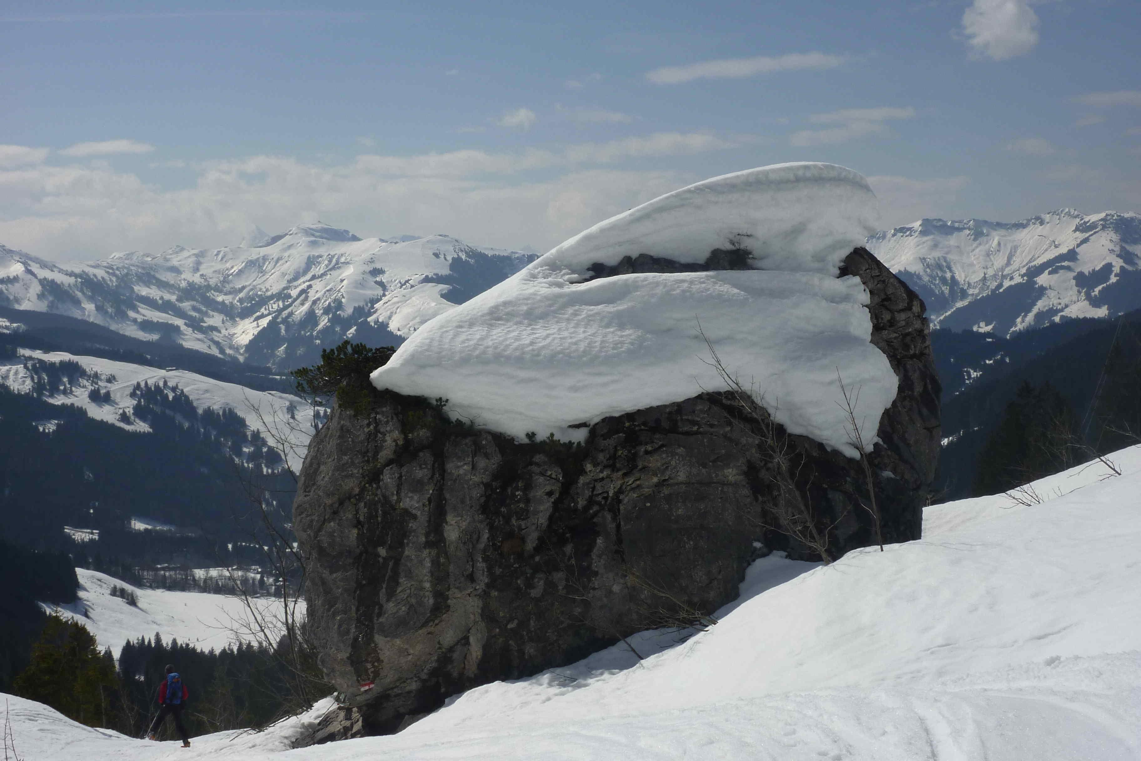 Abfahrt um 11h15: der erste Hang schon etwas tief, aber wenigstens waren die Knollen schon weich, dann allerfeinster Butterfirn (ohne Spuren zu hinterlassen) im gesamten abfahrstrelevanten Teil . Durchgehende Abfahrt bis zum Loipenende in Hinterthal.