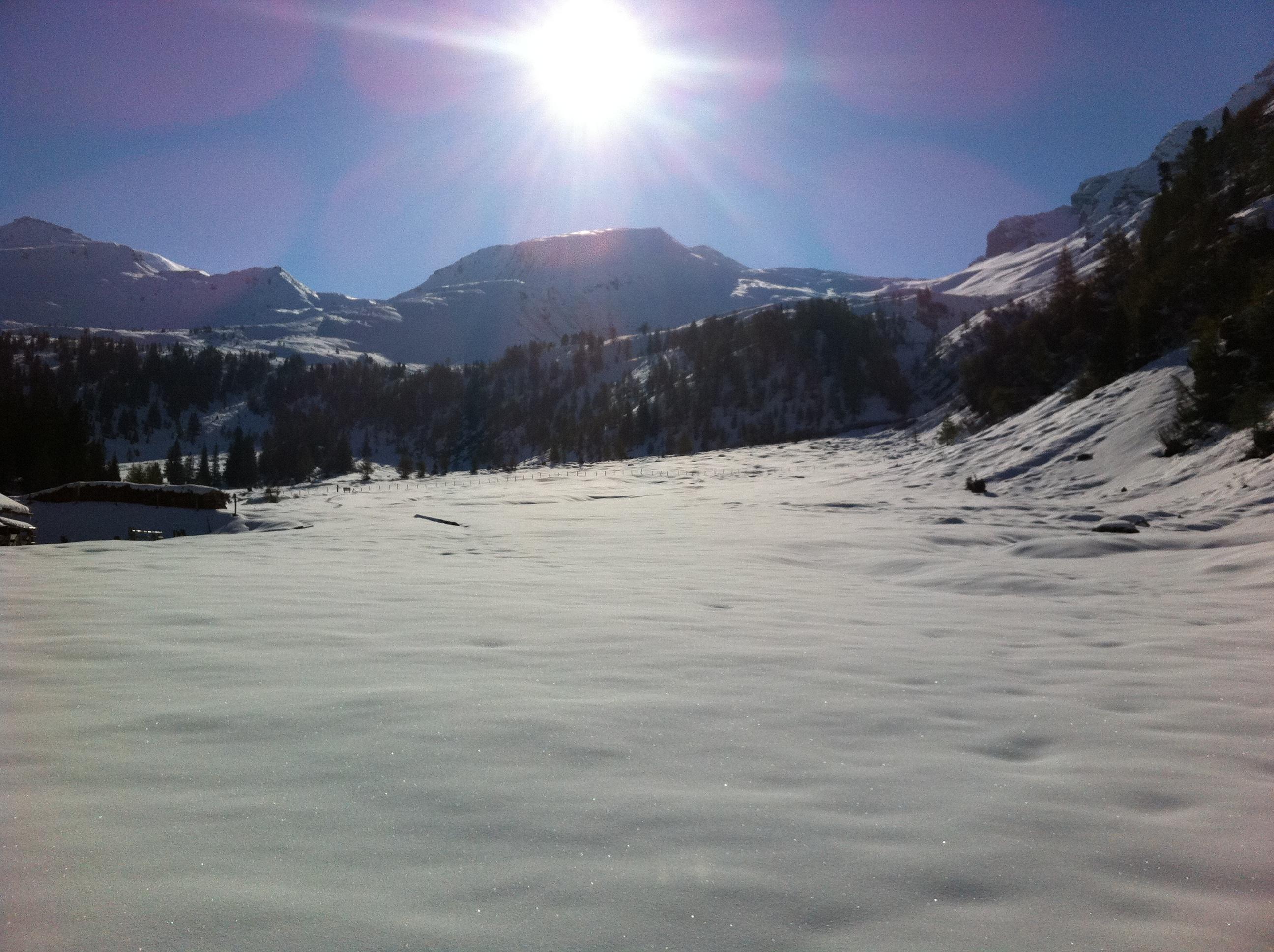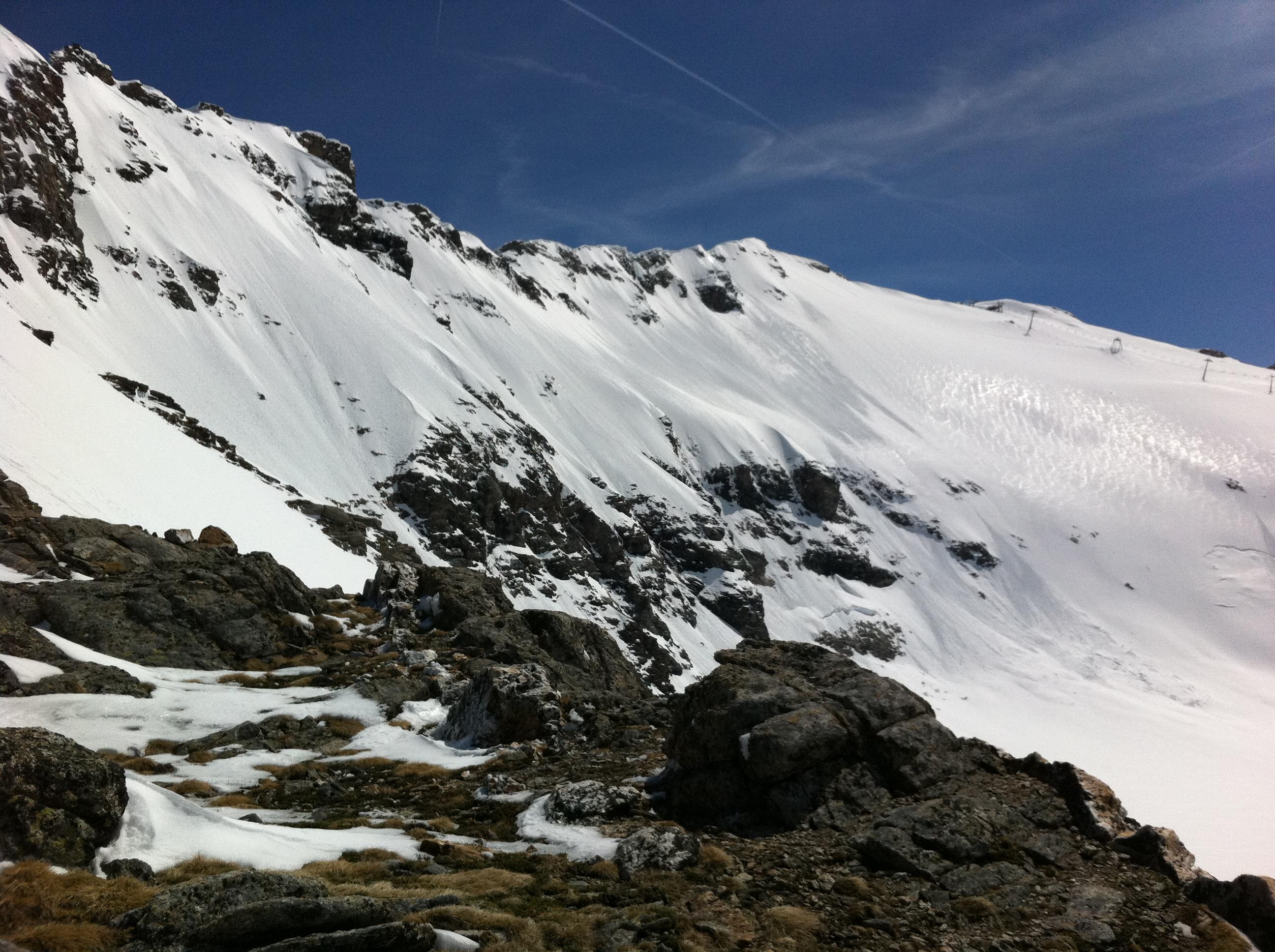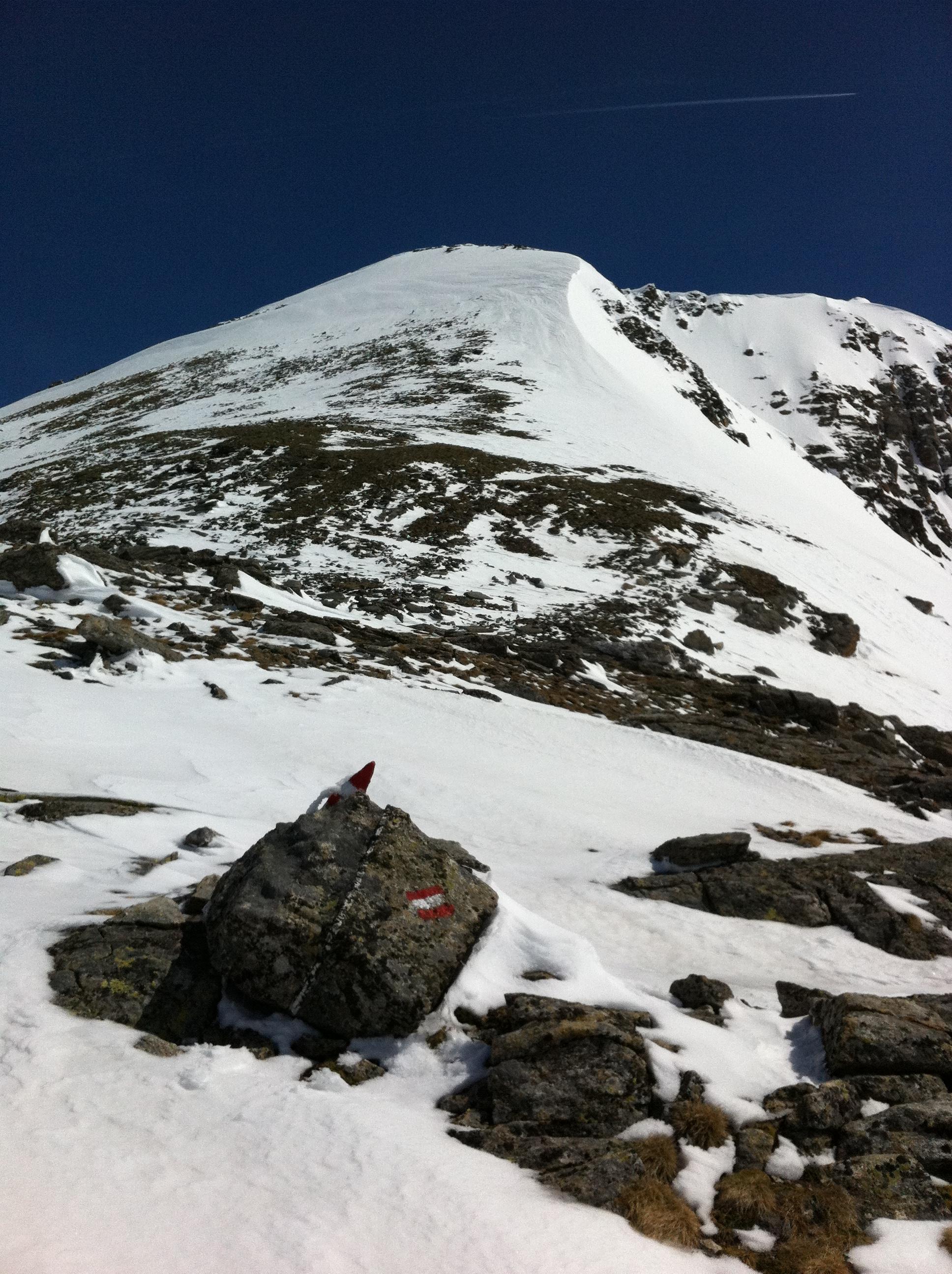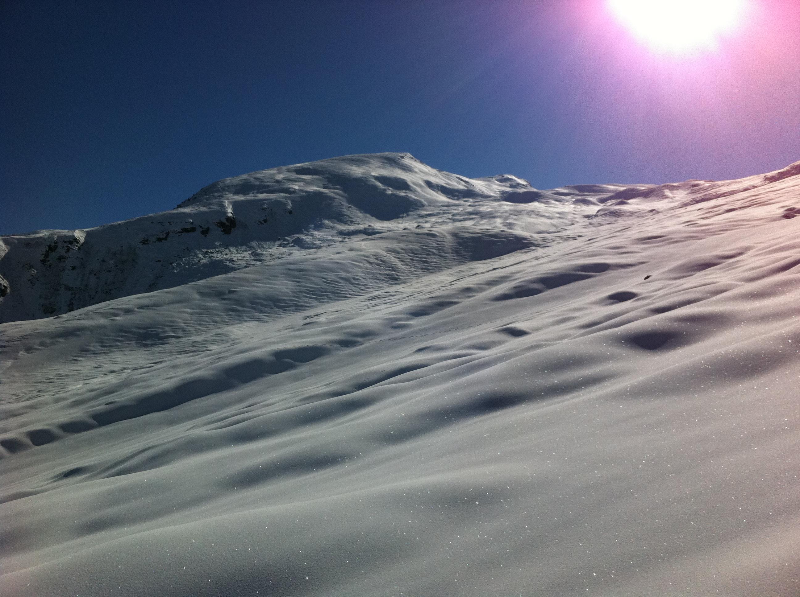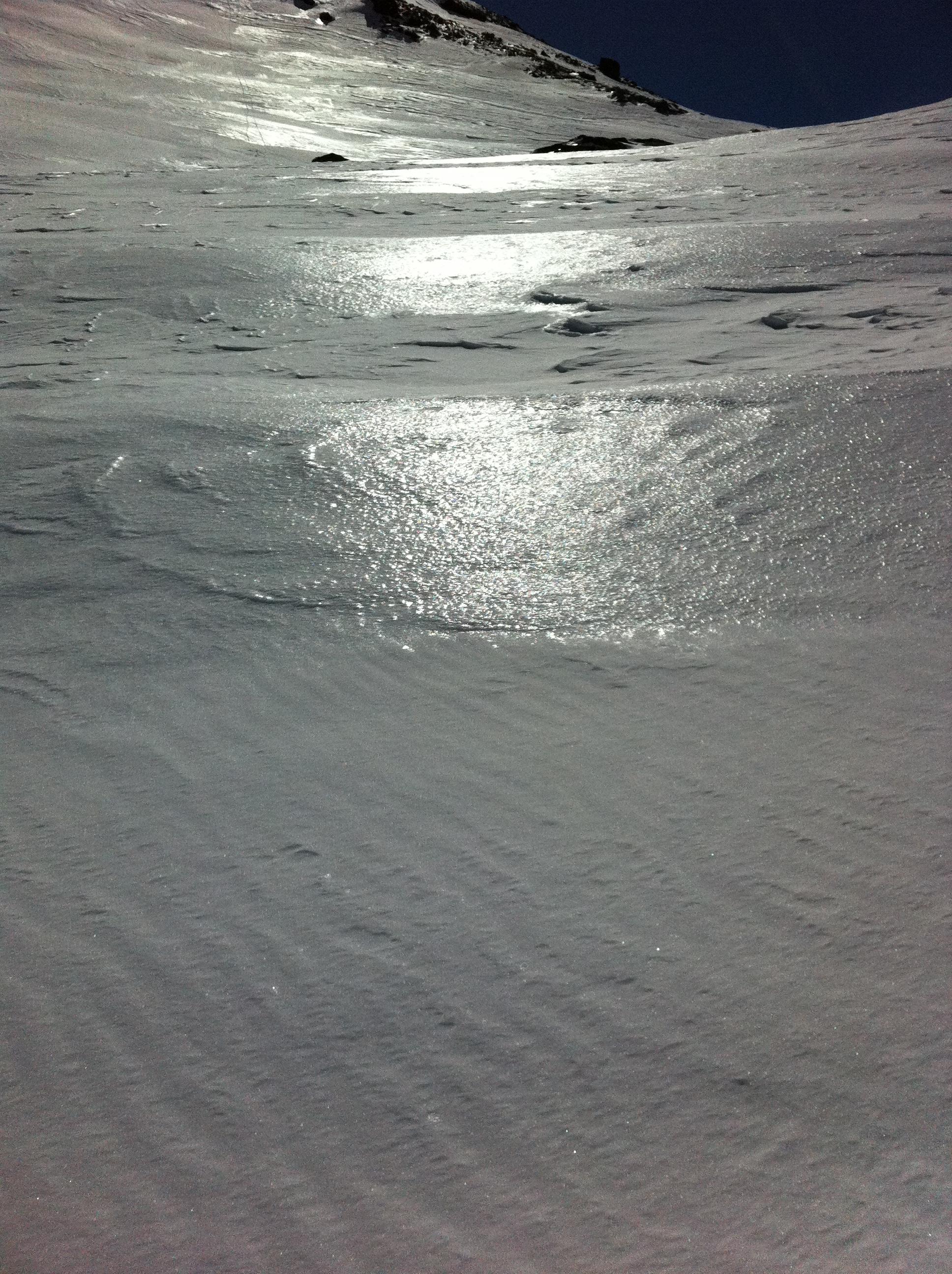 29.5 Fraganter Scharte. In Kolm schon viel Schnee geschmolzen, Sonst wie am Vortag. Zuerst Bruchharsch, dann tragfähiger, kompakter Harsch, der Pulver ist zusammengesackt und gut fahrbar. Tolle Verhältnisse bis etwas unterhalb vom Neubau, dann Bruchharsch,anschließend grundloser Gatsch bis unten. 10 Minuten Schitragen.