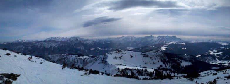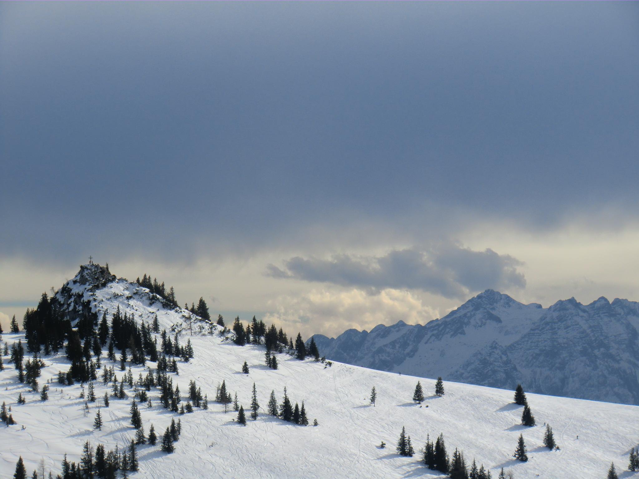 Wie oft muß man einen Berg besuchen, bis man ihn wirklich kennt? Die Licht- und Schattenseiten und die hereinbrechende Front verzauberten heute mit einer besonderen Dramatik. Wie oben, so unten. Die Sonne konnte nicht gegen den grausigkalten Südfön an und so blieb der Firnwunsch unerfüllt, dafür null Einsinktiefe und eine schnelle Partie bis zur Hochalm. Ab da wurde es angenehm weich. Buttercremetortenweich ;o)
