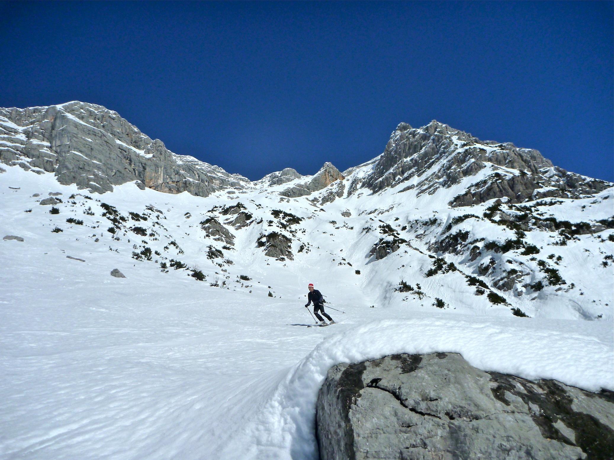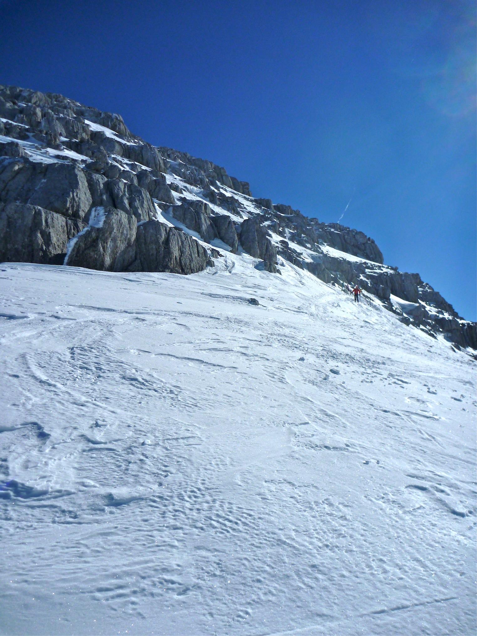 ....wie schon allseits bekannt, tolle Verhältnisse in den Loferern, nur die Bockpalven (ca. 200hm) sind extrem mühsam, Harscheisen können vormittags nicht schaden, Abfahrt gegen Mittag ideal.
