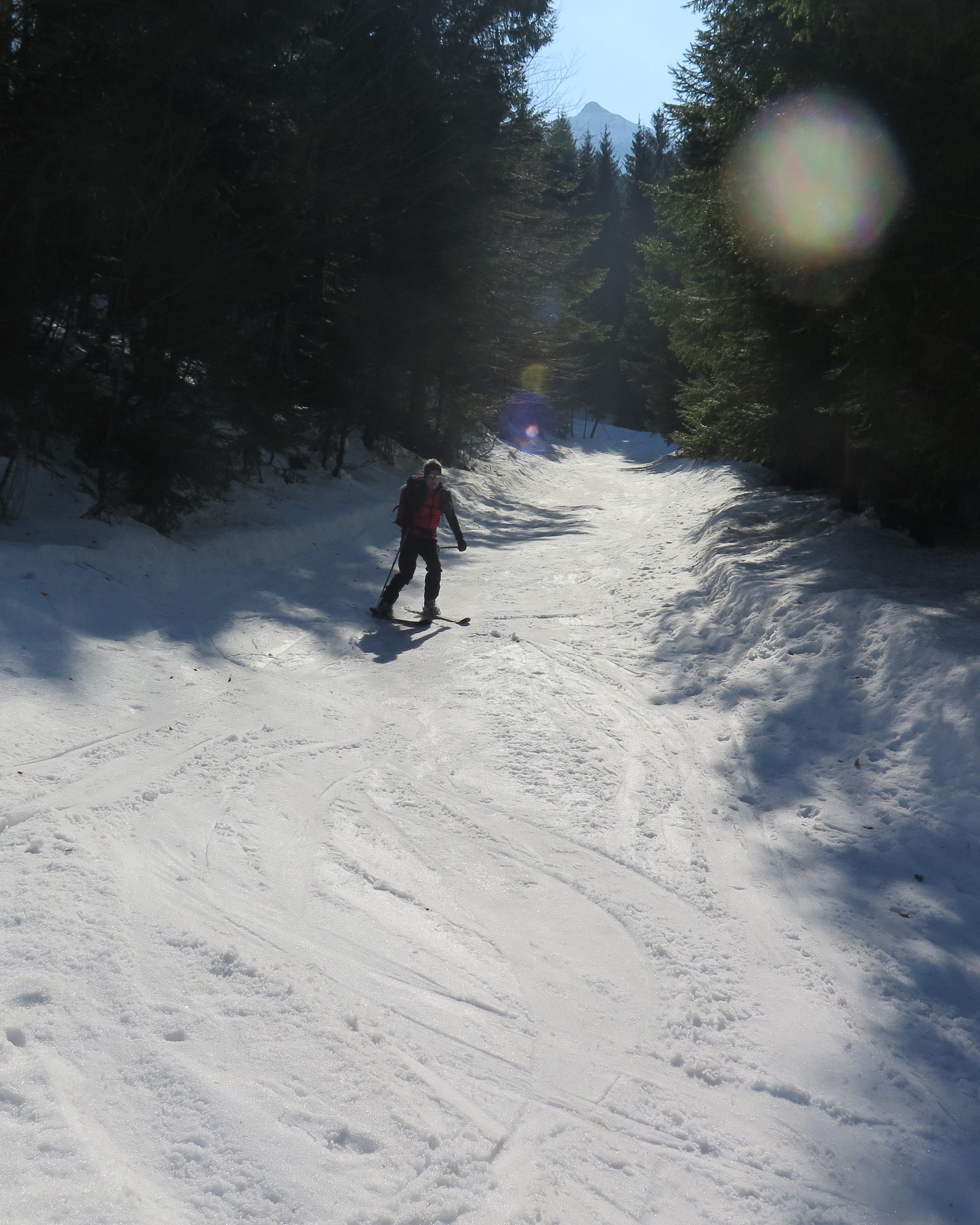 Osterhorngruppe: ausreichende Schneelage,in der Früh noch gefrorene Schneedecke bis zur Genneralm.Ab Ackersbachalm dúrch die Sonneneinstrahlung leicht aufgeweicht.Am Gipfelgrat leichter Wind und harte Schneedecke.Bei der Abfahrt wechselnde Schneeverhältnisse.