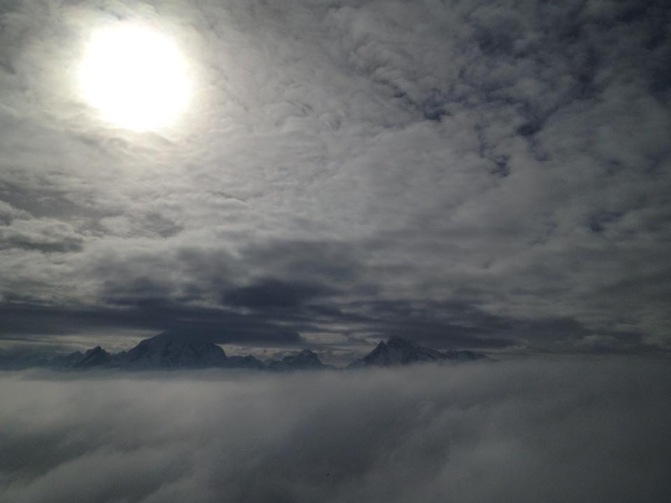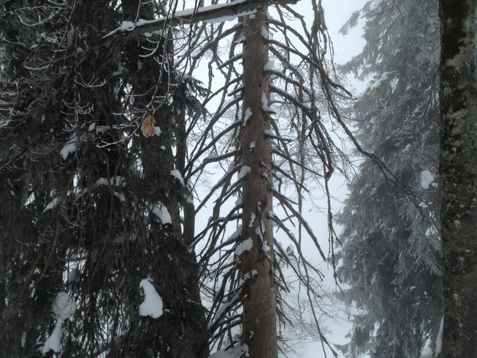 Wetter: Hochnebel, der erst 30 hm unter dem Gipfel aufgegangen ist. Mäßiger Wind erst am Gipfel. Sonst windstill.