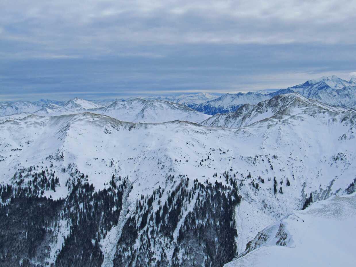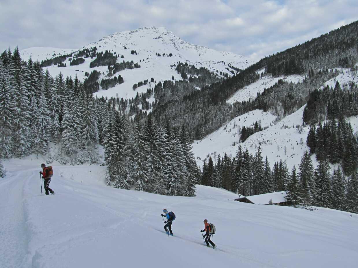 Von Lengau (1150) über die Saalhofalm zum Schusterkogel (2207); Abfahrt über die Untere Zehetner Alm und durch den Vogelalmgraben heraus.