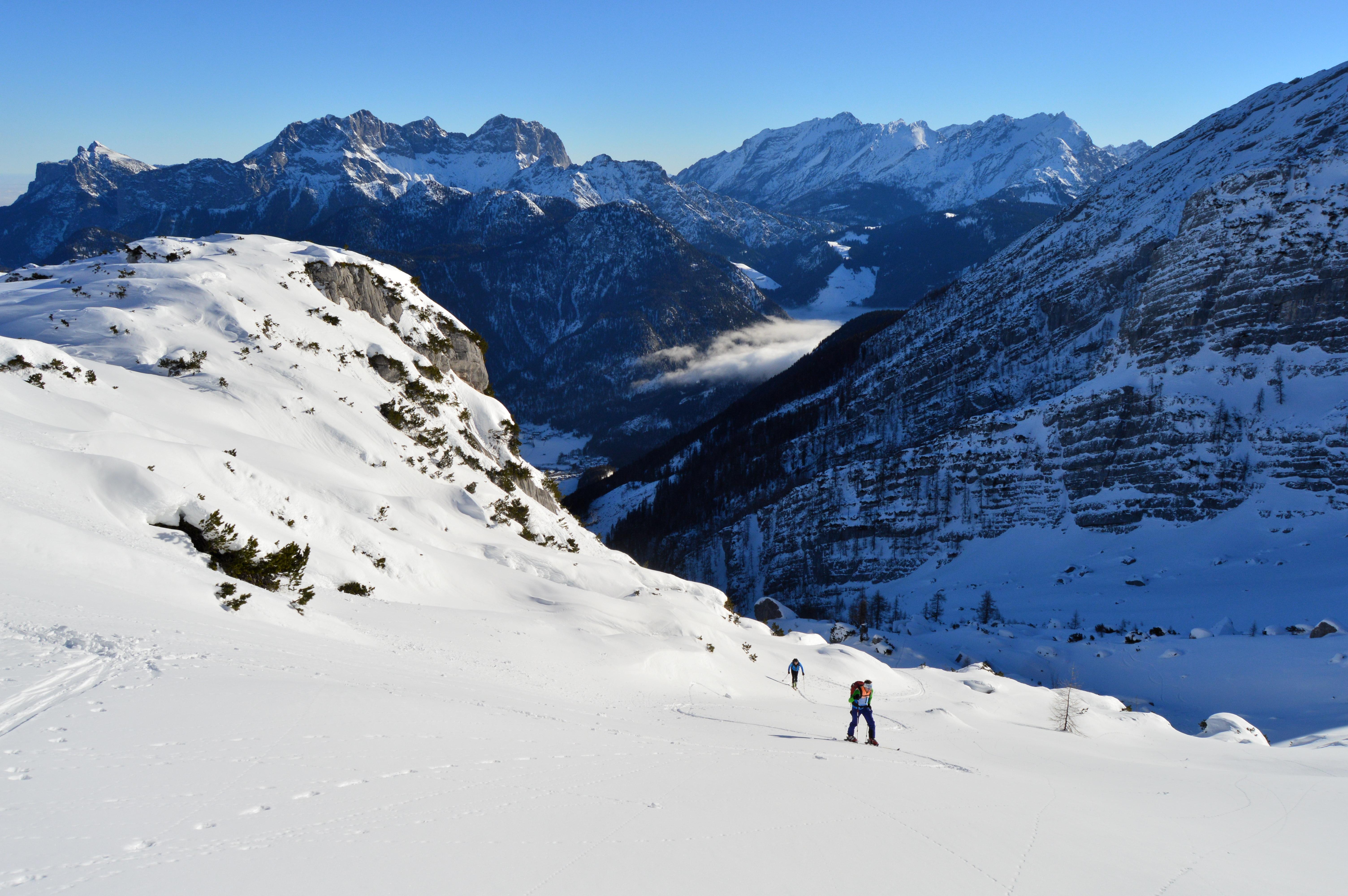 Die beiden Touren zum Großen- und Mittleren Ochsenhorn schauen heuer wegen viel zu wenig Schnee unlohnend aus... aber das kann sich ja vielleicht noch ändern. Auch die Abfahrt durch den Wald könnte viel mehr Schnee vertragen!