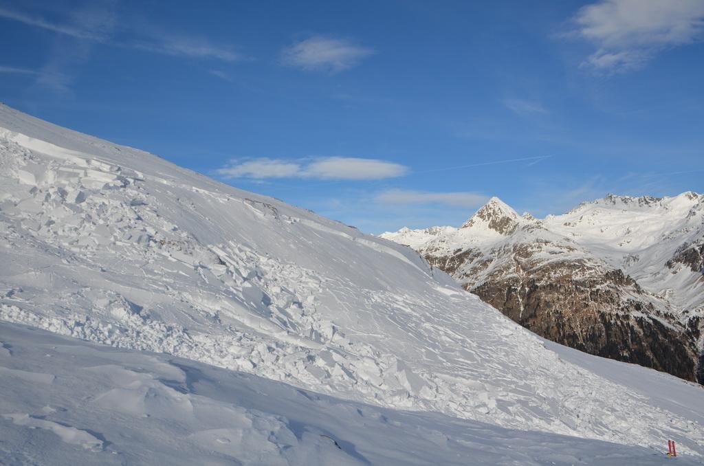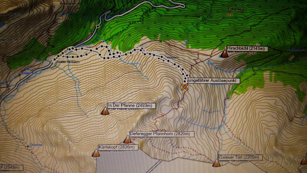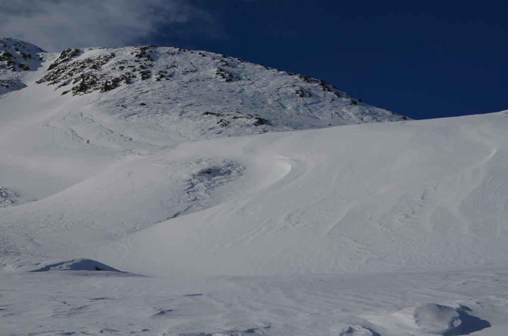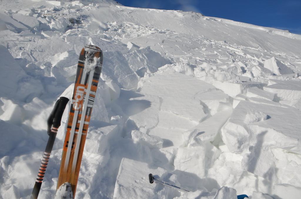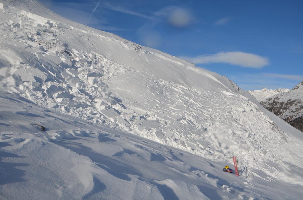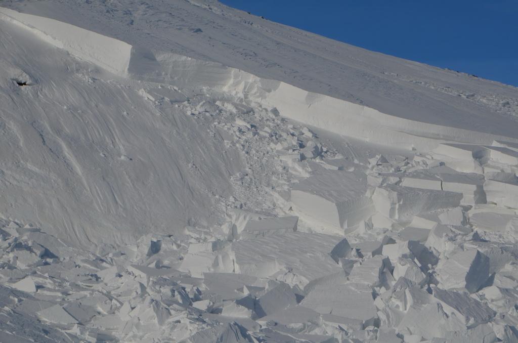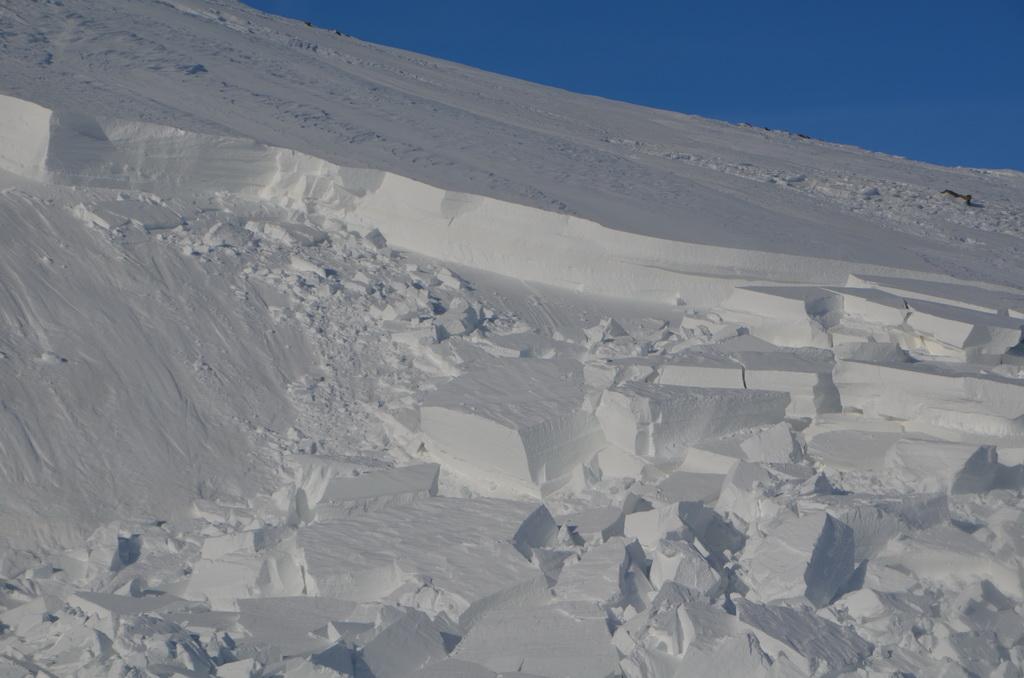 haben wir über eine Fernauslösung den Hang über uns auslösen können. Sind aber Gott sei Dank noch einmal mit einem blauen Auge davon gekommen. Die Auslösung war in NO-licher Ausrichtung in einer Höhe von ca.2330m. Ich schätze die Anrisskante mit etwas über einen Meter an der höchsten Stelle.