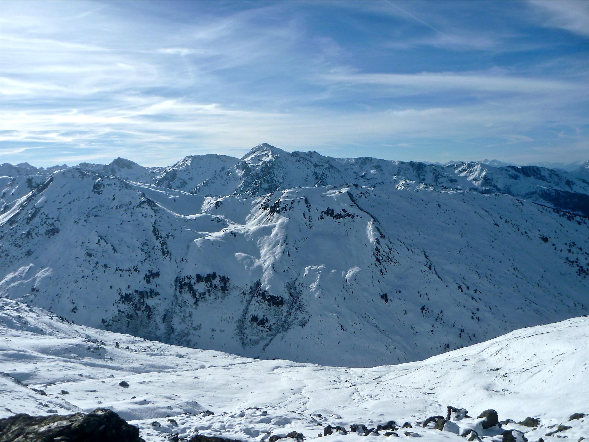 Verhältnisse: Anstiege ideal, Abfahrt vom Kl. Gilfert windbeeinflusster Bruchharsch eher ungut, Abfahrt Rosslaufkogel passabel, Skipiste großteils hart, Kanten von Vorteil