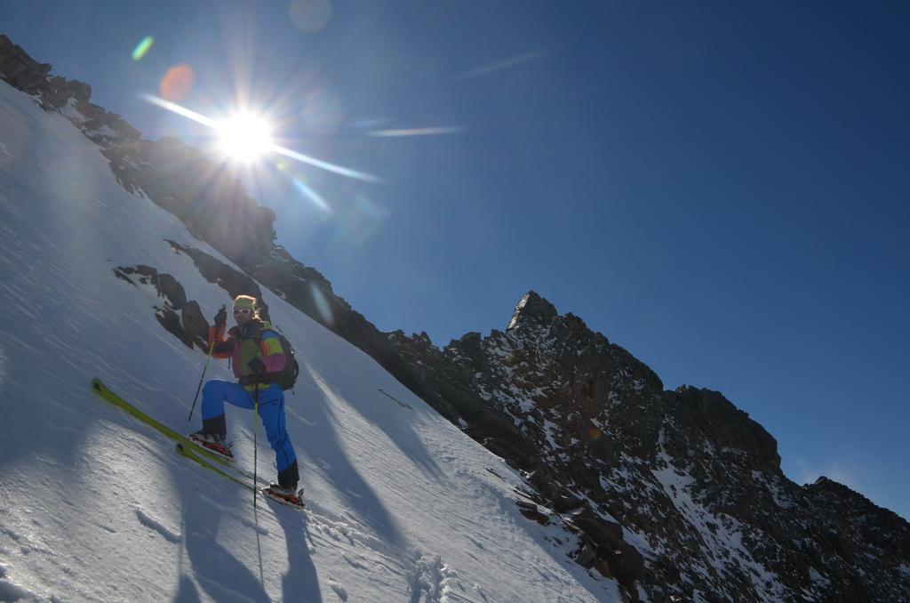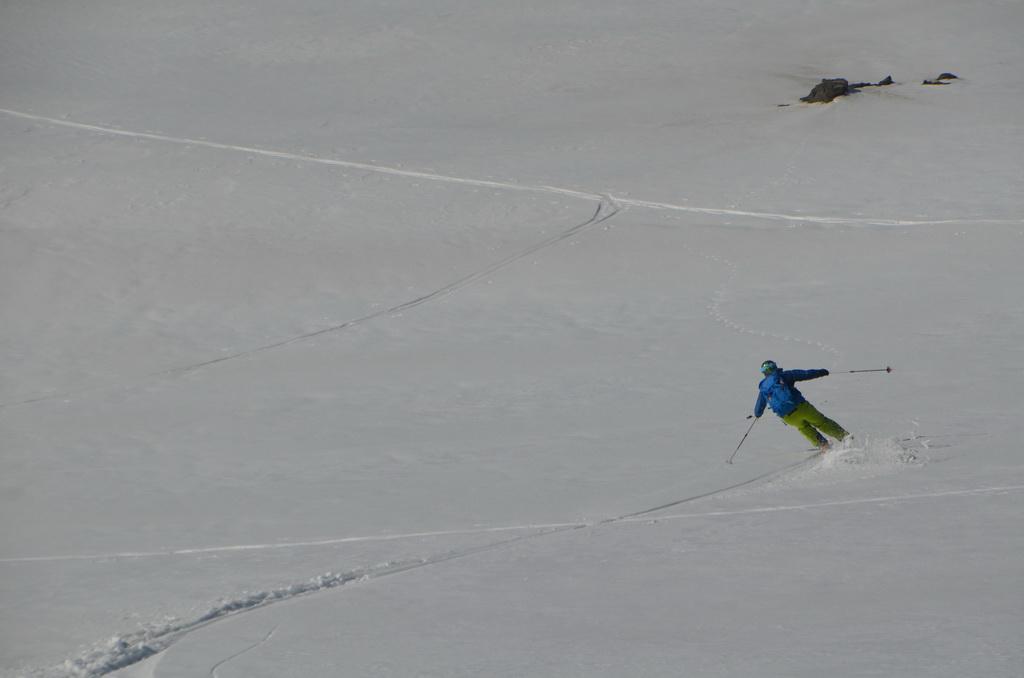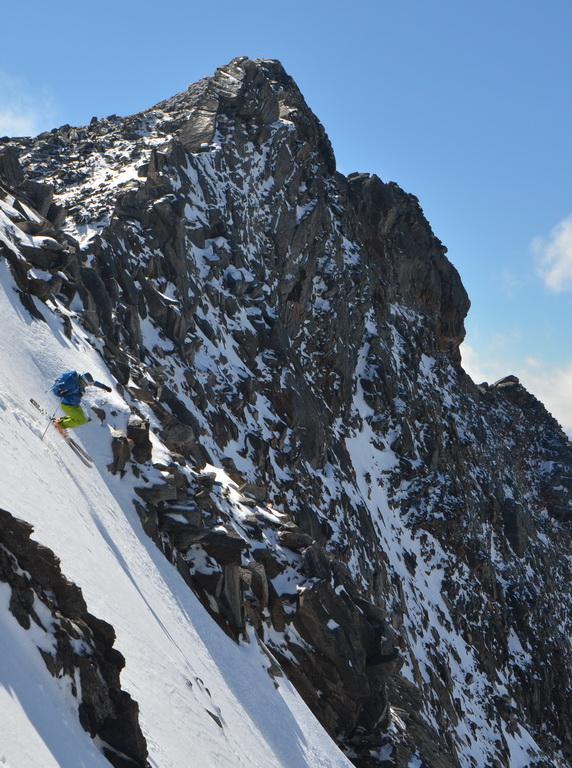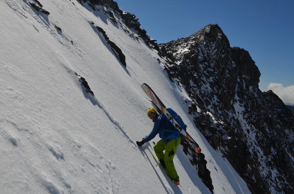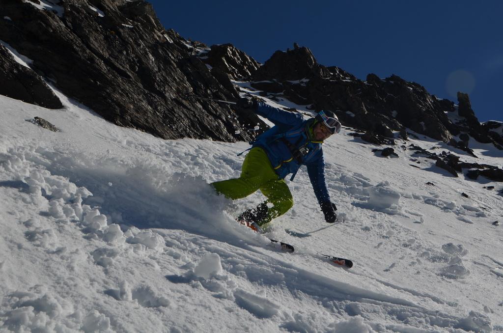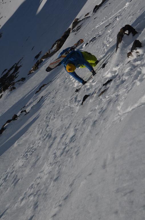 Im Gegensatz zu letztem Wochenende hatte wir heute nicht mehr diesen perfekten Firn. Die Schneedecke ist stark durchfeuchtet und sulzig. In steilem Gelände rutschen immer wieder kleine Flächen mit.....trotzdem hatten wir wieder ein super Tag in den Bergen.